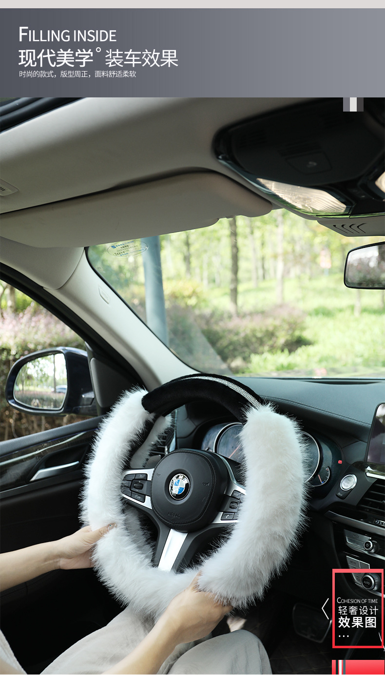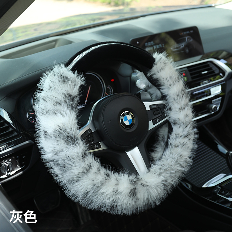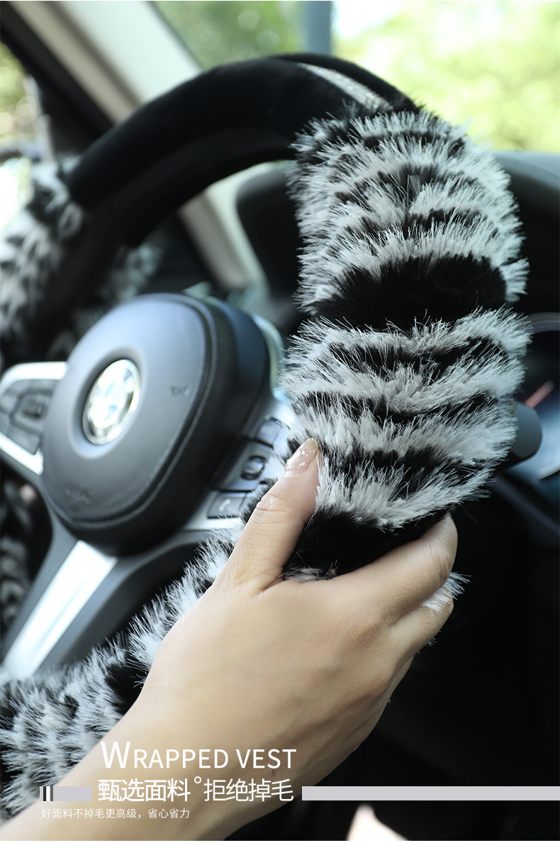 XH 새로운 F44 겨울 플러시 자동차 핸들 커버 긴 머리 드릴 크리 에이 티브 숙녀 스트라이프 단색 유니버설스토어 가기