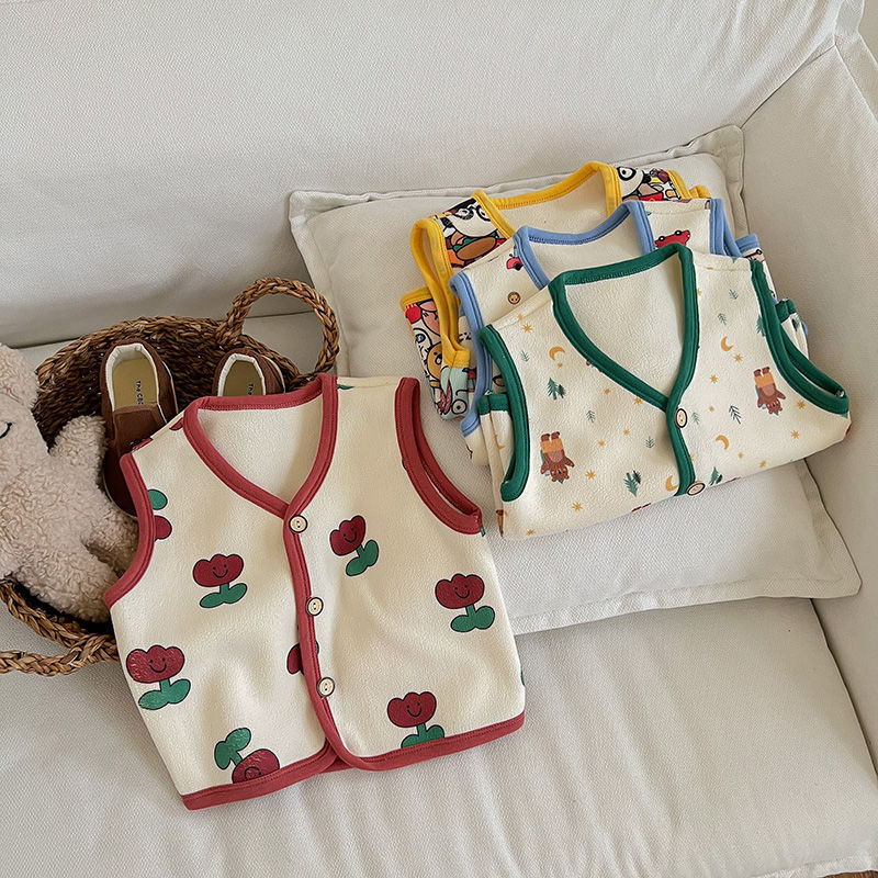 새로운 어린 시절 올리 벨벳 조끼 가을과 겨울 겉옷 소년과 소녀 아기 따뜻한 조끼 어린이 조끼 가을 조끼스토어 가기