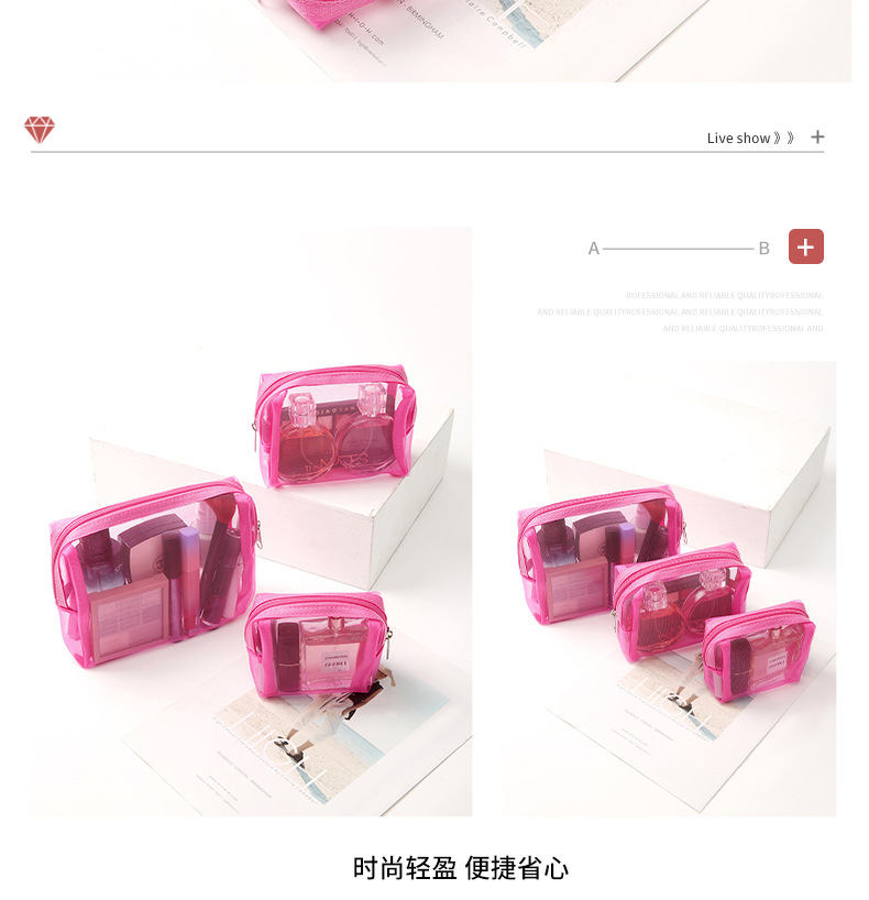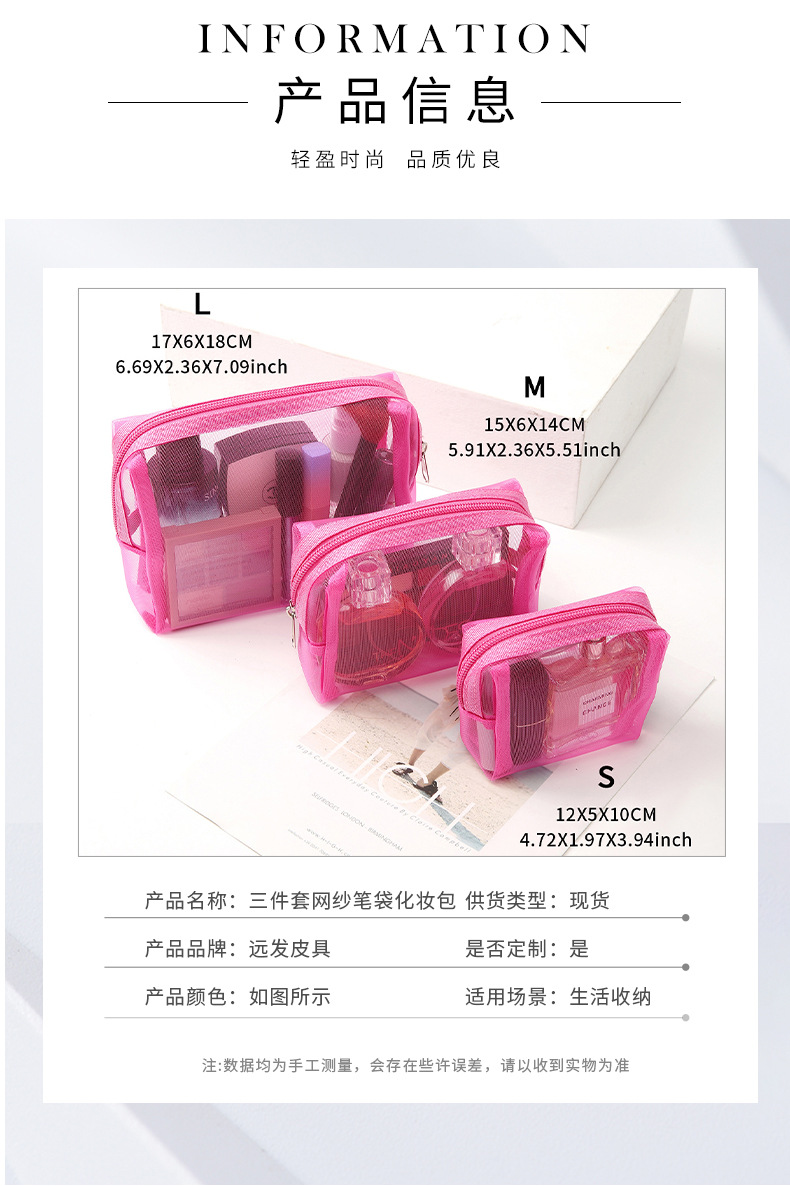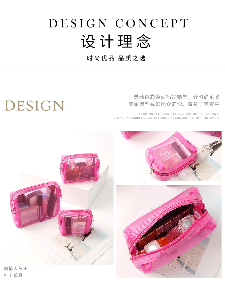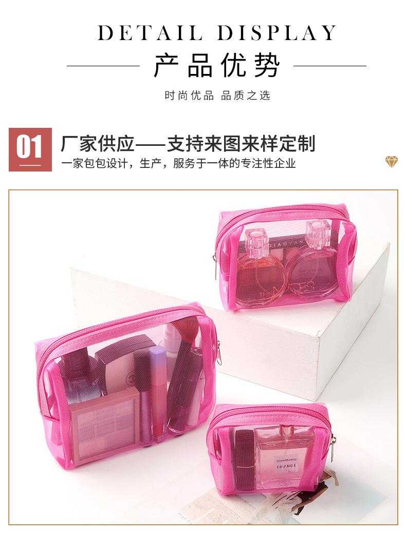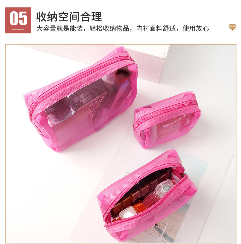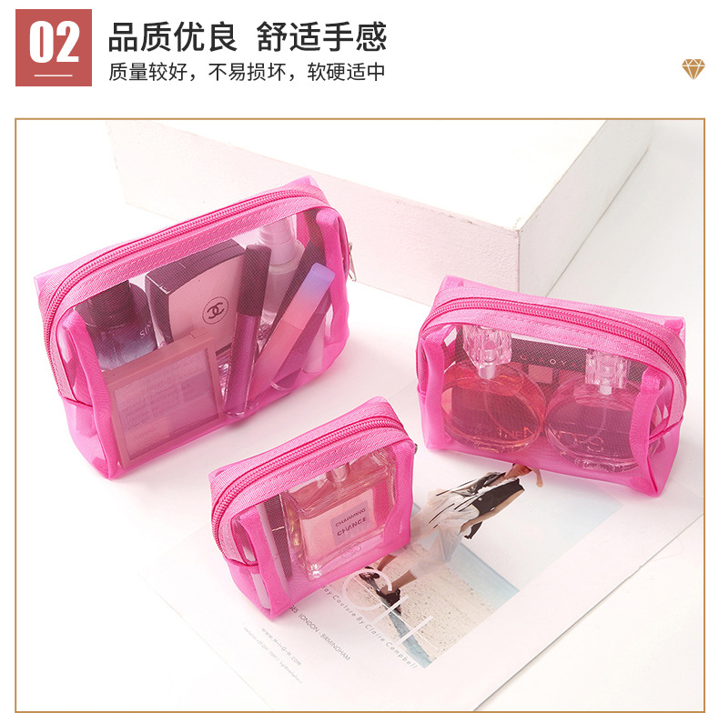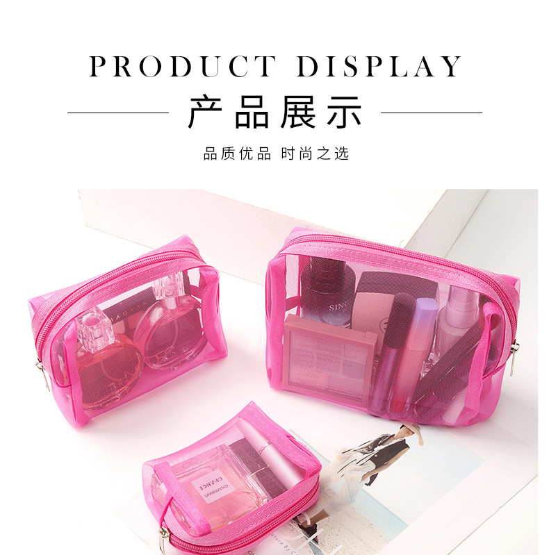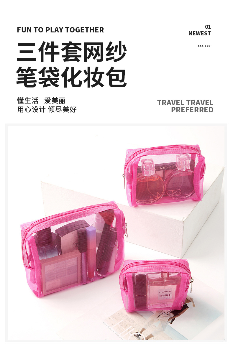 새로운 메이크업 가방 3 피스 세트 휴대용 간단한 메쉬 연필 케이스 대용량 솔리드 컬러 메이크업 가방 공장 공급스토어 가기