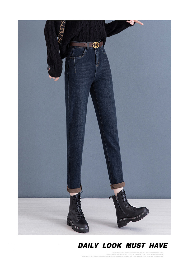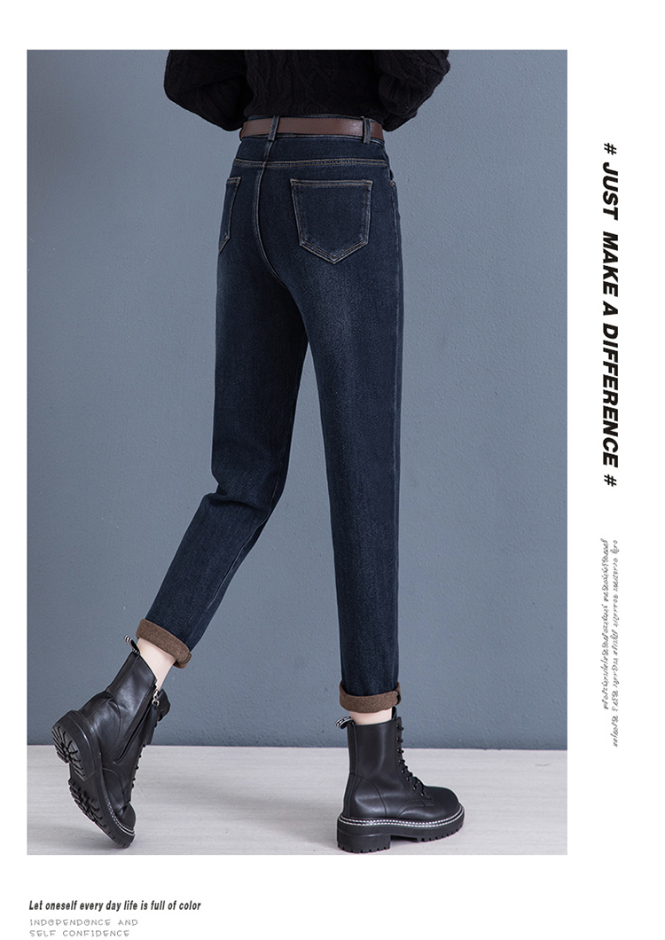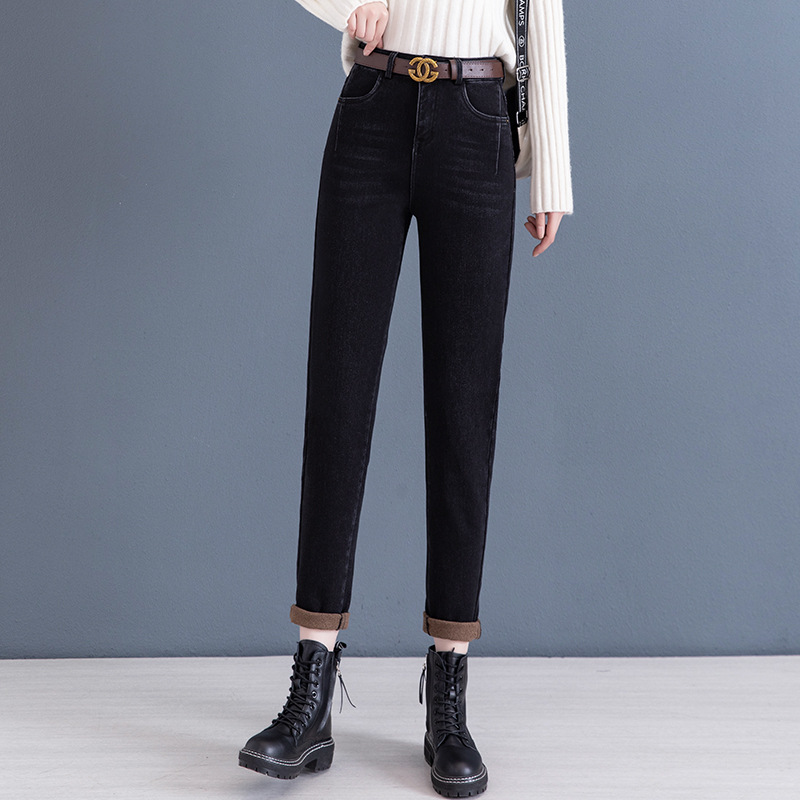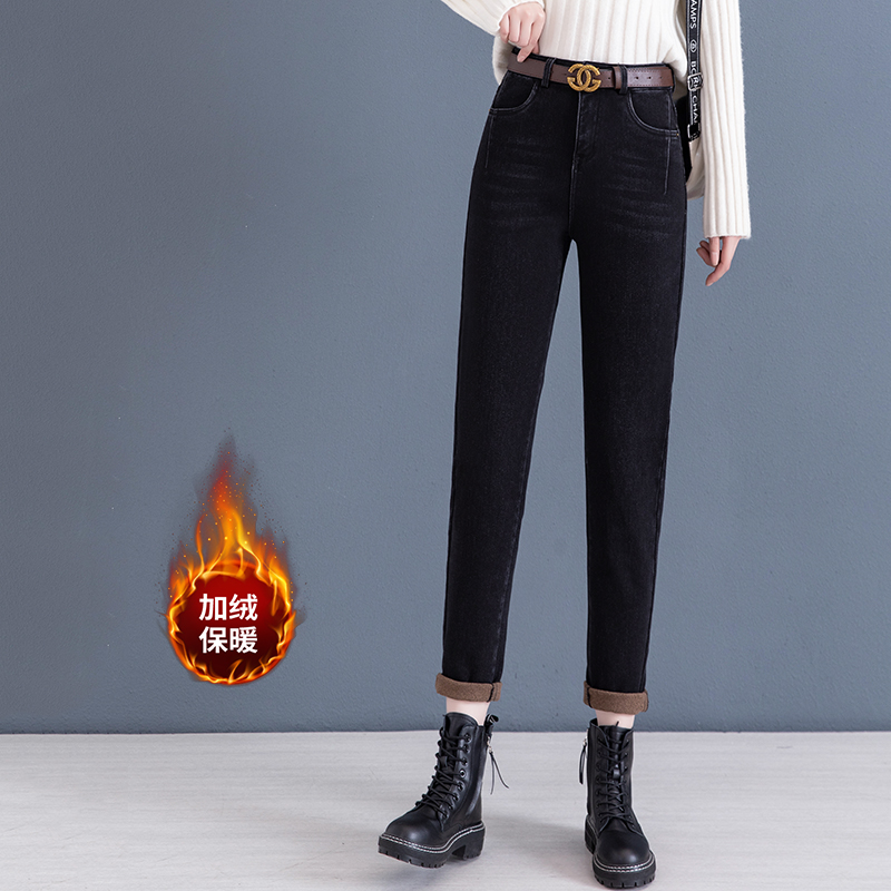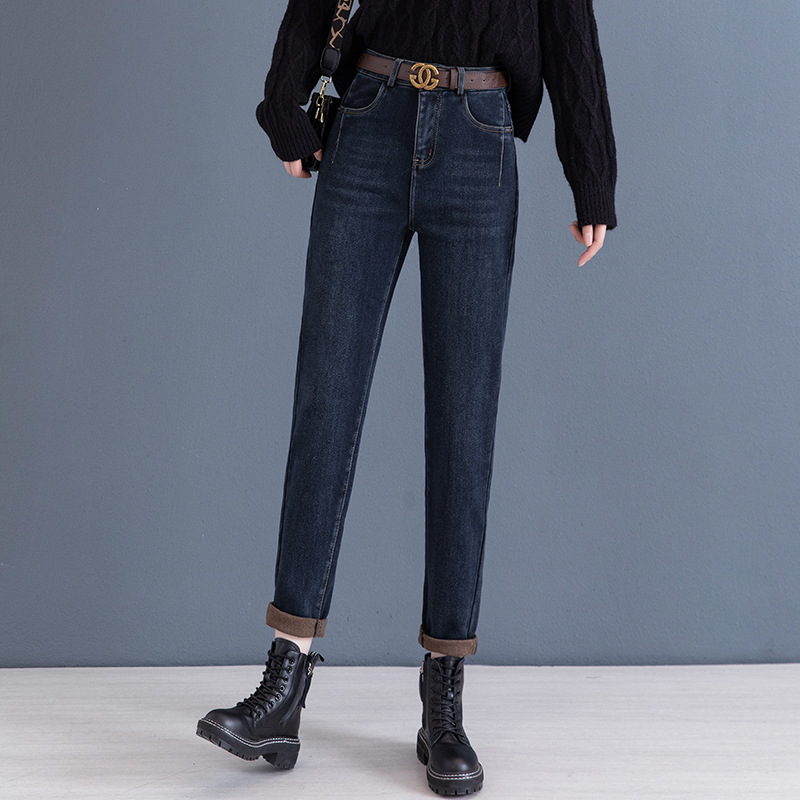 하이 웨이스트 토레 청바지 여성용 2023 새로운 가을 겨울 기모 슬리밍 루즈한 9 점 할란 순무 바지스토어 가기
