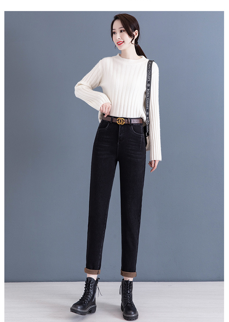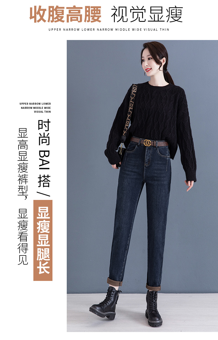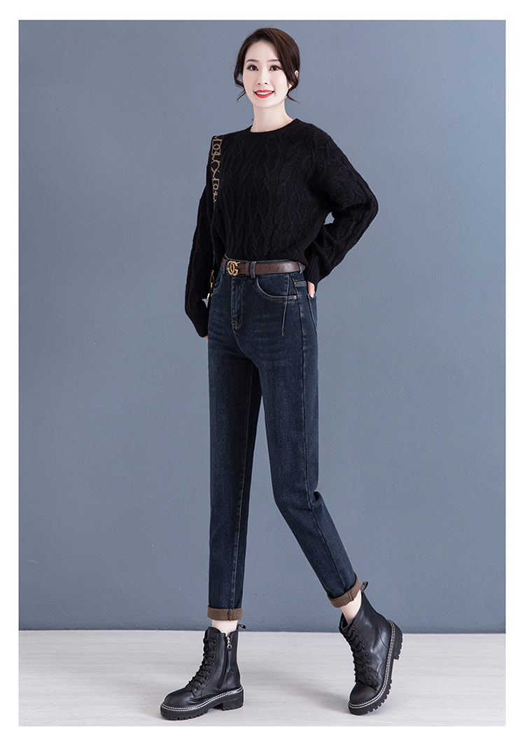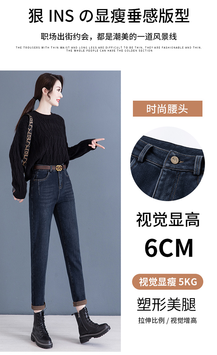 하이 웨이스트 토레 청바지 여성용 2023 새로운 가을 겨울 기모 슬리밍 루즈한 9 점 할란 순무 바지스토어 가기