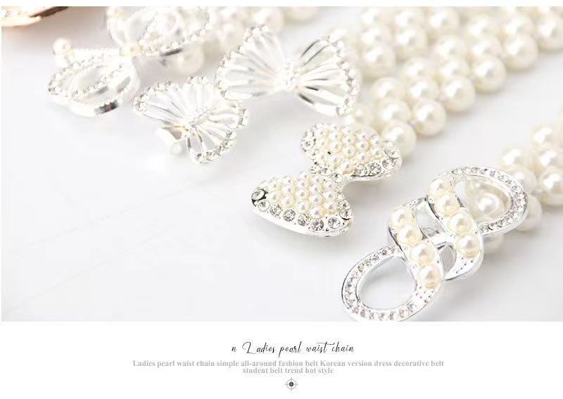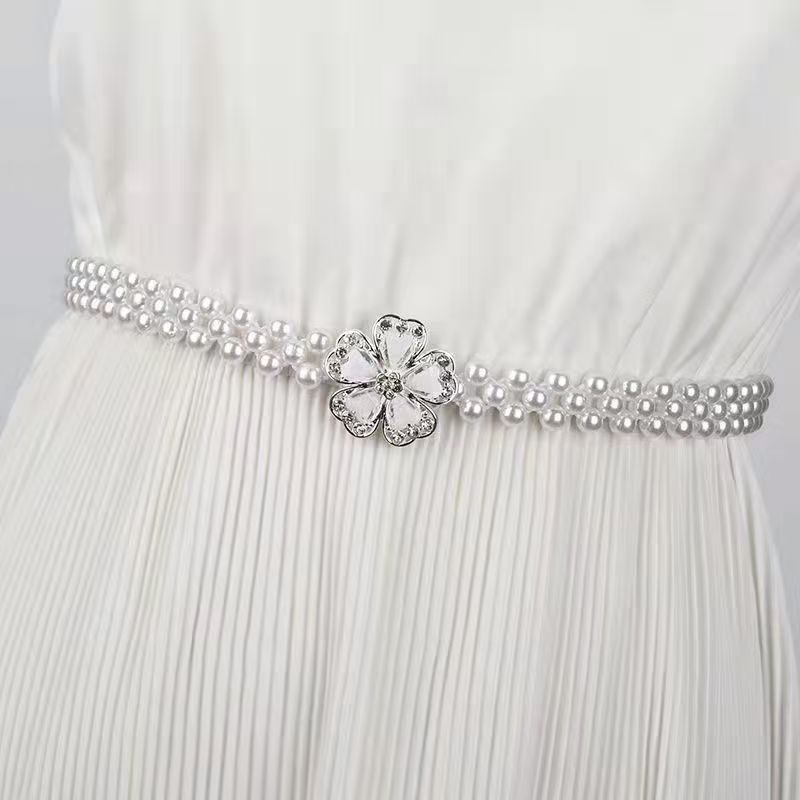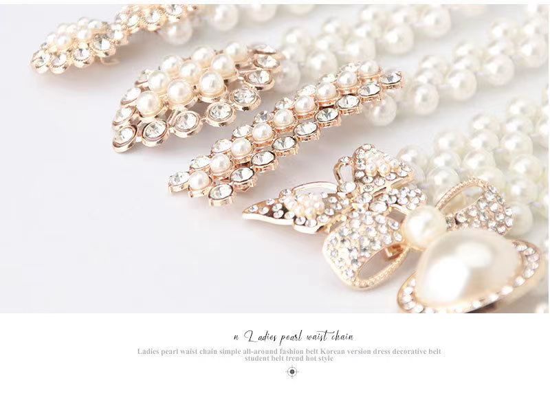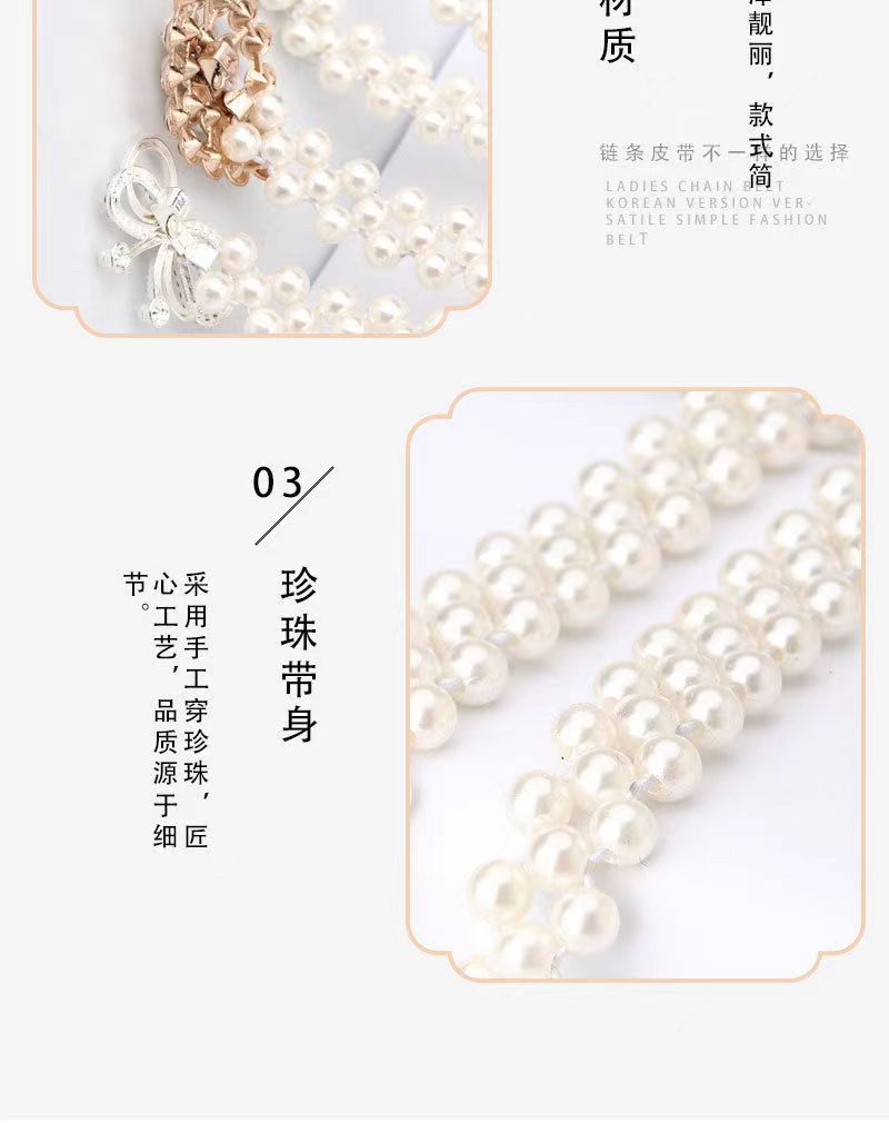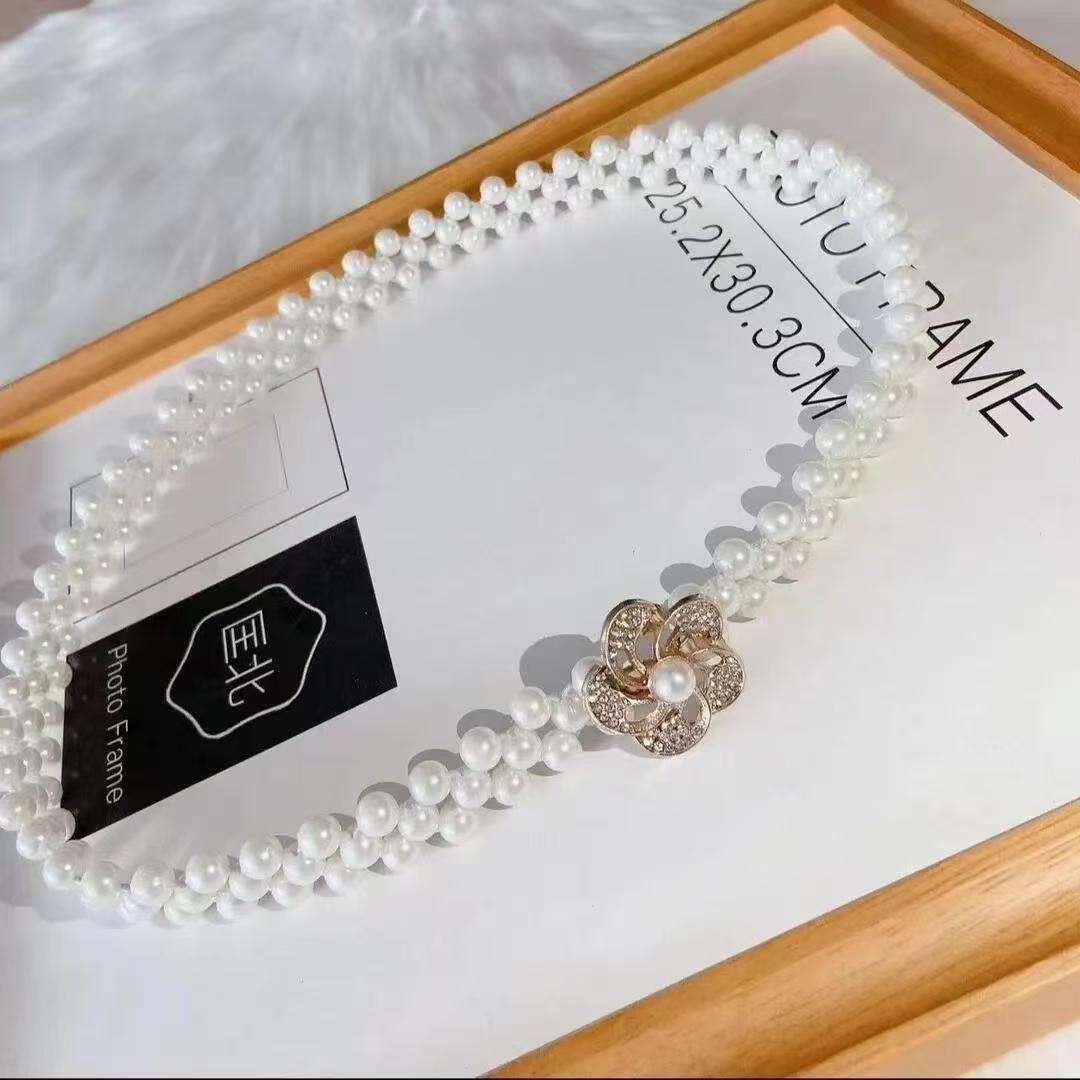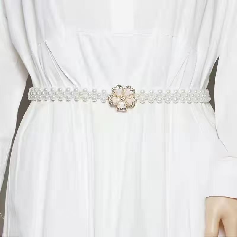한국 스타일 여성용 워터드라이즈 진주 허리 체인 패션 드레스 장식용 신축성 허리띠 여성용 꽃무늬 탄성 허리띠