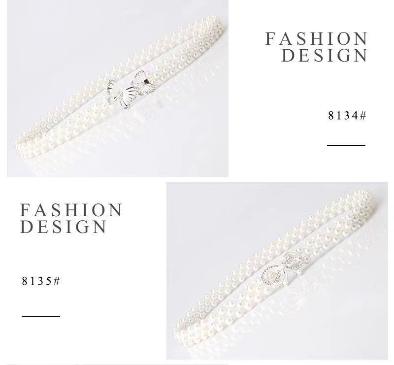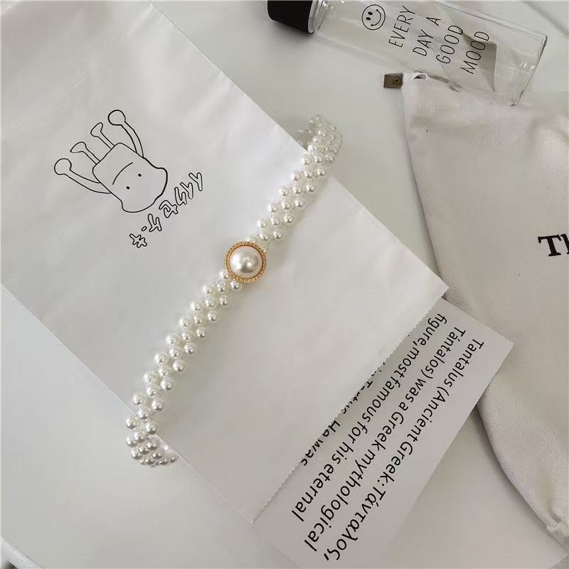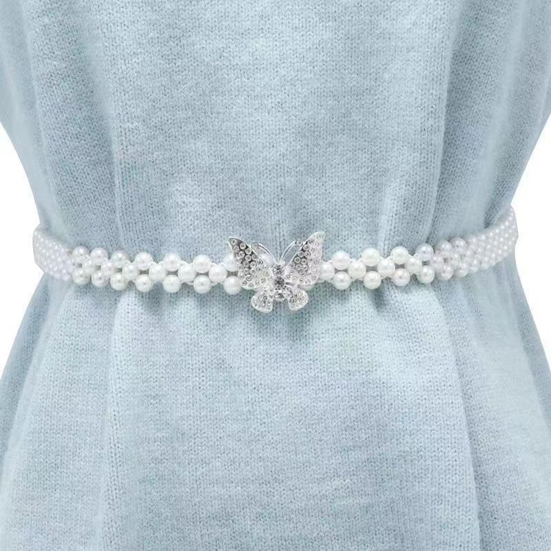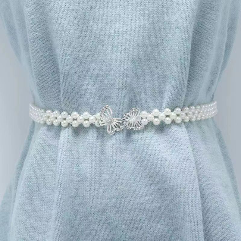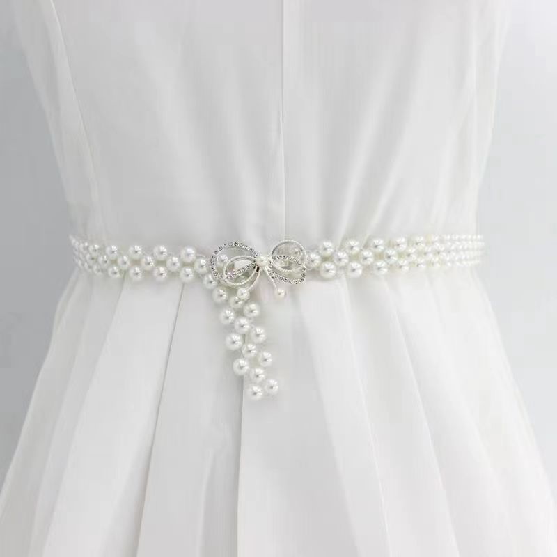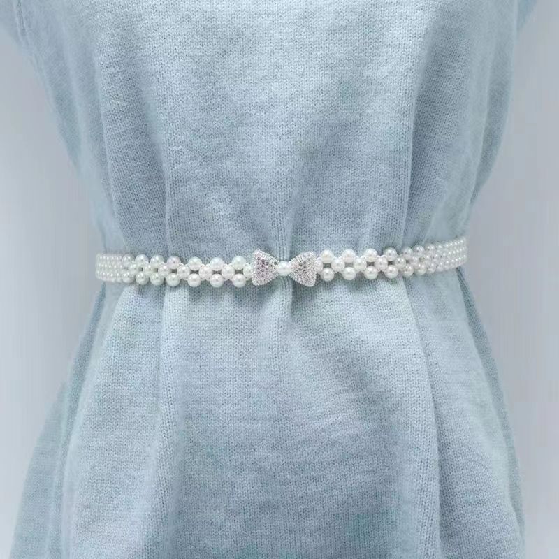 한국 스타일 여성용 워터드라이즈 진주 허리 체인 패션 드레스 장식용 신축성 허리띠 여성용 꽃무늬 탄성 허리띠