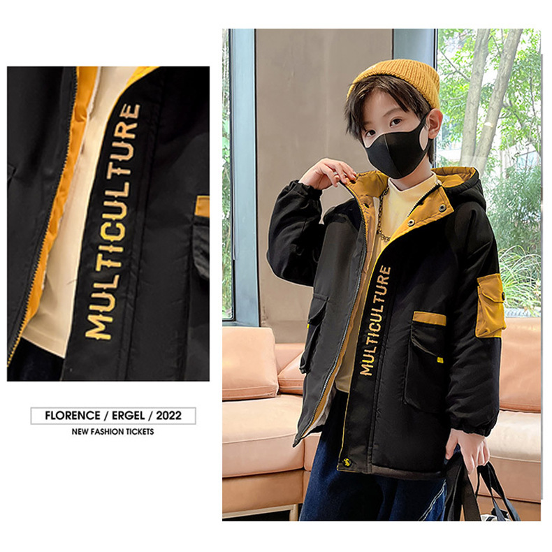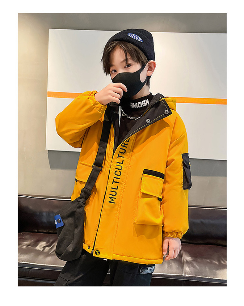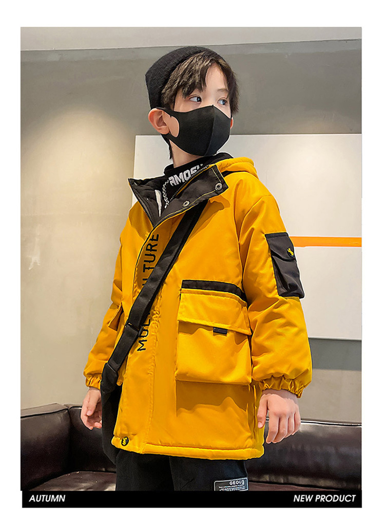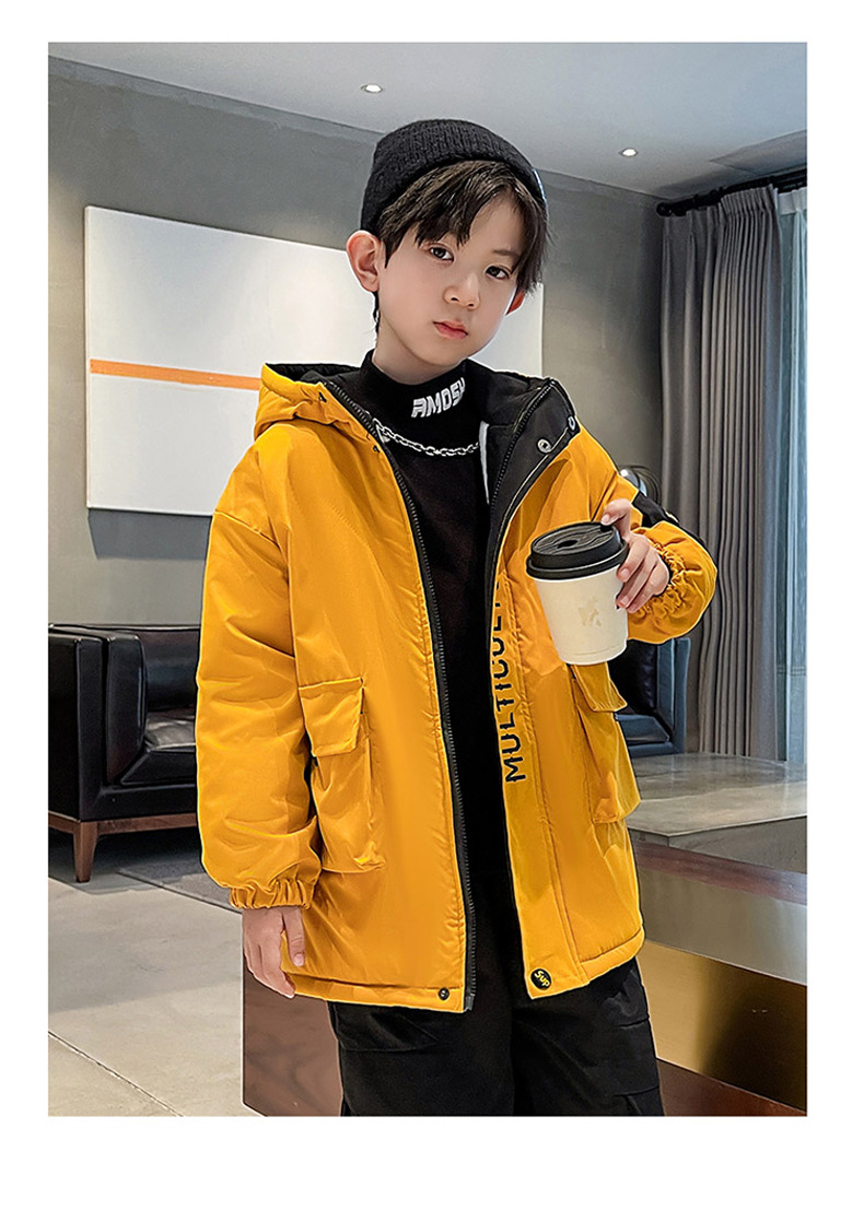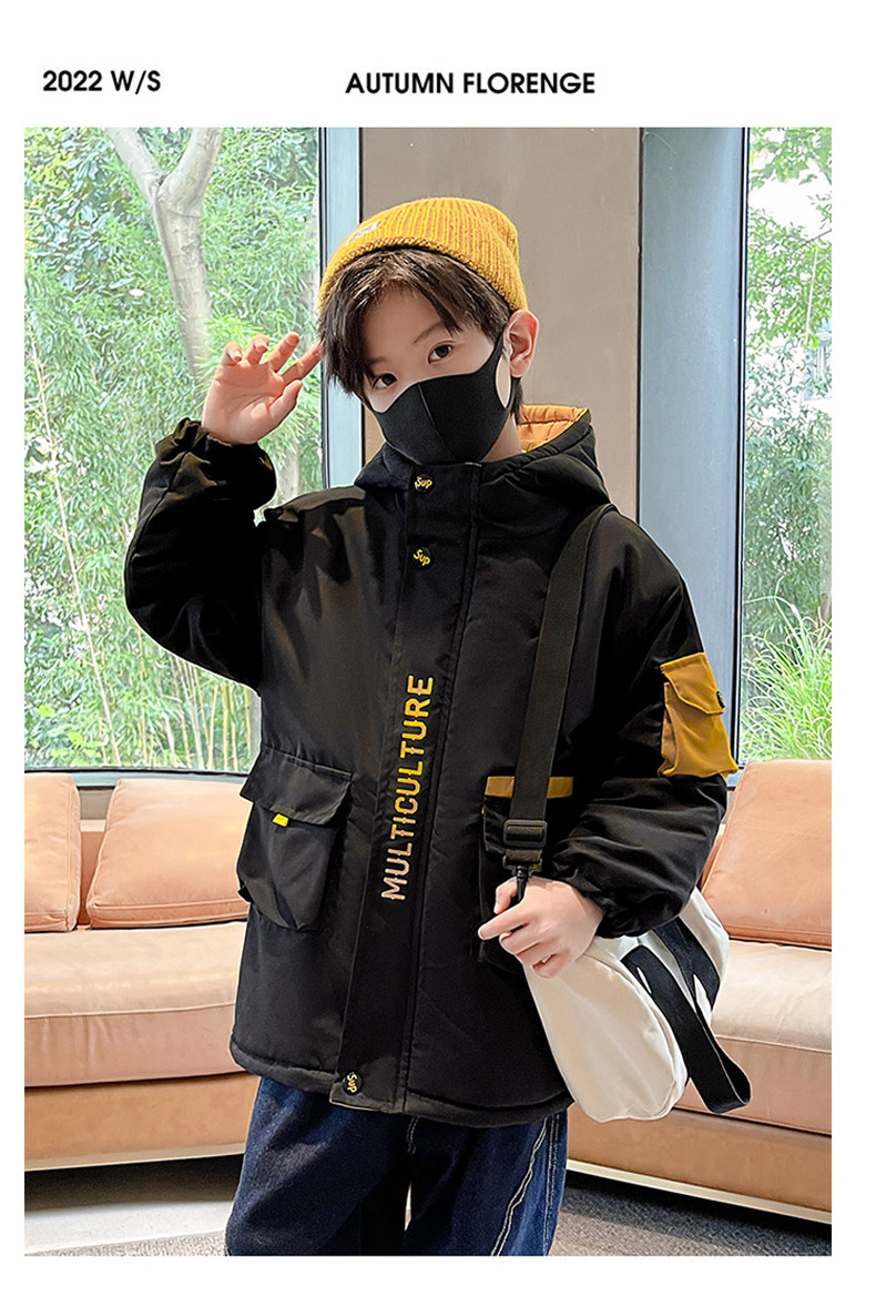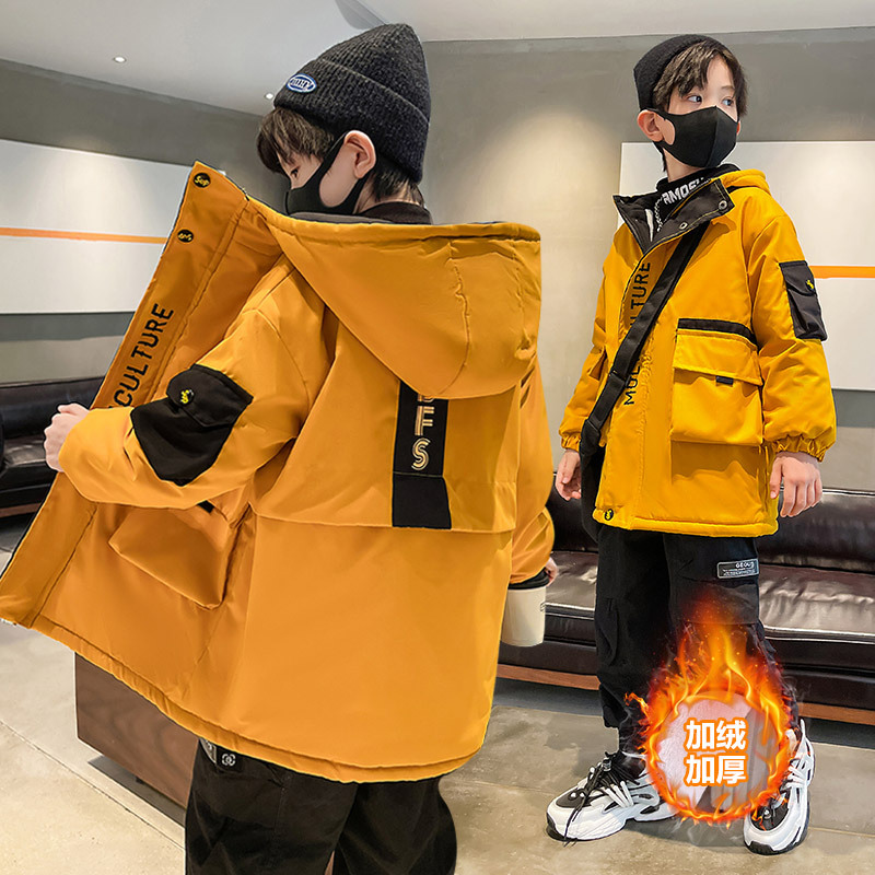 아동복 소년의 퀼트 재킷 가을과 겨울 새로운 기모 두꺼운 윈드 브레이커 대형 어린이를위한 중간 길이 후드 방풍 코트