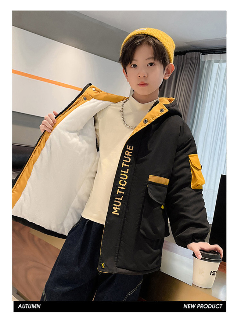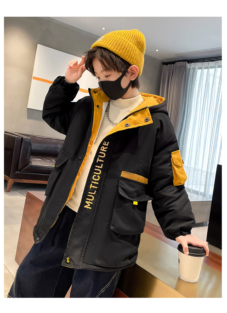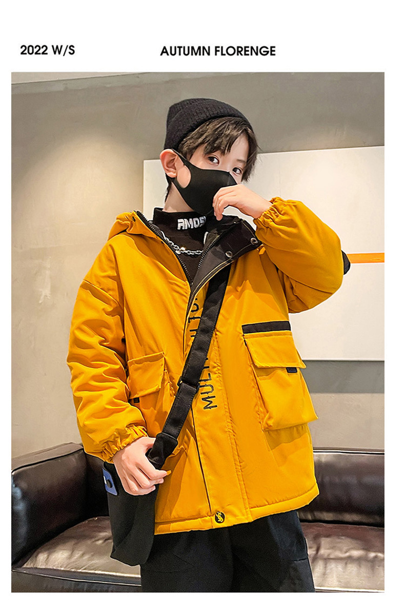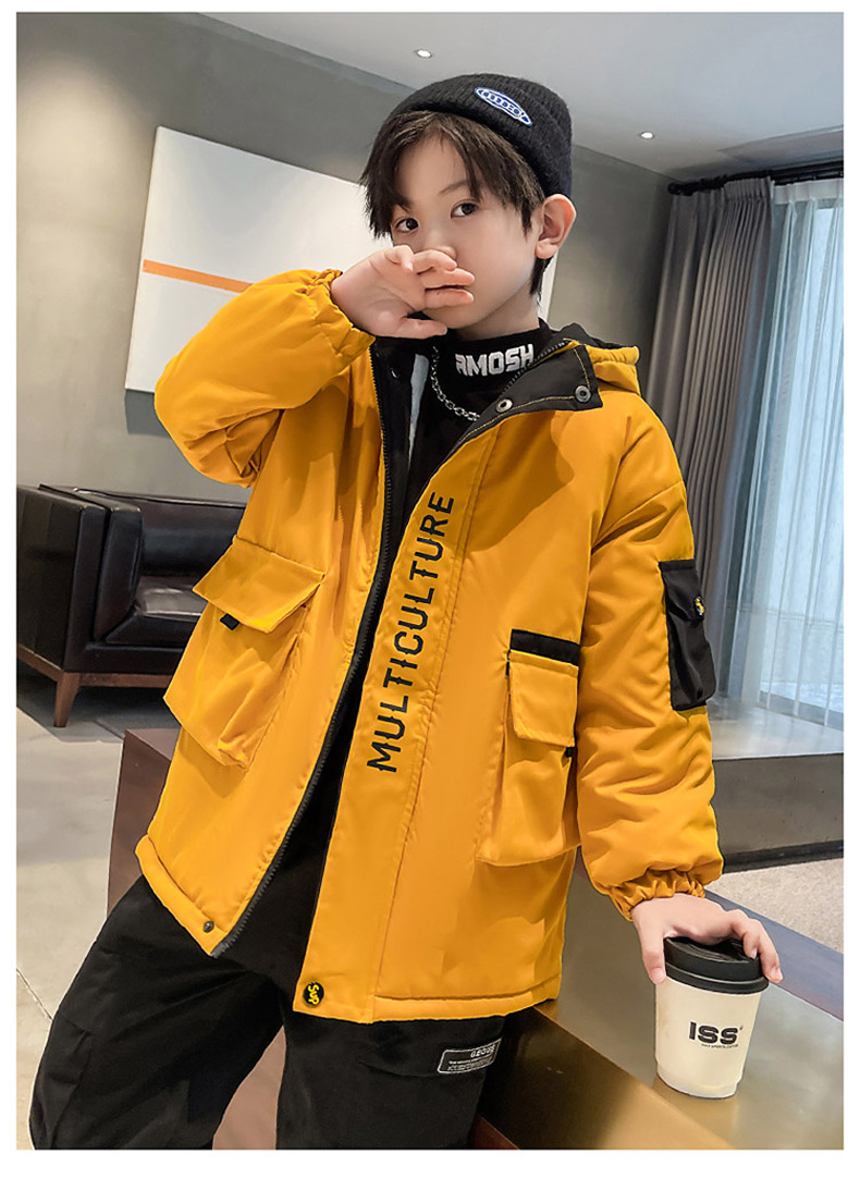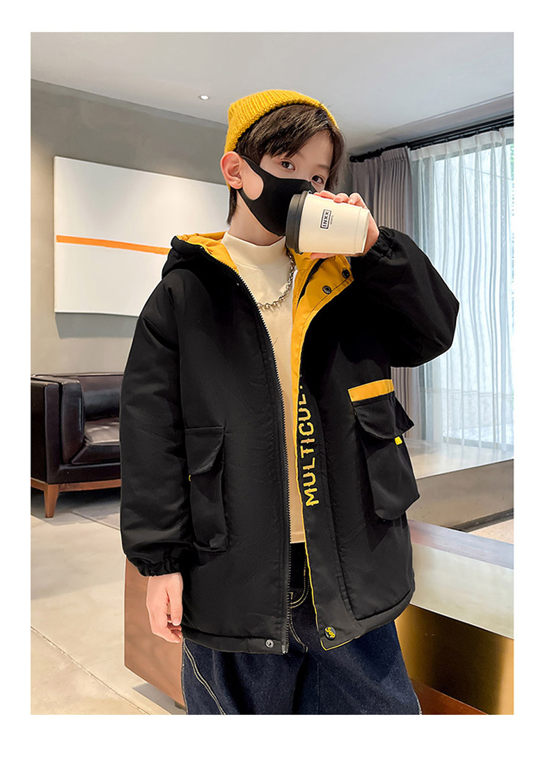 아동복 소년의 퀼트 재킷 가을과 겨울 새로운 기모 두꺼운 윈드 브레이커 대형 어린이를위한 중간 길이 후드 방풍 코트