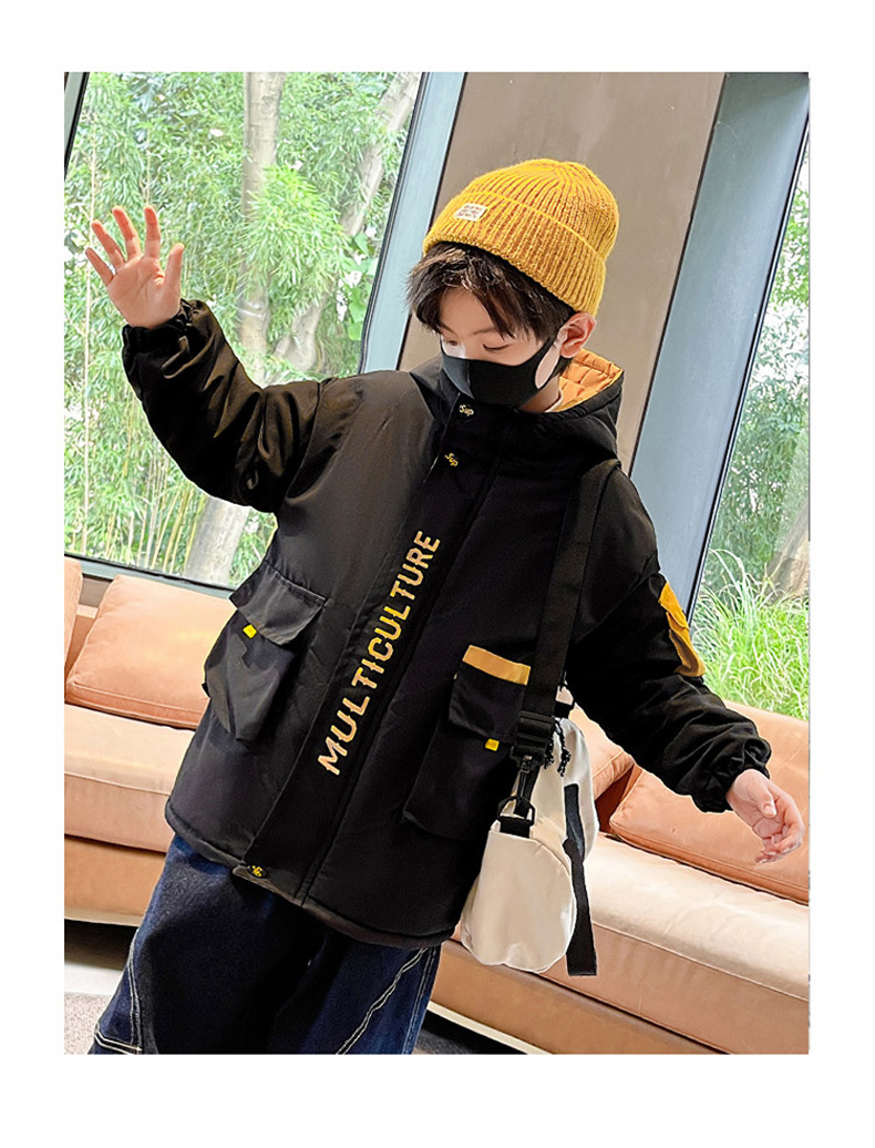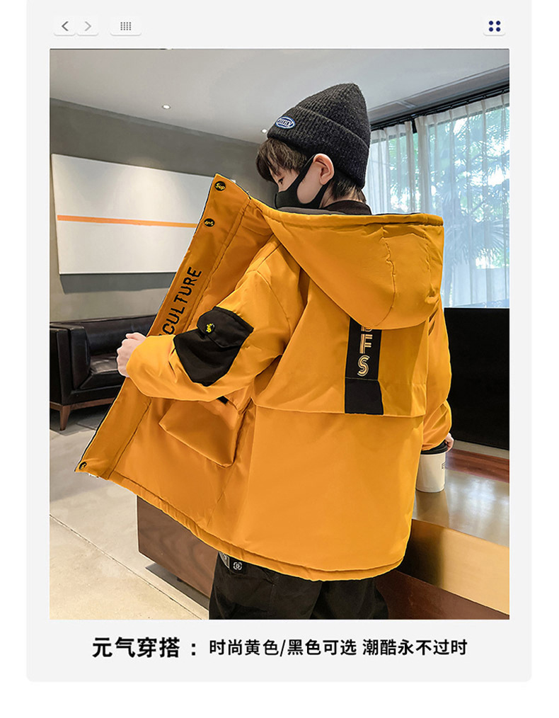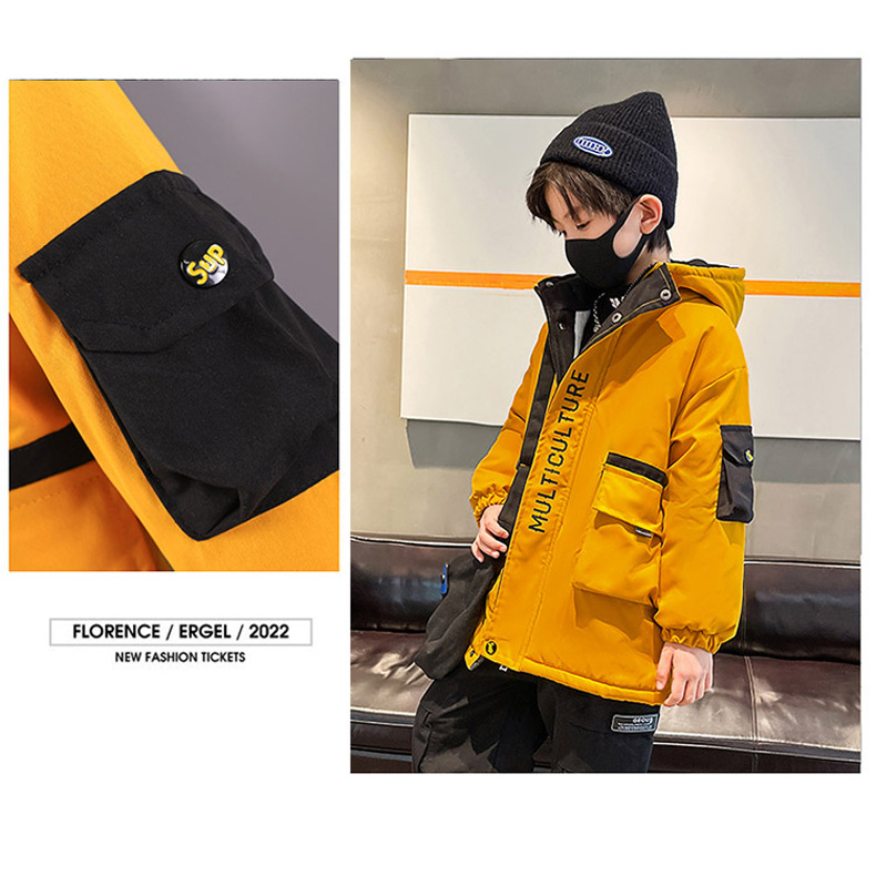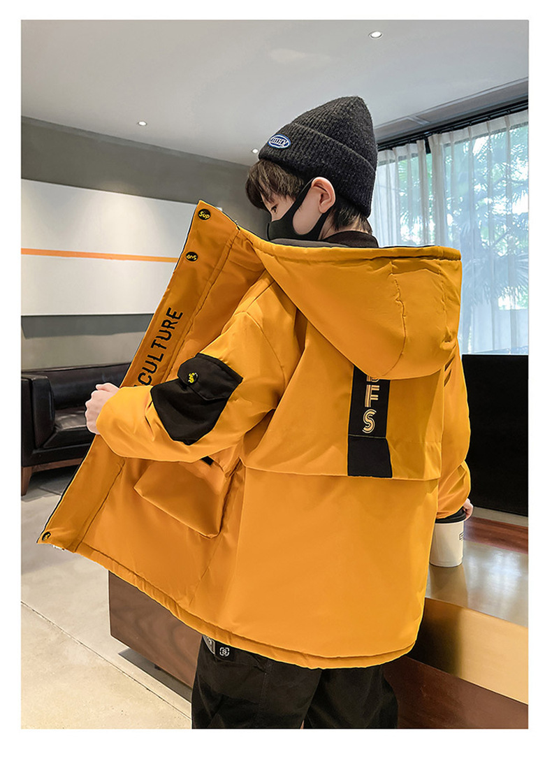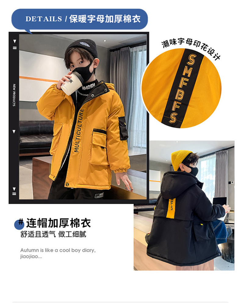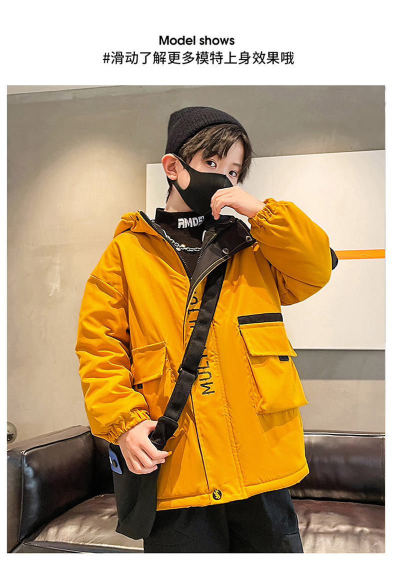 아동복 소년의 퀼트 재킷 가을과 겨울 새로운 기모 두꺼운 윈드 브레이커 대형 어린이를위한 중간 길이 후드 방풍 코트
