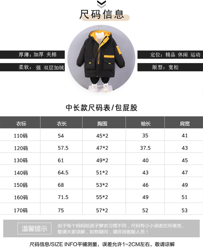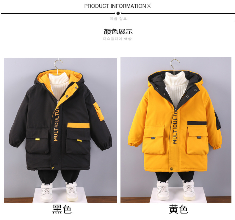 아동복 소년의 퀼트 재킷 가을과 겨울 새로운 기모 두꺼운 윈드 브레이커 대형 어린이를위한 중간 길이 후드 방풍 코트스토어 가기
