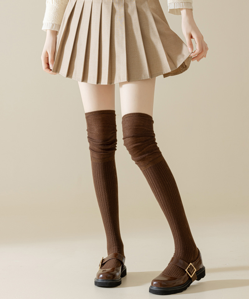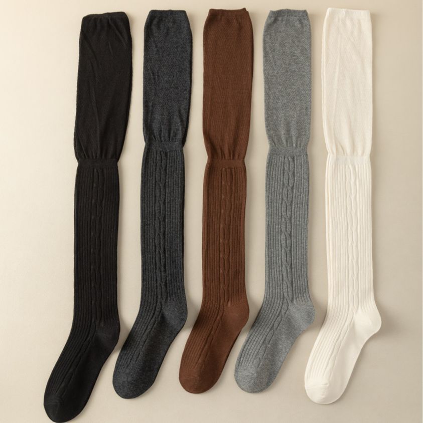가을과 겨울 사이드 트위스트 무릎 위 양말 여성용 허벅지 양말 miu 한국식 높은 양말 더미 양말 단색 양말
