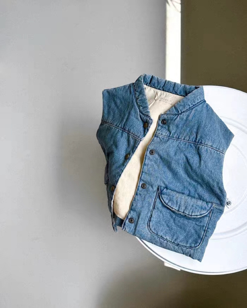 한국 스타일 in3 컬러 퀼트 조끼 하프 하이 칼라 포켓 민소매 조끼 따뜻한 봄 가을과 겨울 여성 남성 아기 의류스토어 가기