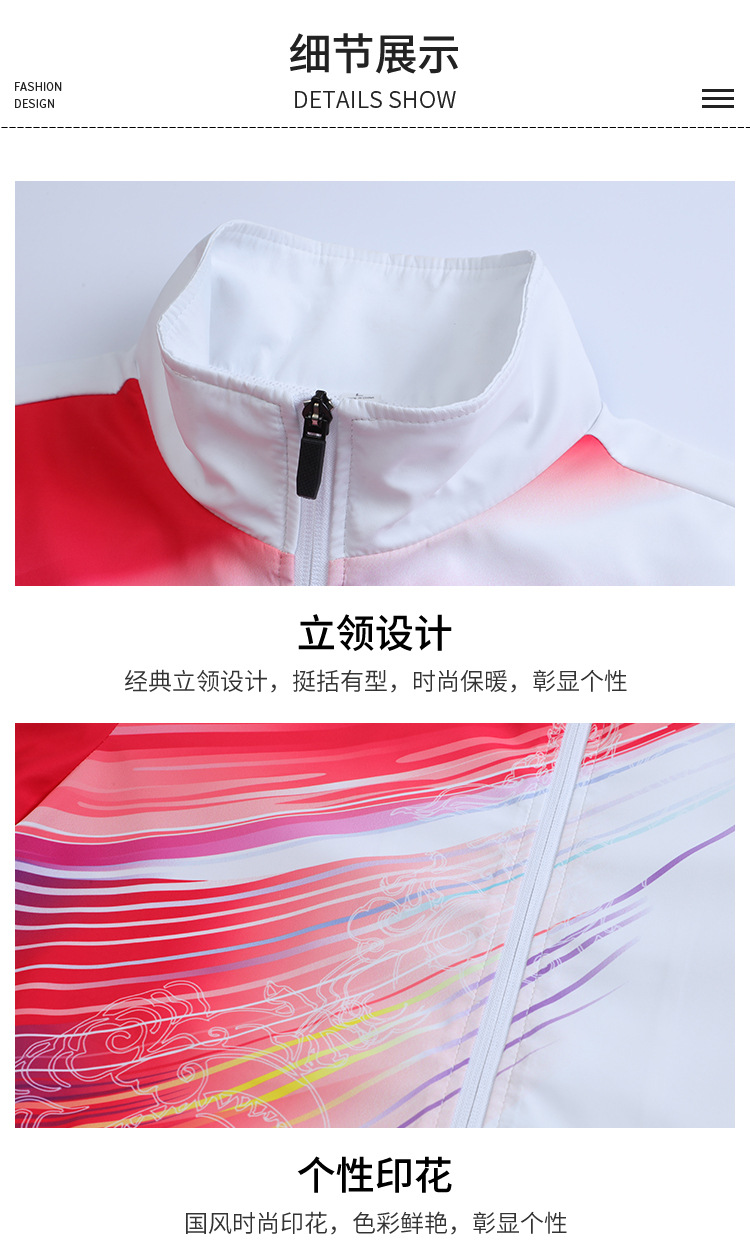数码印花春秋立领运动服套装 男女款运动员出场服志愿者团体服装