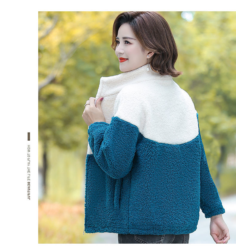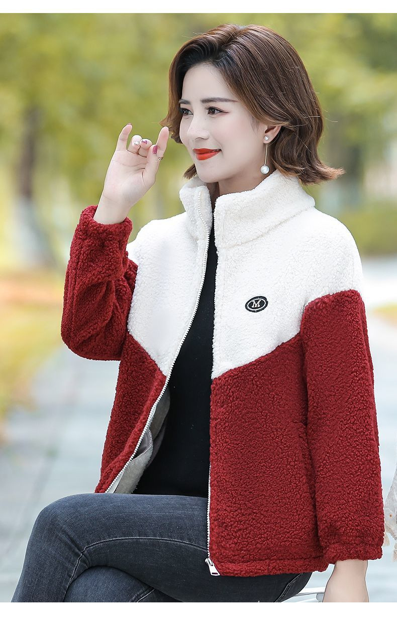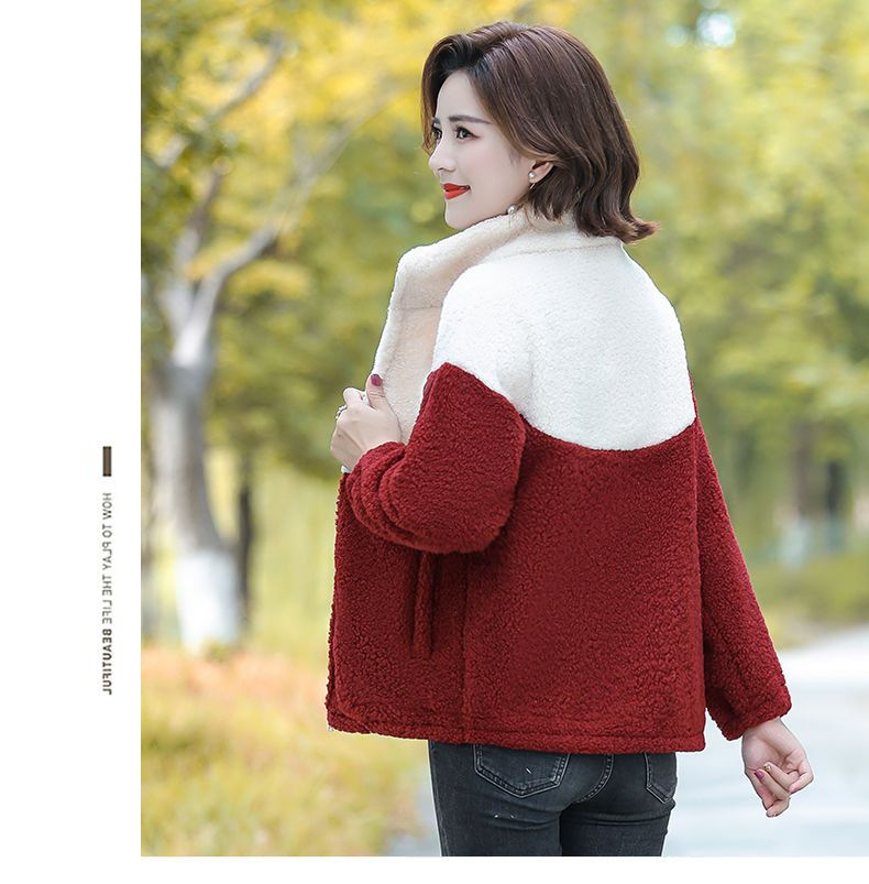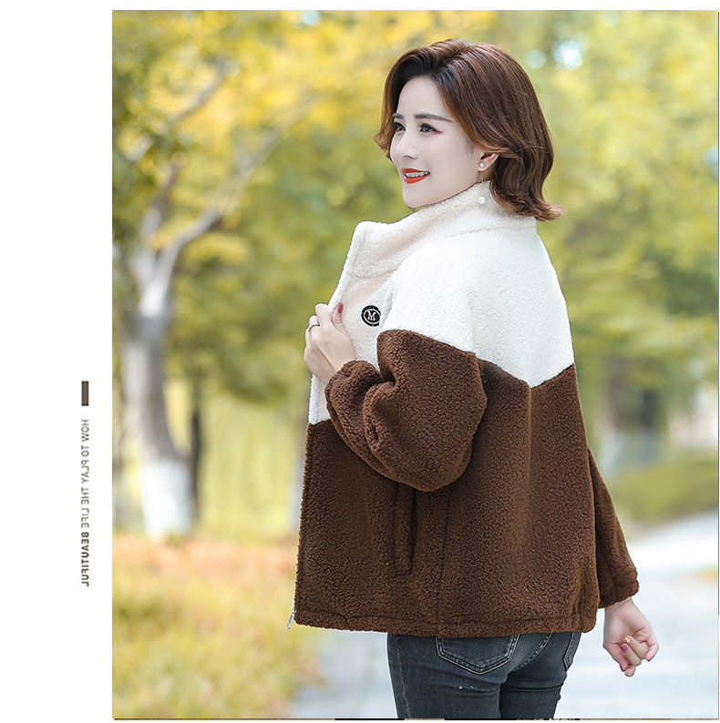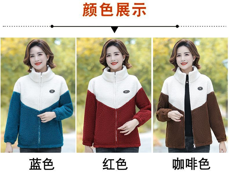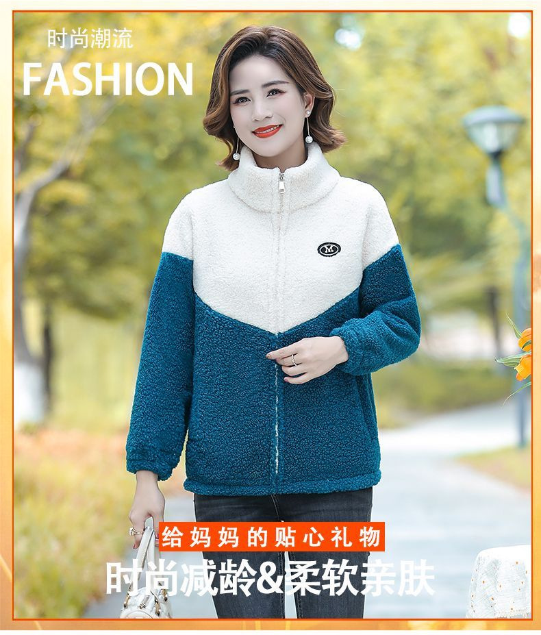 엄마의 가을과 겨울 기모 두꺼운 모조 양고기 벨벳 재킷 중년 및 노인 여성의 서양식 입자 벨벳 탑 따뜻한 면 패딩 재킷스토어 가기