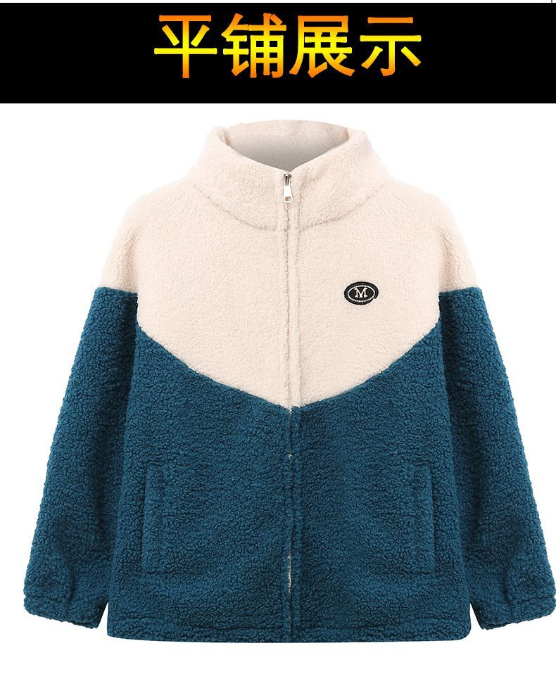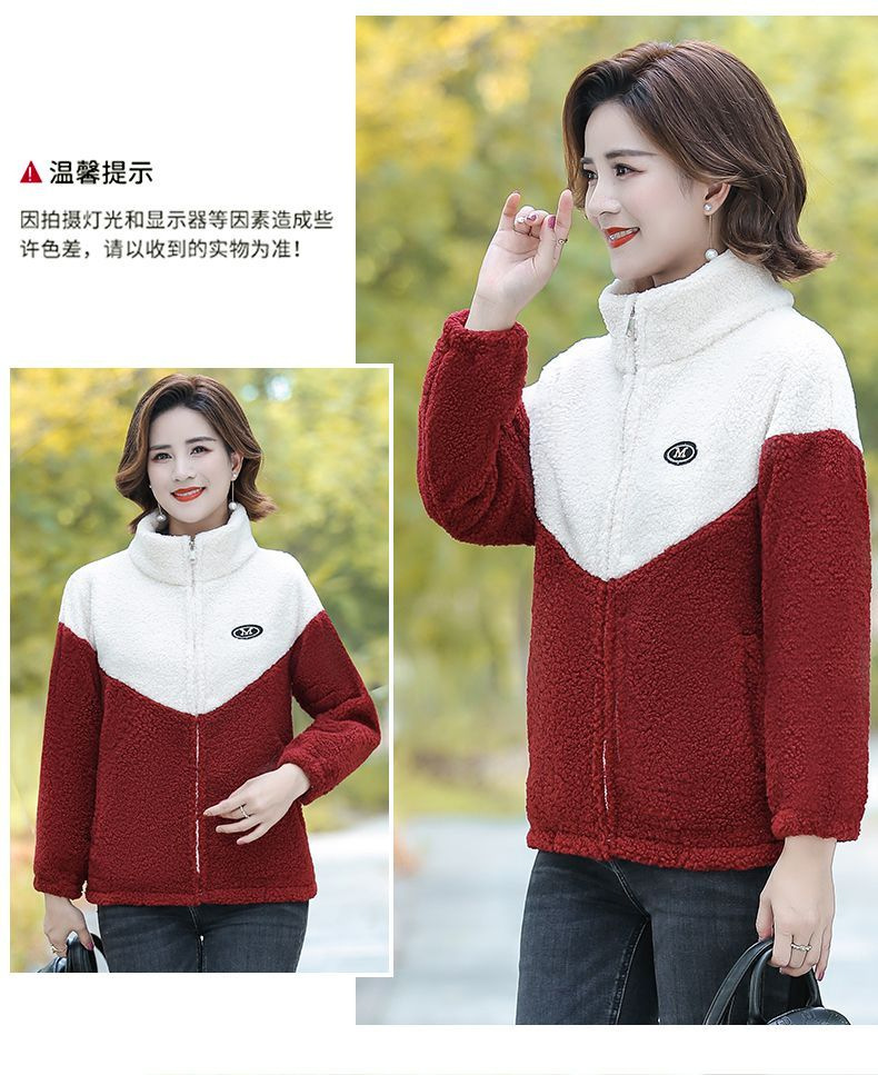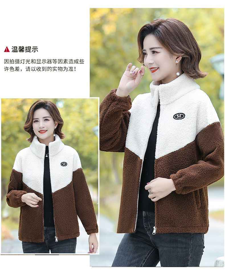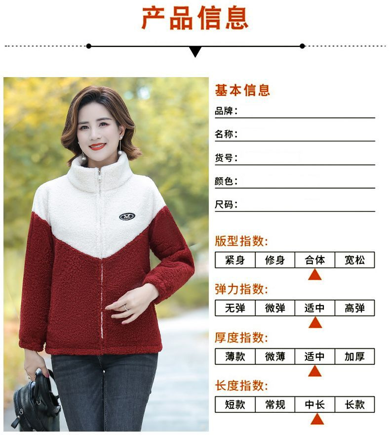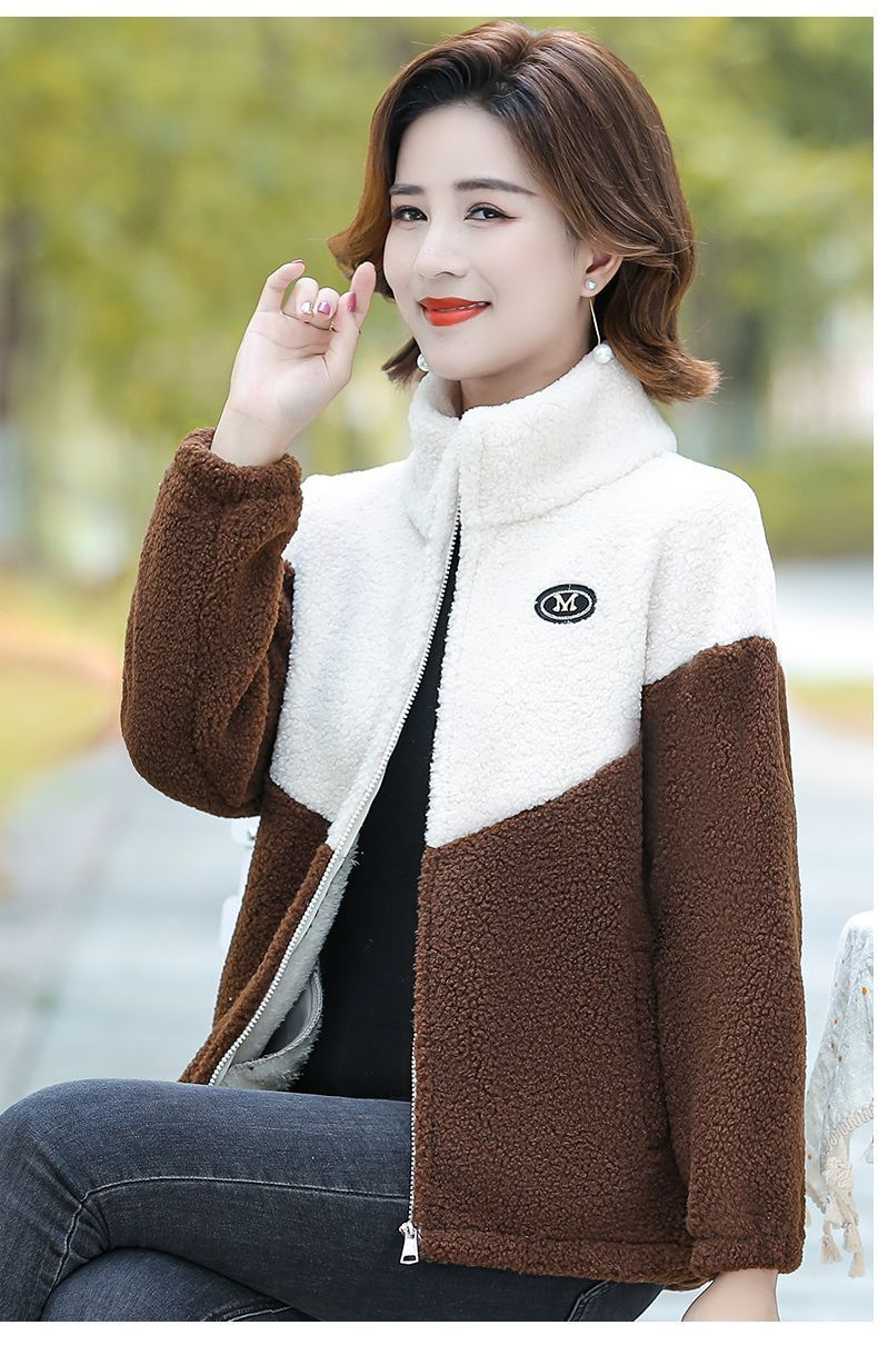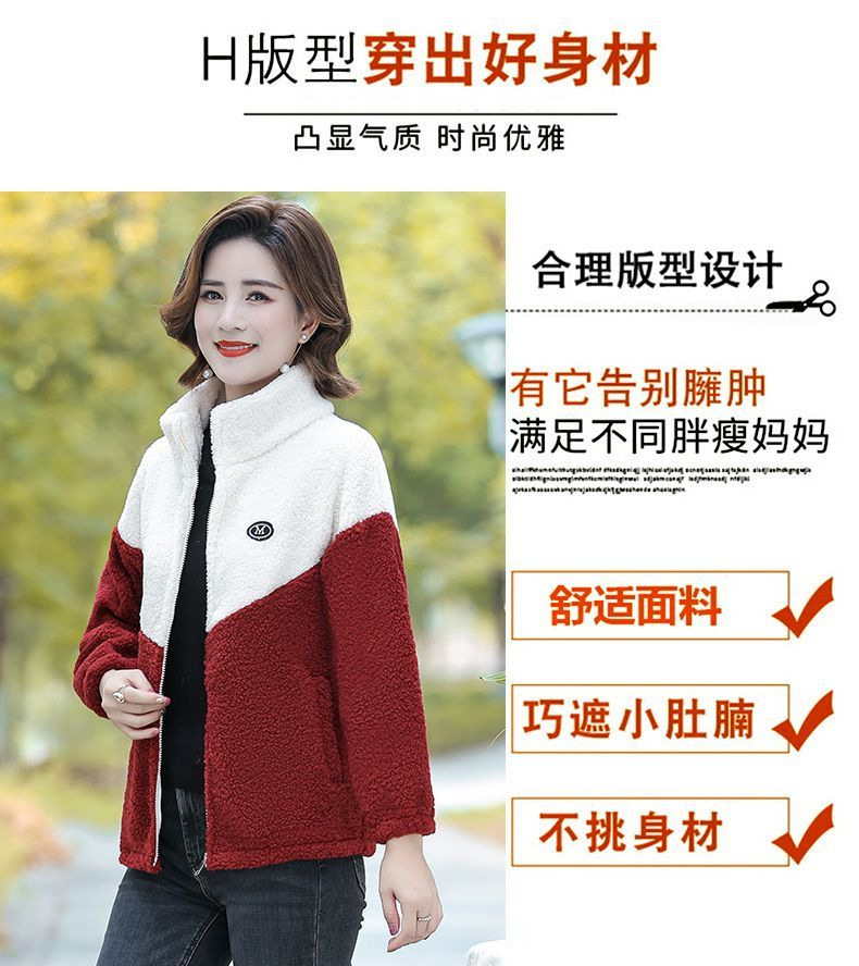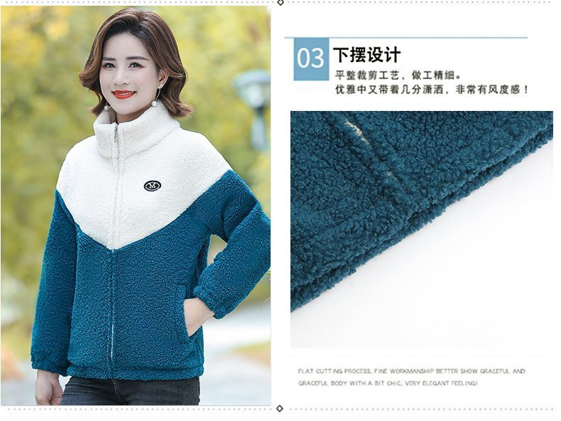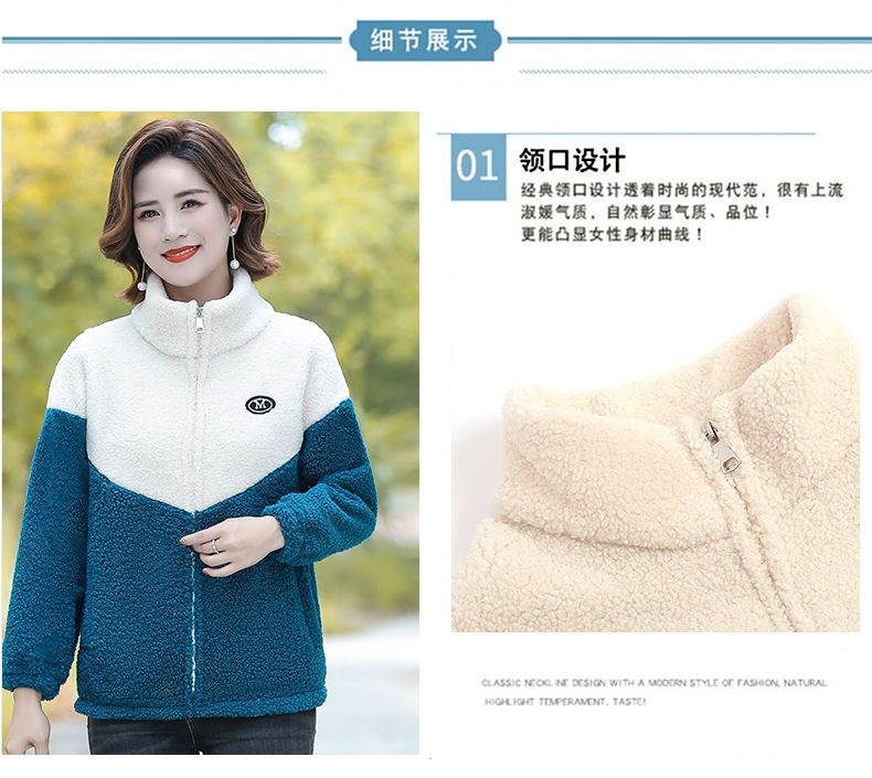 엄마의 가을과 겨울 기모 두꺼운 모조 양고기 벨벳 재킷 중년 및 노인 여성의 서양식 입자 벨벳 탑 따뜻한 면 패딩 재킷