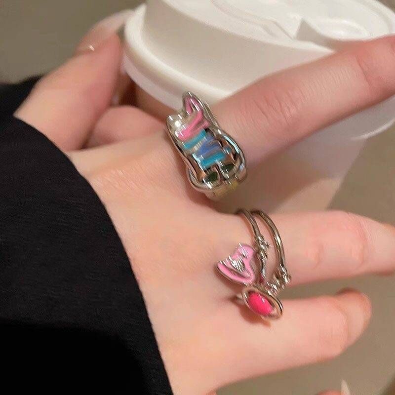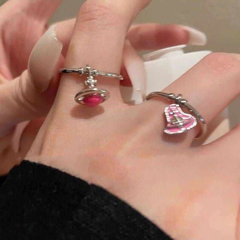 독특한 토성 컬러 편지 사랑 반지 틈새 y2k 디자인 틈새 하이 패션 달콤한 쿨 링스토어 가기