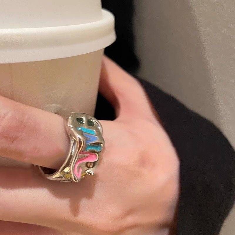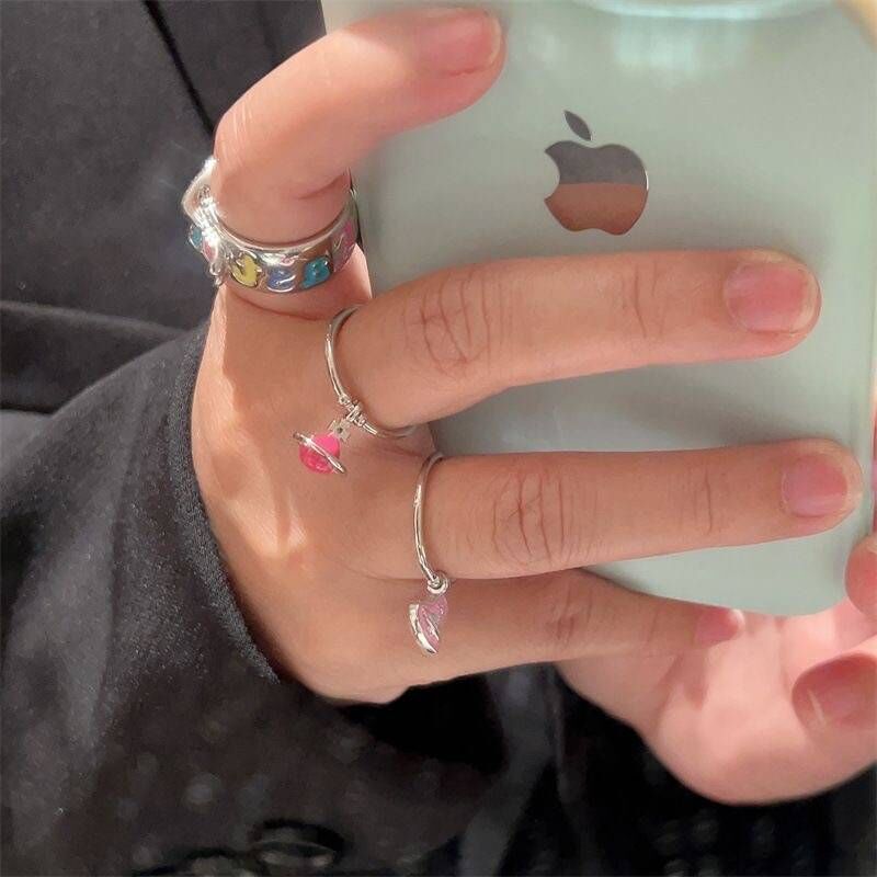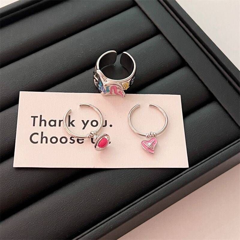 독특한 토성 컬러 편지 사랑 반지 틈새 y2k 디자인 틈새 하이 패션 달콤한 쿨 링