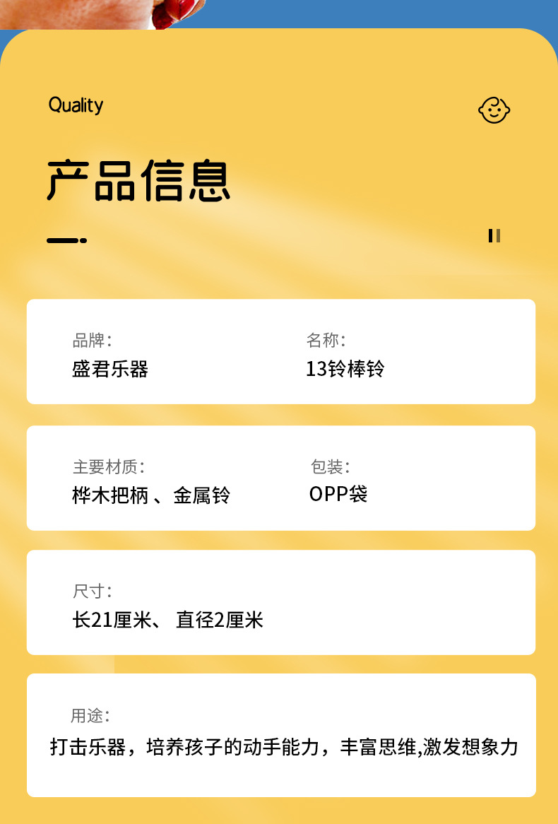 어린이 딸랑이 도매 나무 딸랑이 유치원 조기 교육 악기 교습 음악 끈 벨 13 벨 스틱 벨스토어 가기