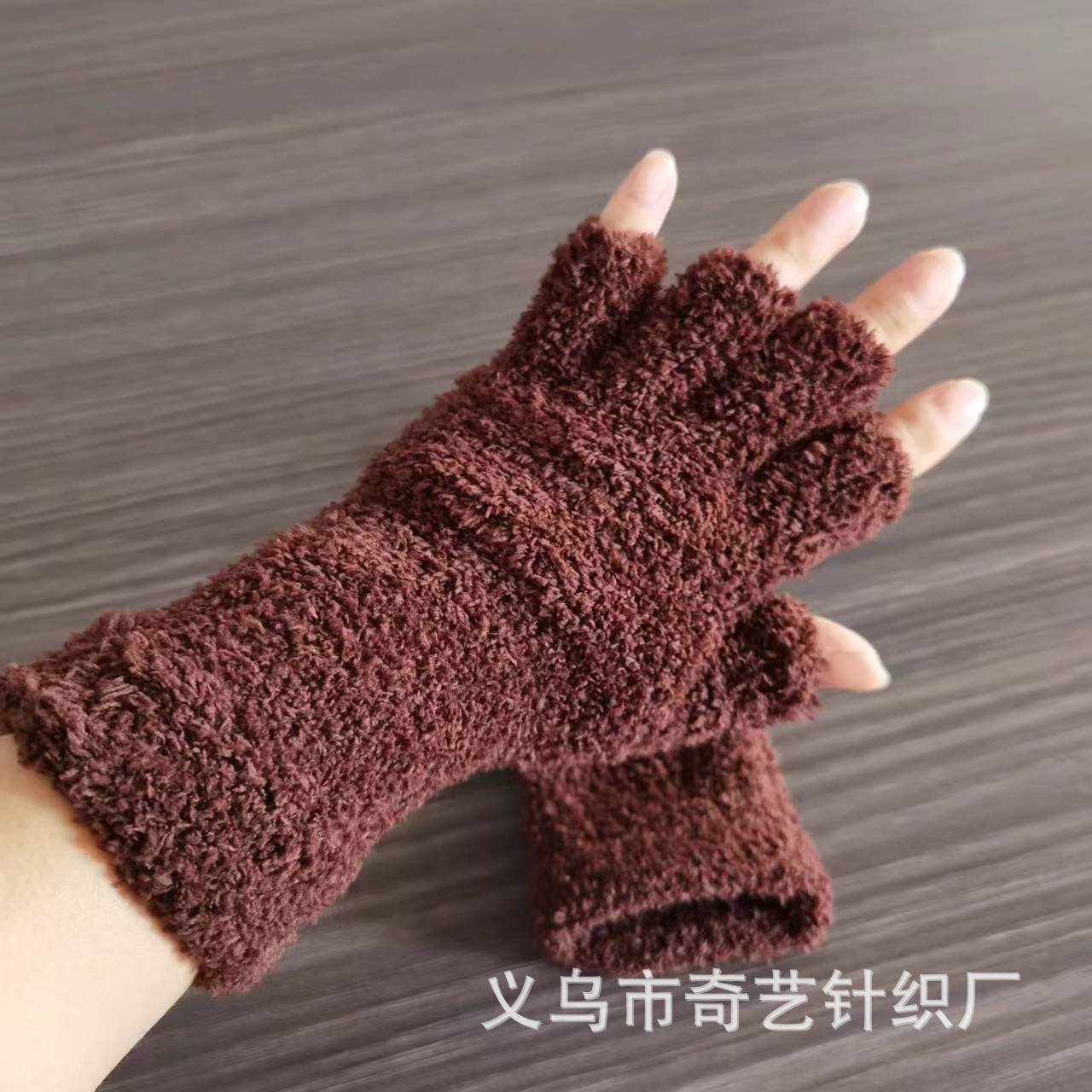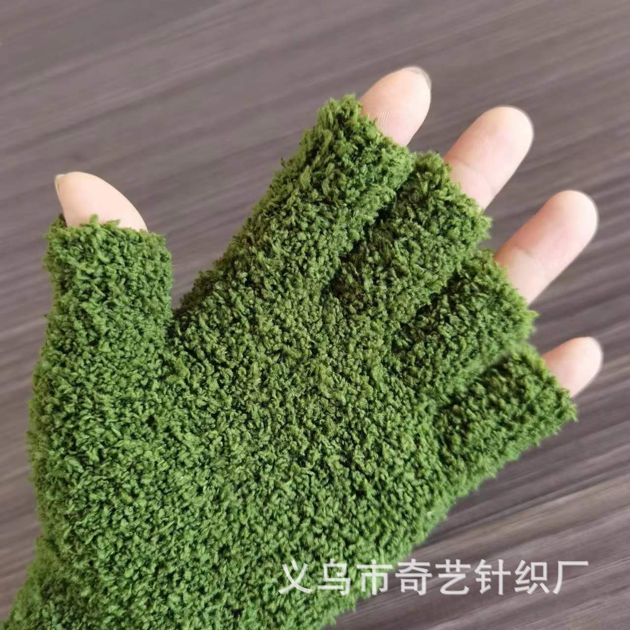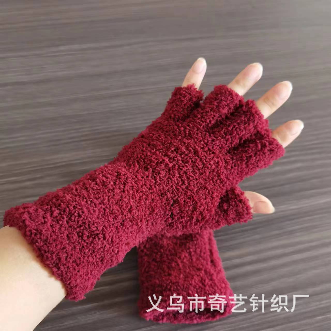 단색 확장 손목 산호 양털 오픈 핑거 장갑 가을과 겨울 긴 니트 따뜻한 남성과 여성의 플러시 반 손가락 도매