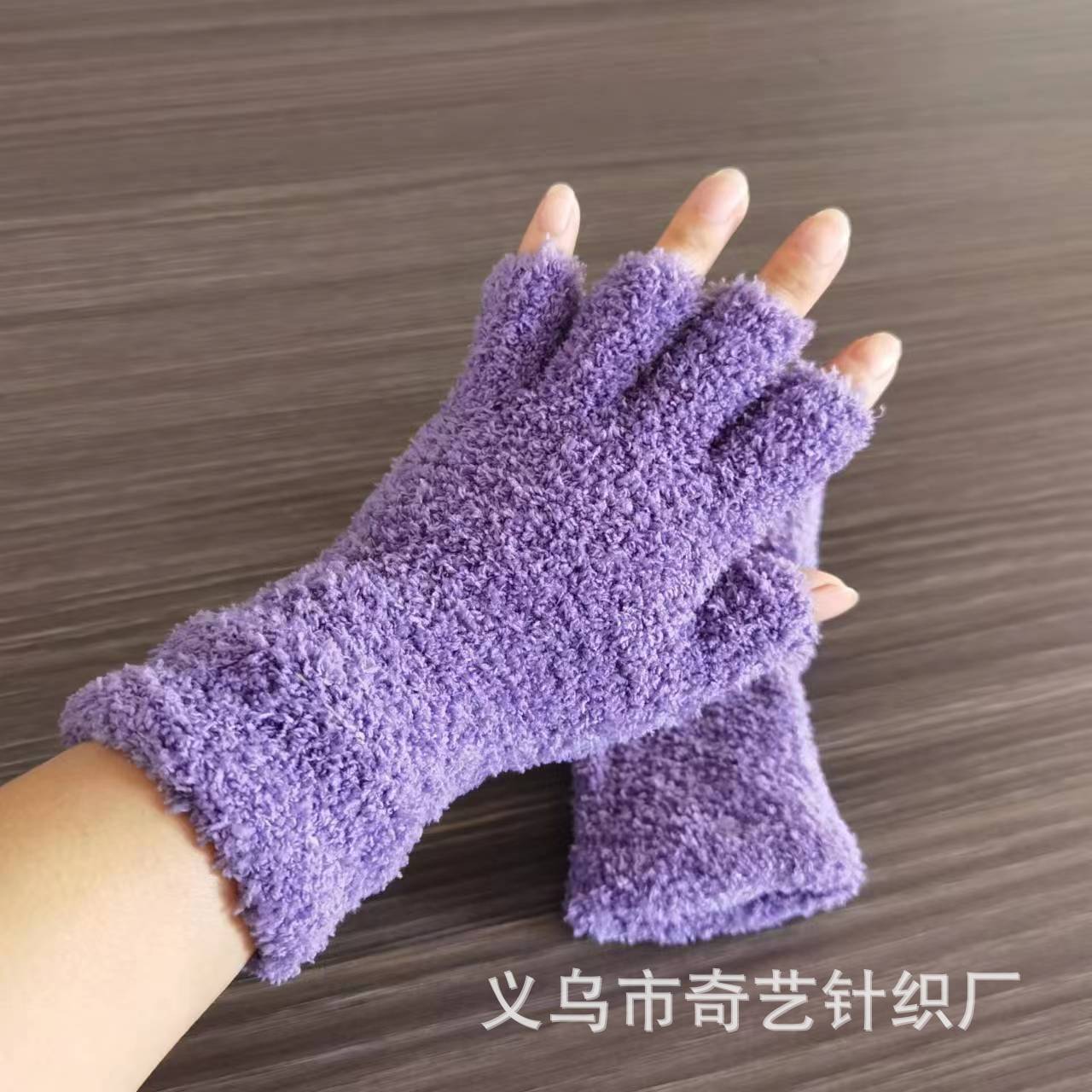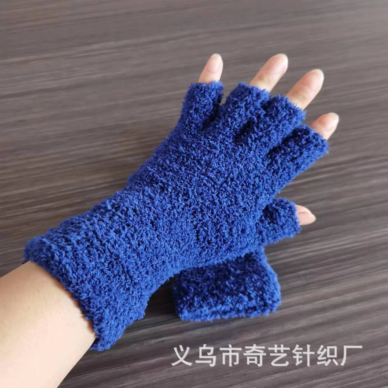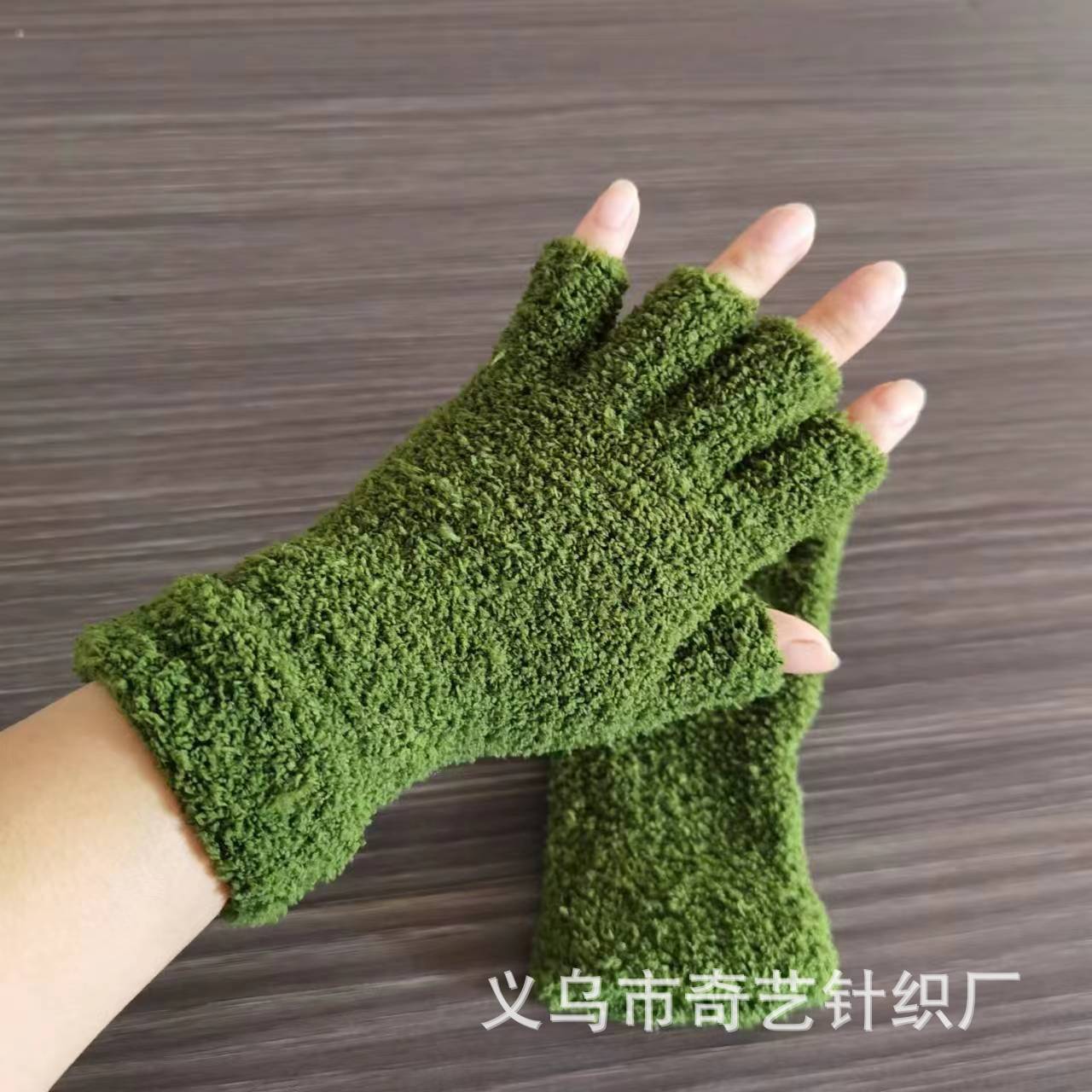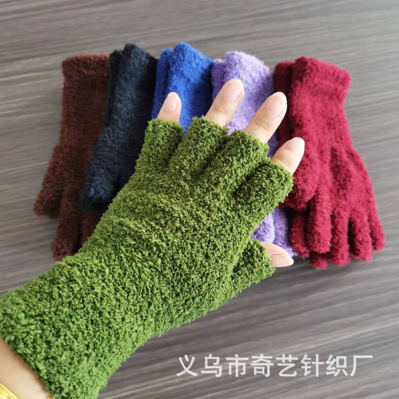단색 확장 손목 산호 양털 오픈 핑거 장갑 가을과 겨울 긴 니트 따뜻한 남성과 여성의 플러시 반 손가락 도매