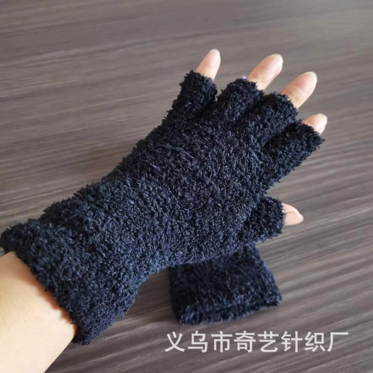 단색 확장 손목 산호 양털 오픈 핑거 장갑 가을과 겨울 긴 니트 따뜻한 남성과 여성의 플러시 반 손가락 도매스토어 가기