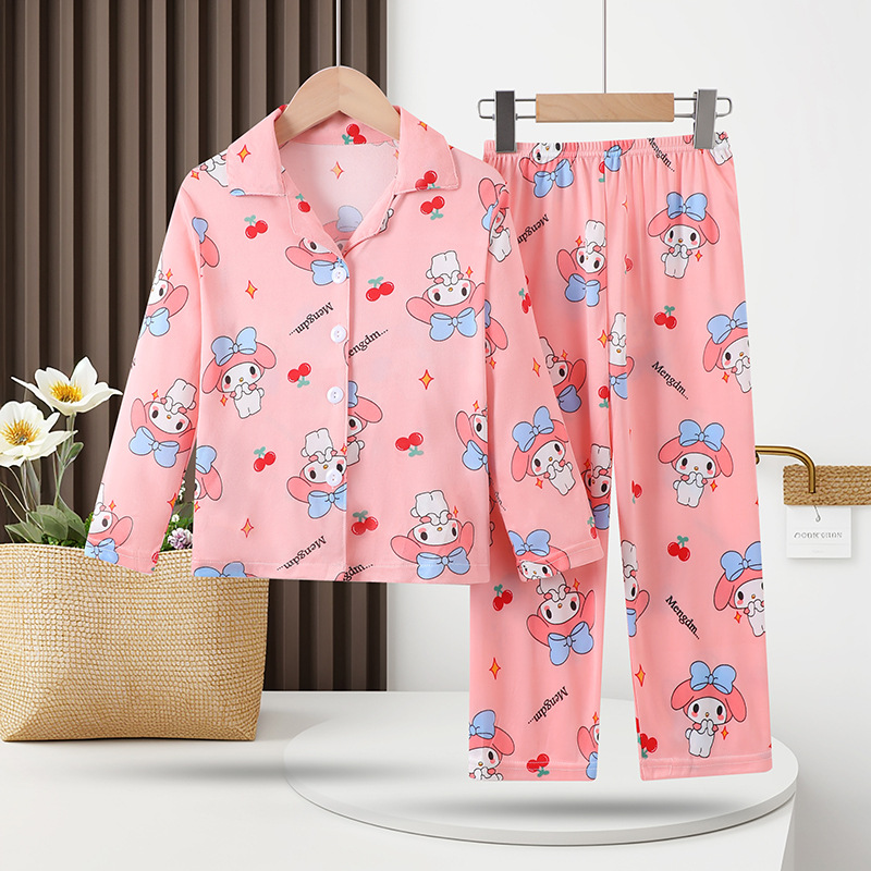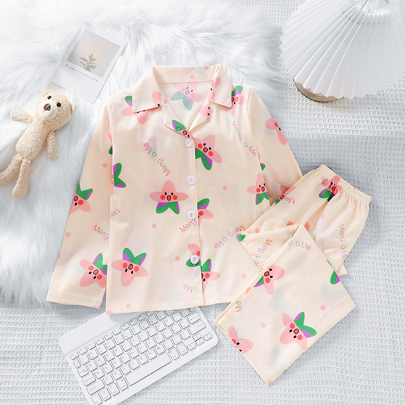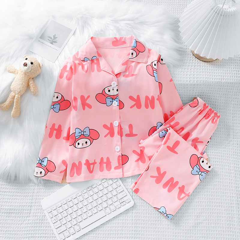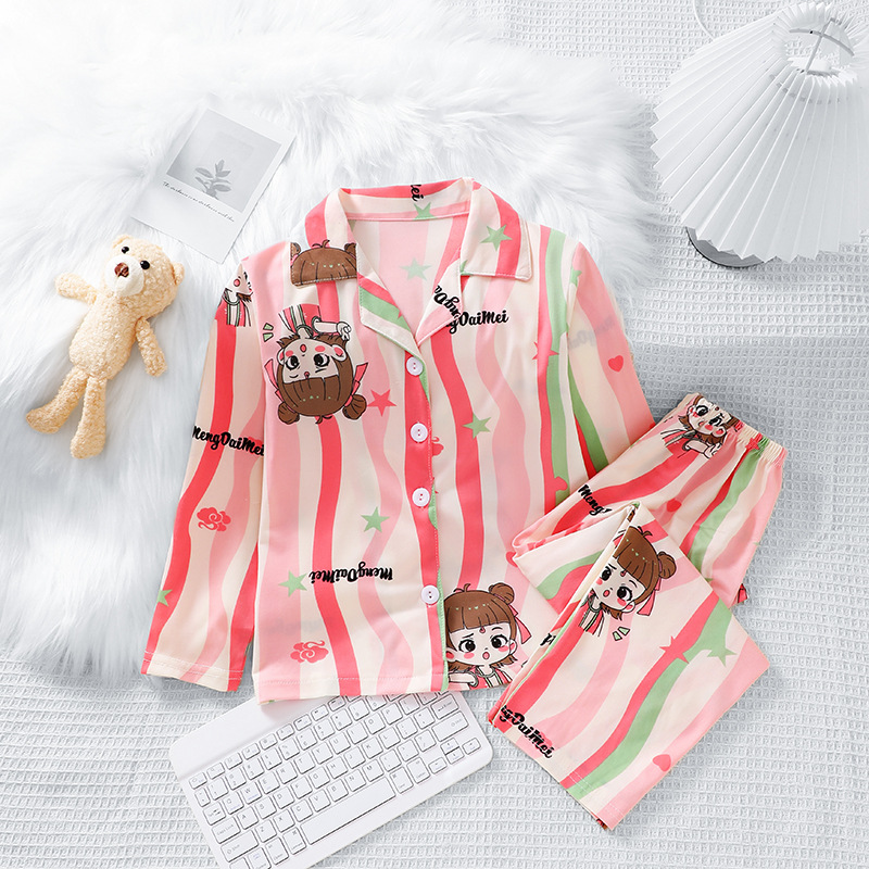 2025년 신상 아동 잠옷 여아 봄 가을 긴팔 세트 어린 소녀 큰 아이 홈웨어 여름 외출복