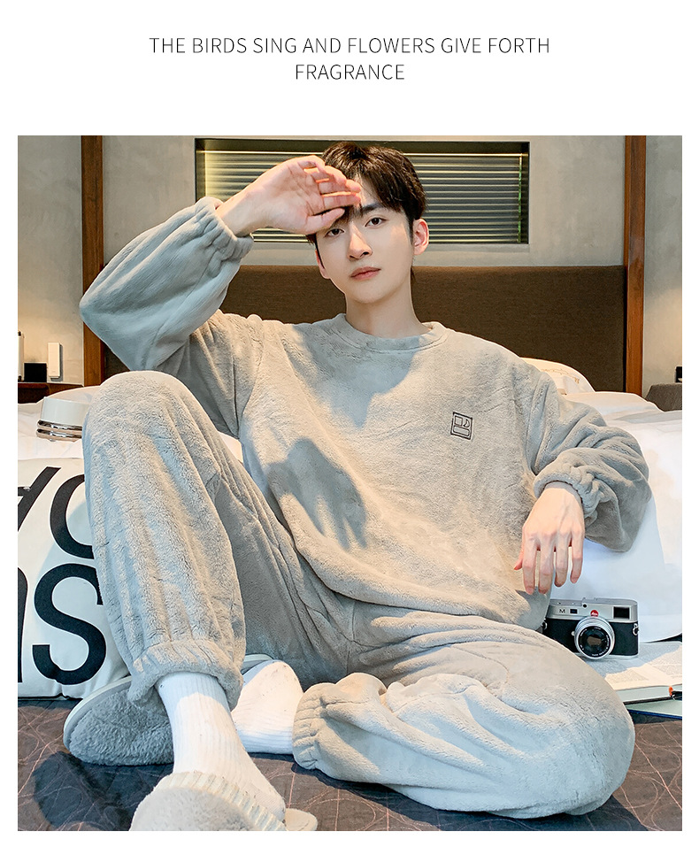 산호 양털 잠옷 남자의 겨울 두꺼운 기모 따뜻한 플란넬 가을과 겨울 남자의 플러스 사이즈 가정 의류스토어 가기