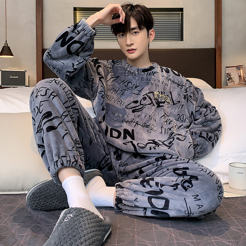 산호 양털 잠옷 남자의 겨울 두꺼운 기모 따뜻한 플란넬 가을과 겨울 남자의 플러스 사이즈 가정 의류