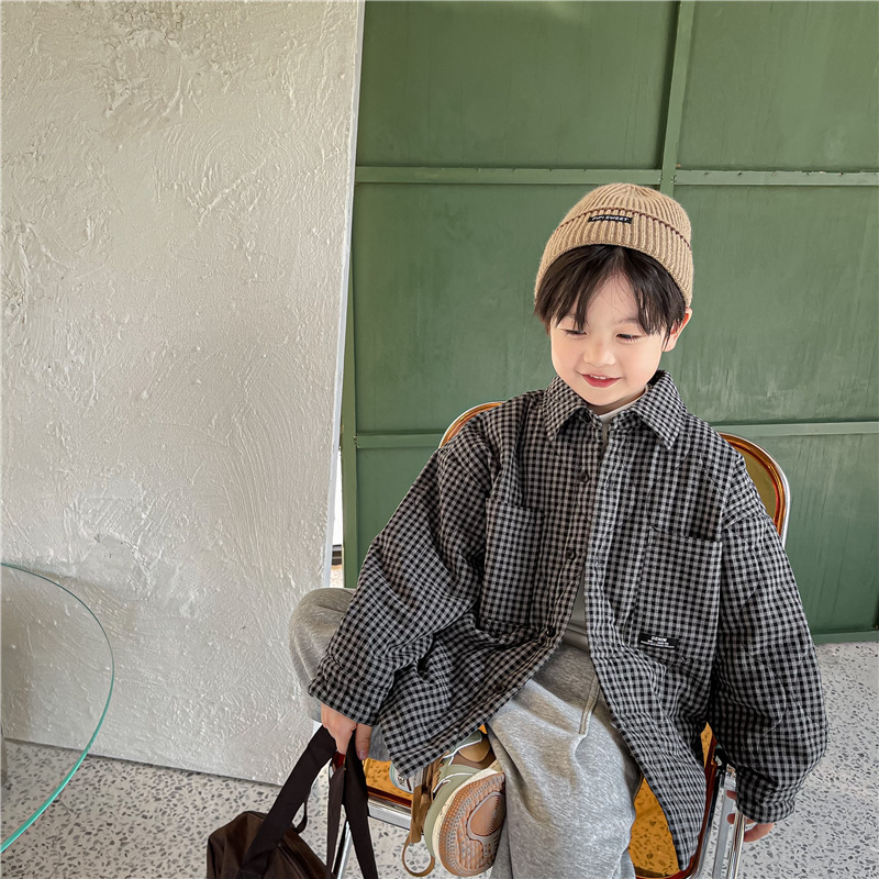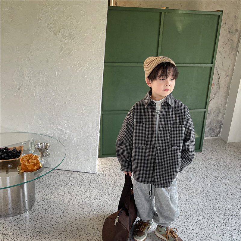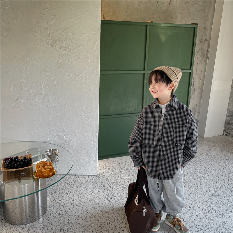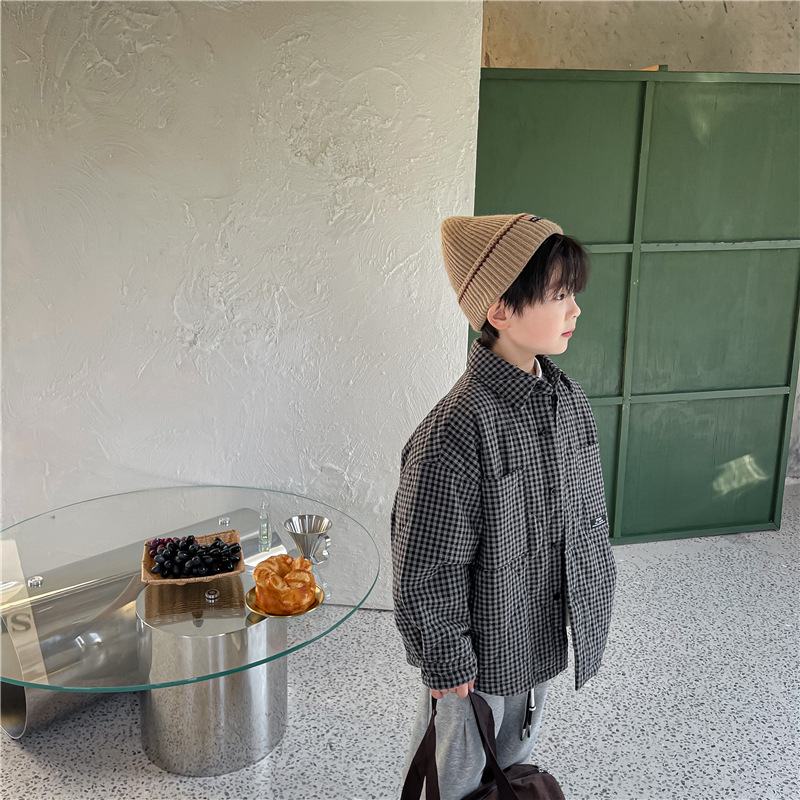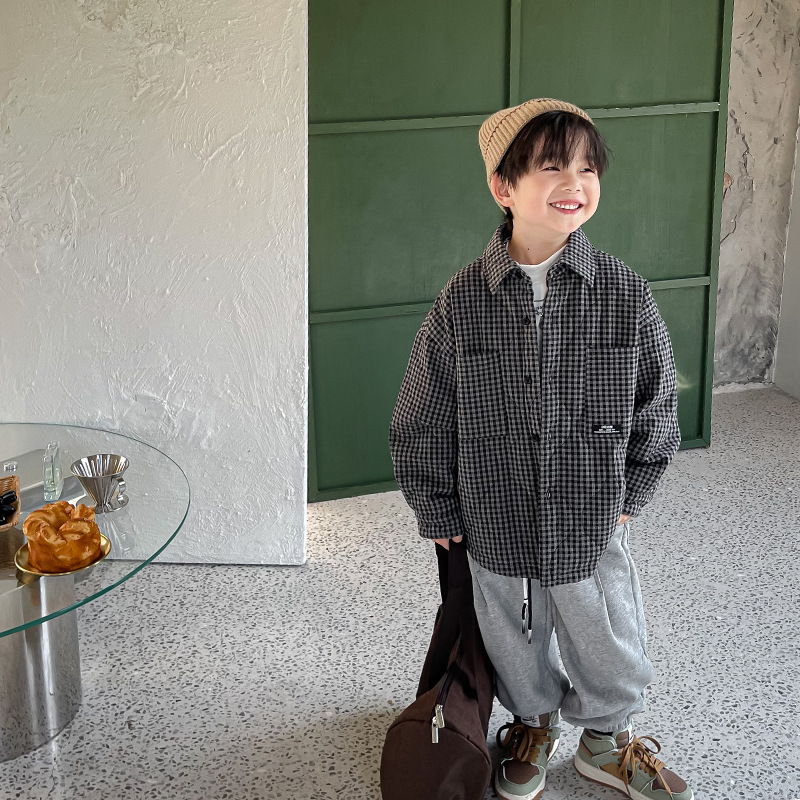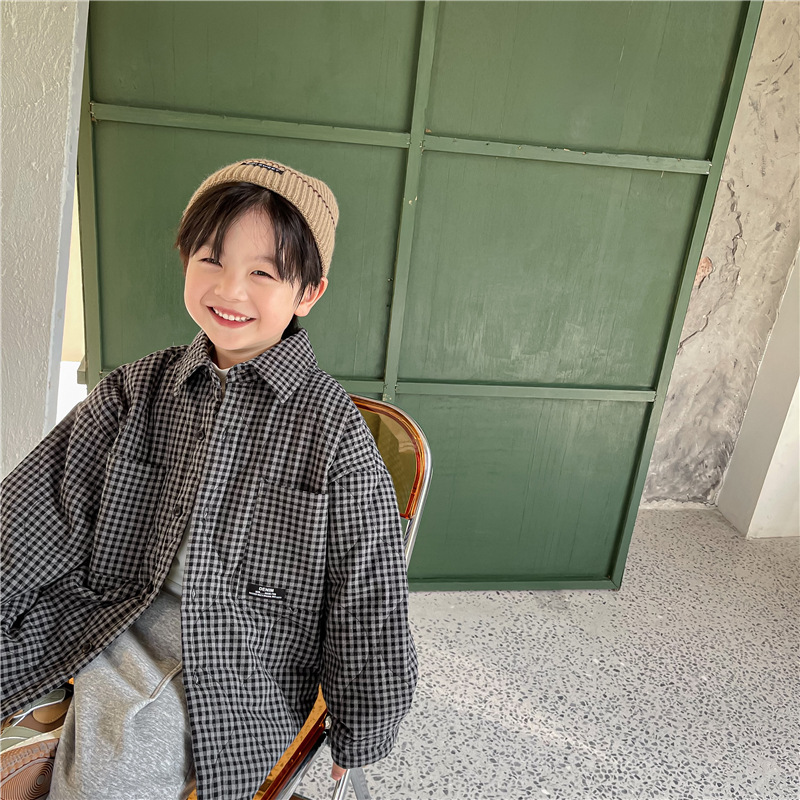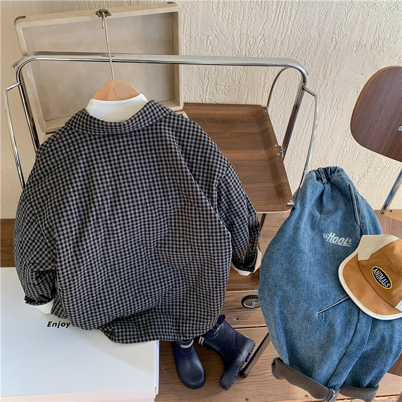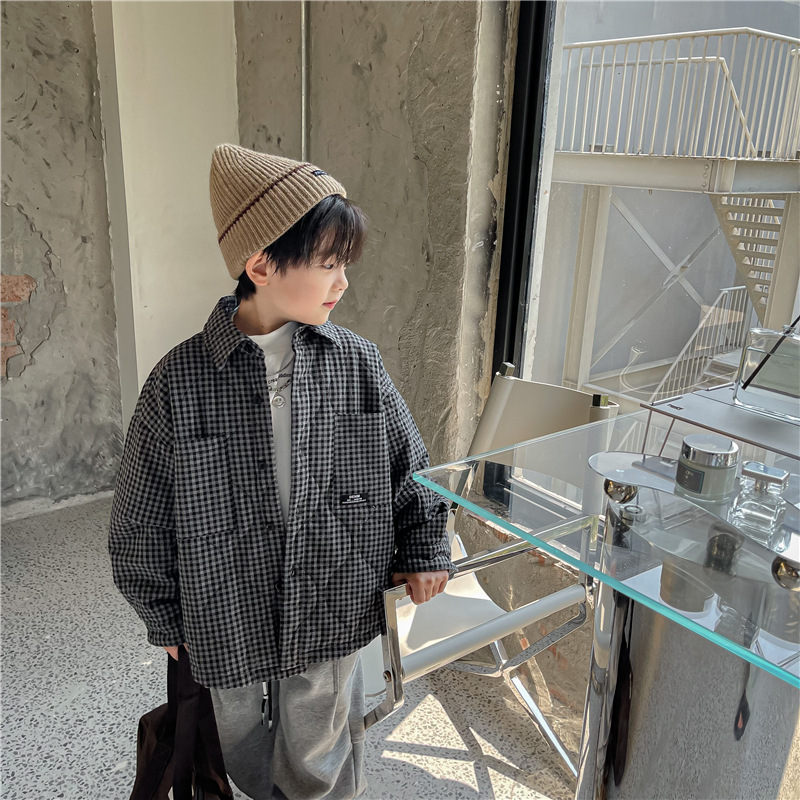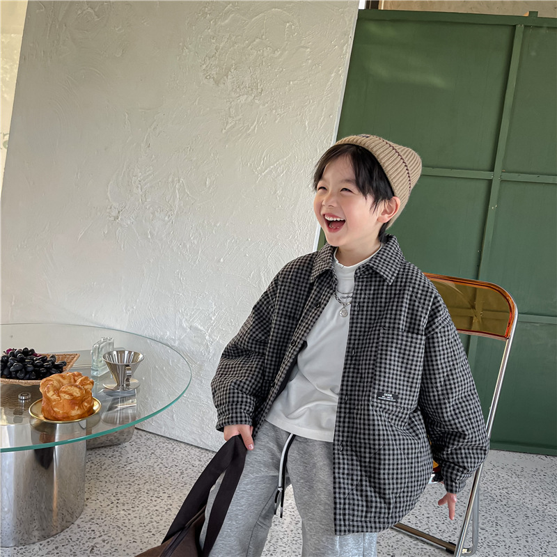 Baoduo 아동복 소년 면화 셔츠 가을과 겨울 2023 새로운 어린이 겨울 격자 무늬 탑 두꺼운 패션스토어 가기