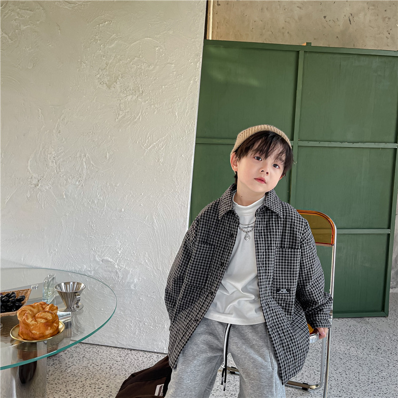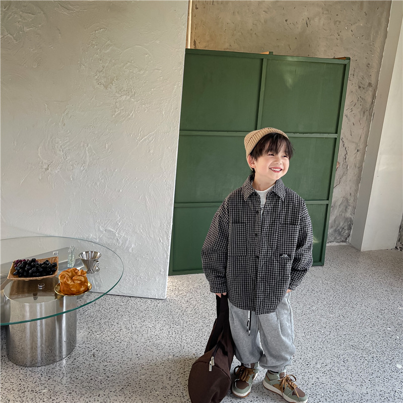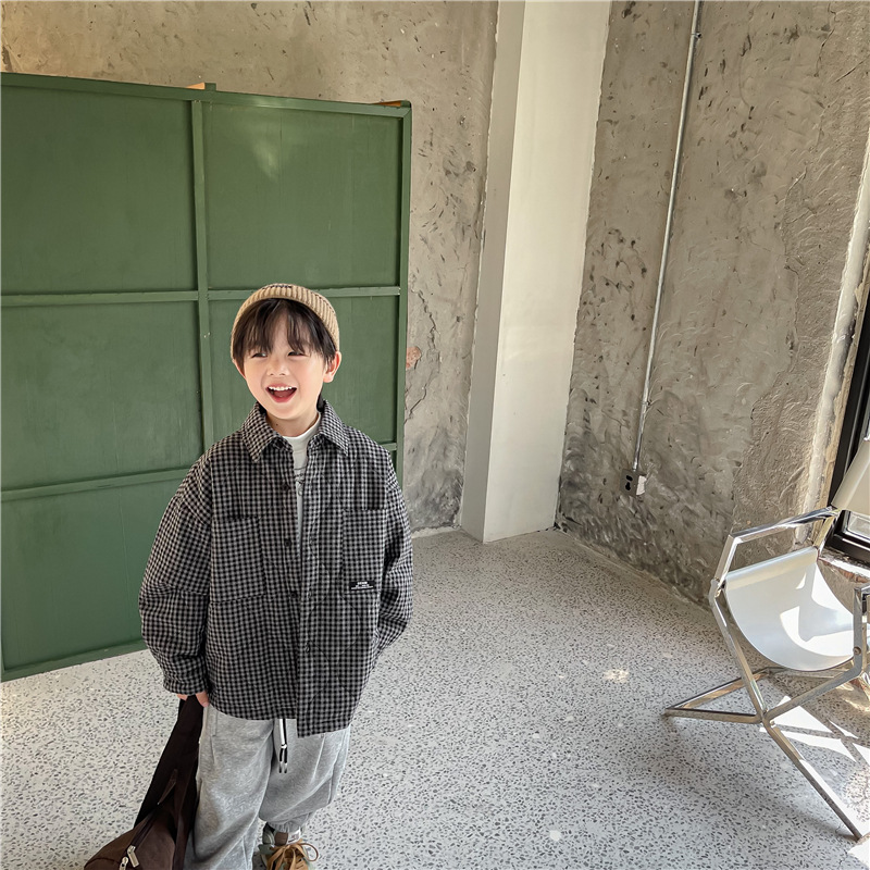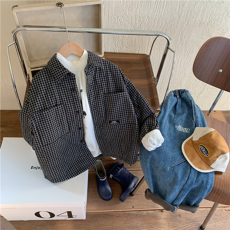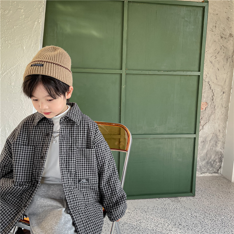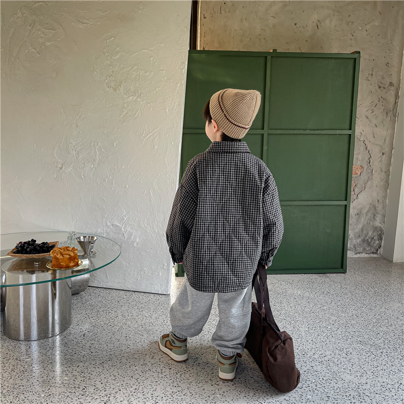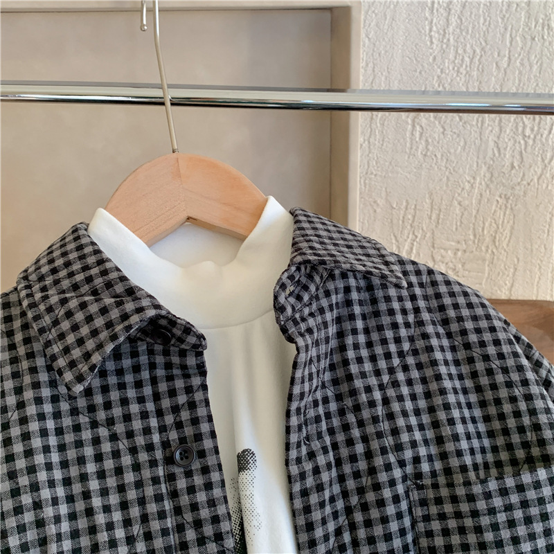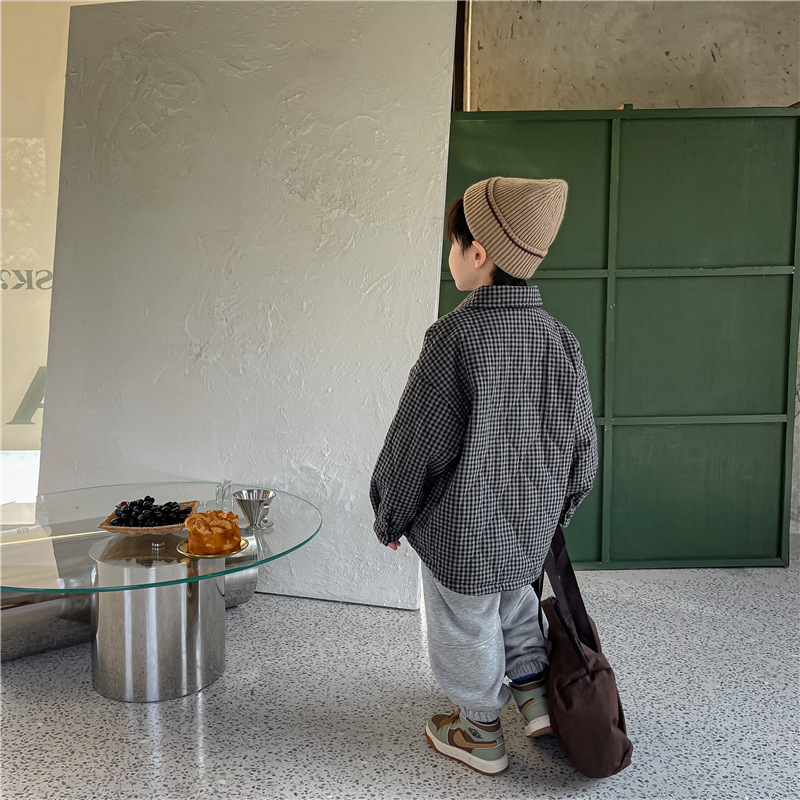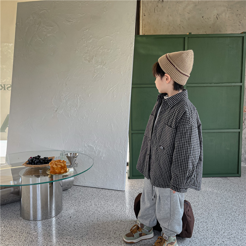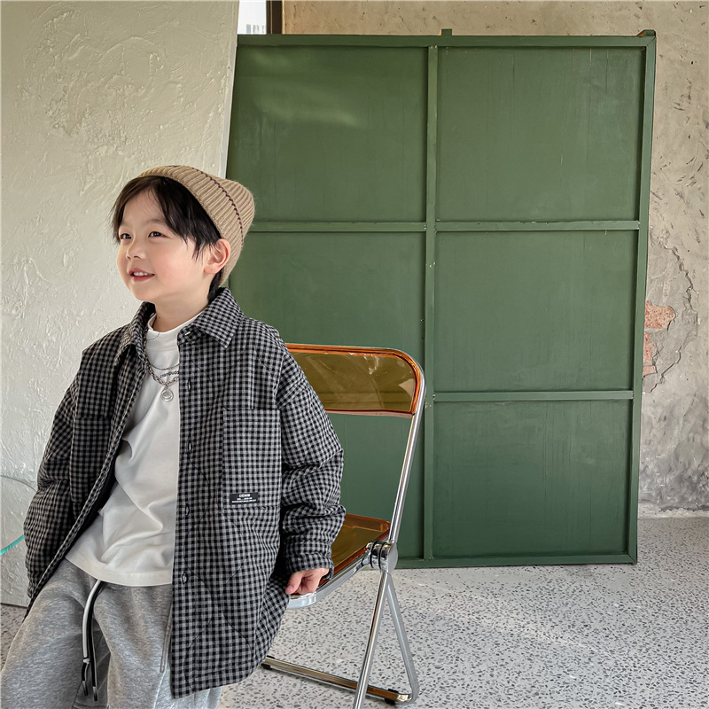 Baoduo 아동복 소년 면화 셔츠 가을과 겨울 2023 새로운 어린이 겨울 격자 무늬 탑 두꺼운 패션스토어 가기