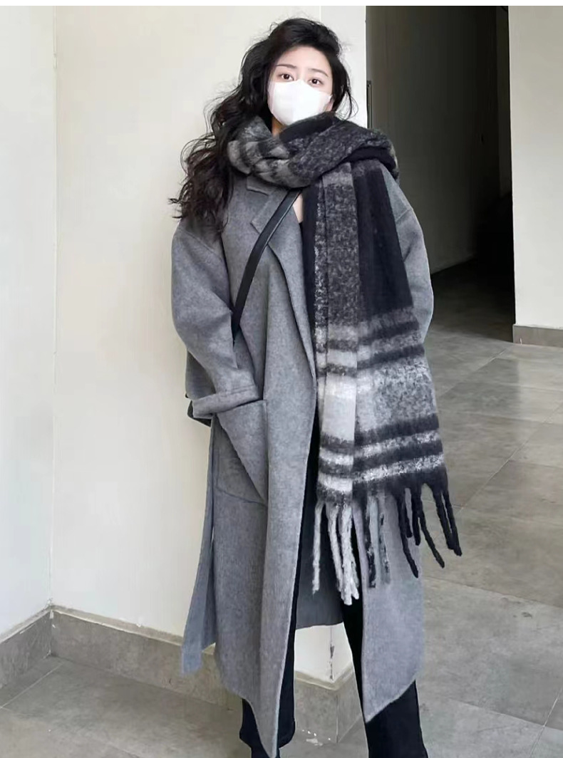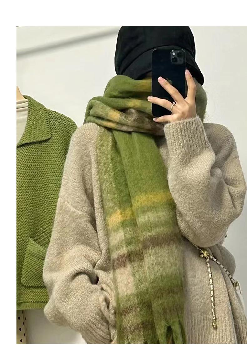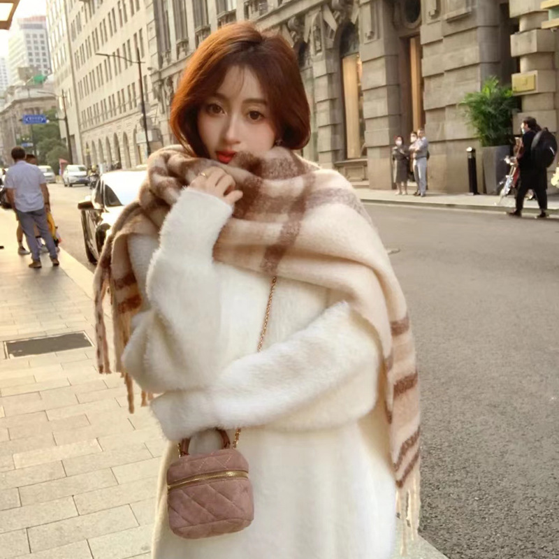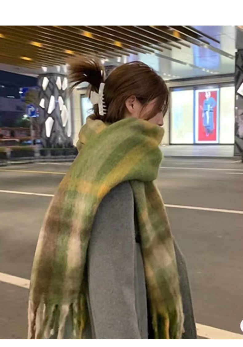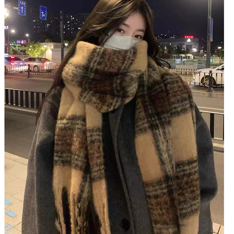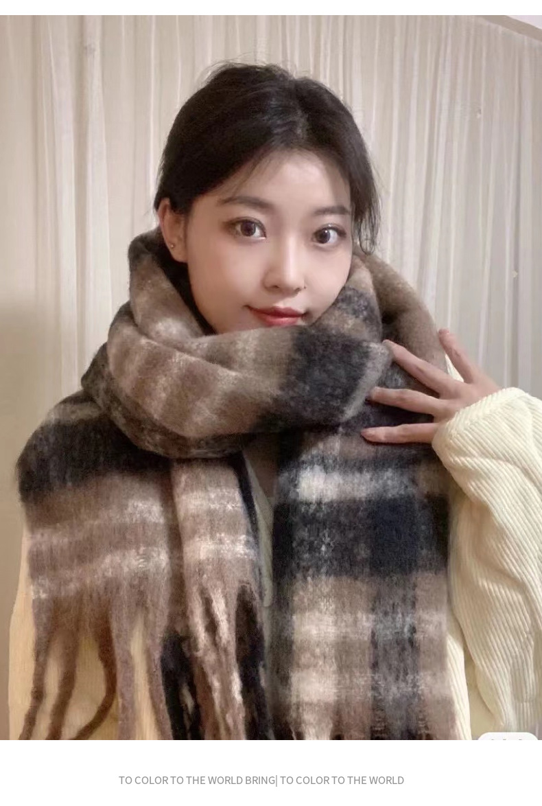 한국식 격자 무늬 목도리 술 모헤어 스카프 여성 겨울 일본 학생 여행 모든 경기 패션 캐주얼 스카프스토어 가기