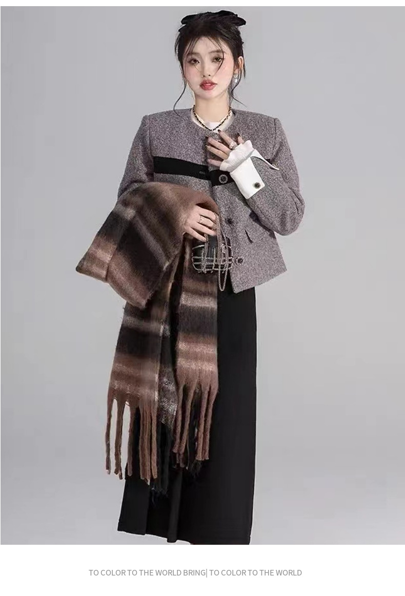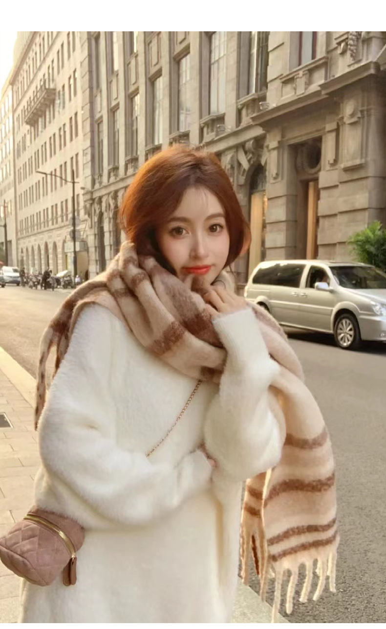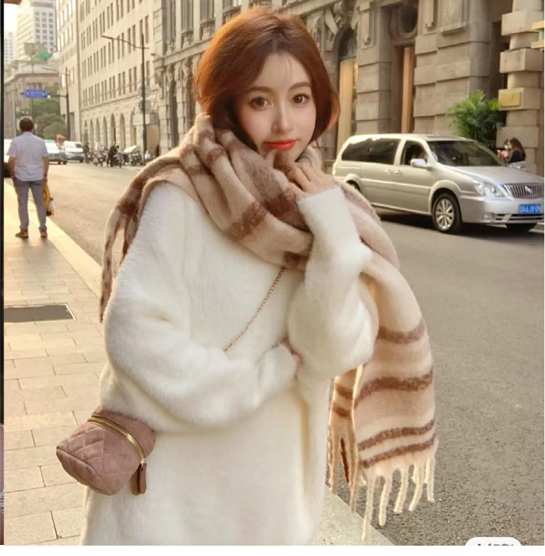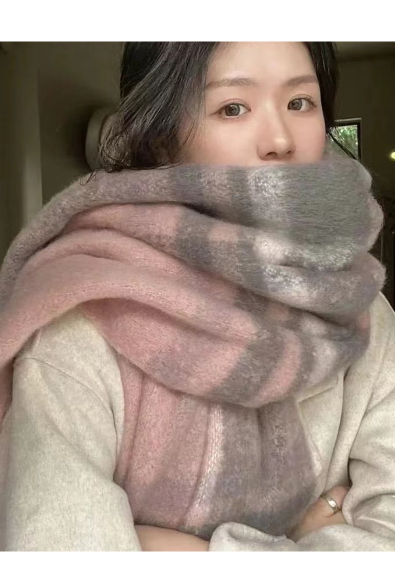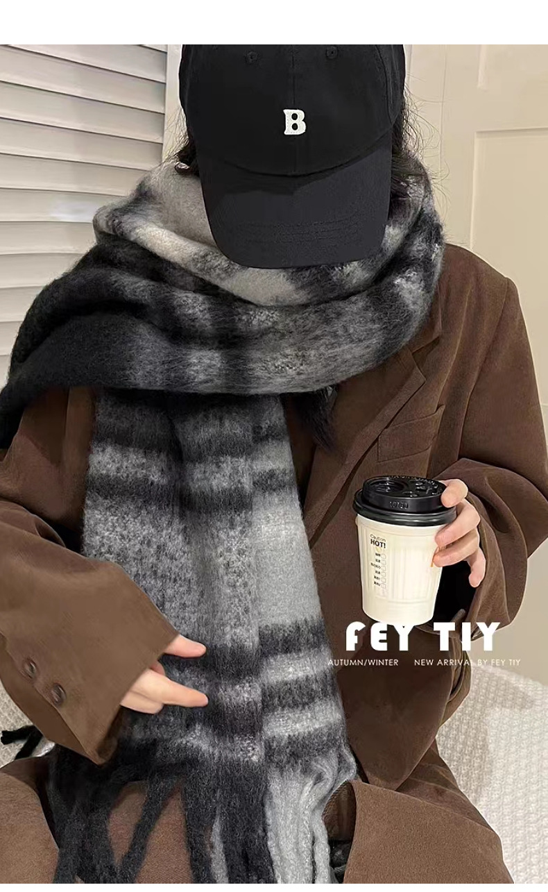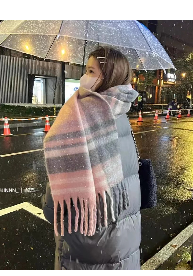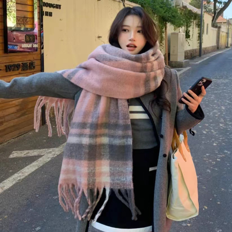 한국식 격자 무늬 목도리 술 모헤어 스카프 여성 겨울 일본 학생 여행 모든 경기 패션 캐주얼 스카프