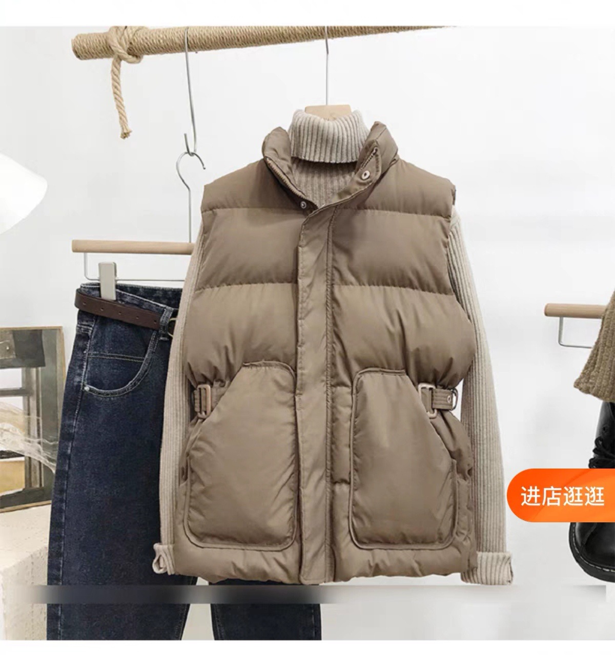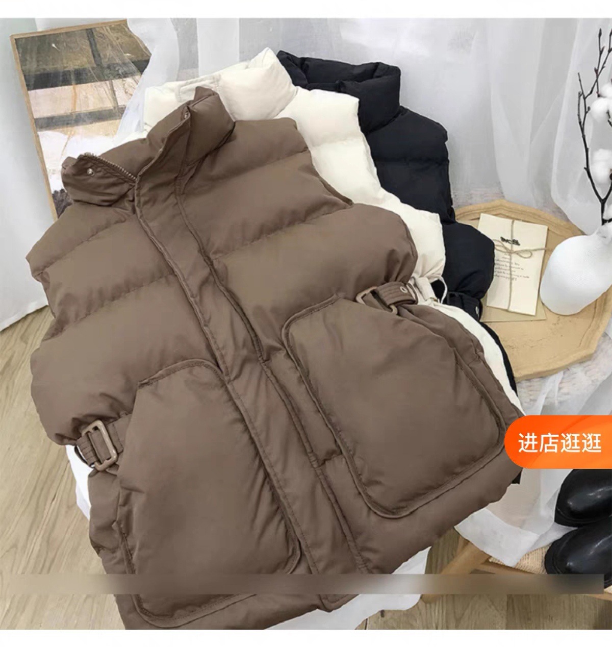 여성용 다운 코튼 조끼, 슬림하고 스타일리시한 2025 새로운 패션 트렌드 스탠드 칼라 조끼, 허리, 다용도 민소매 조끼스토어 가기
