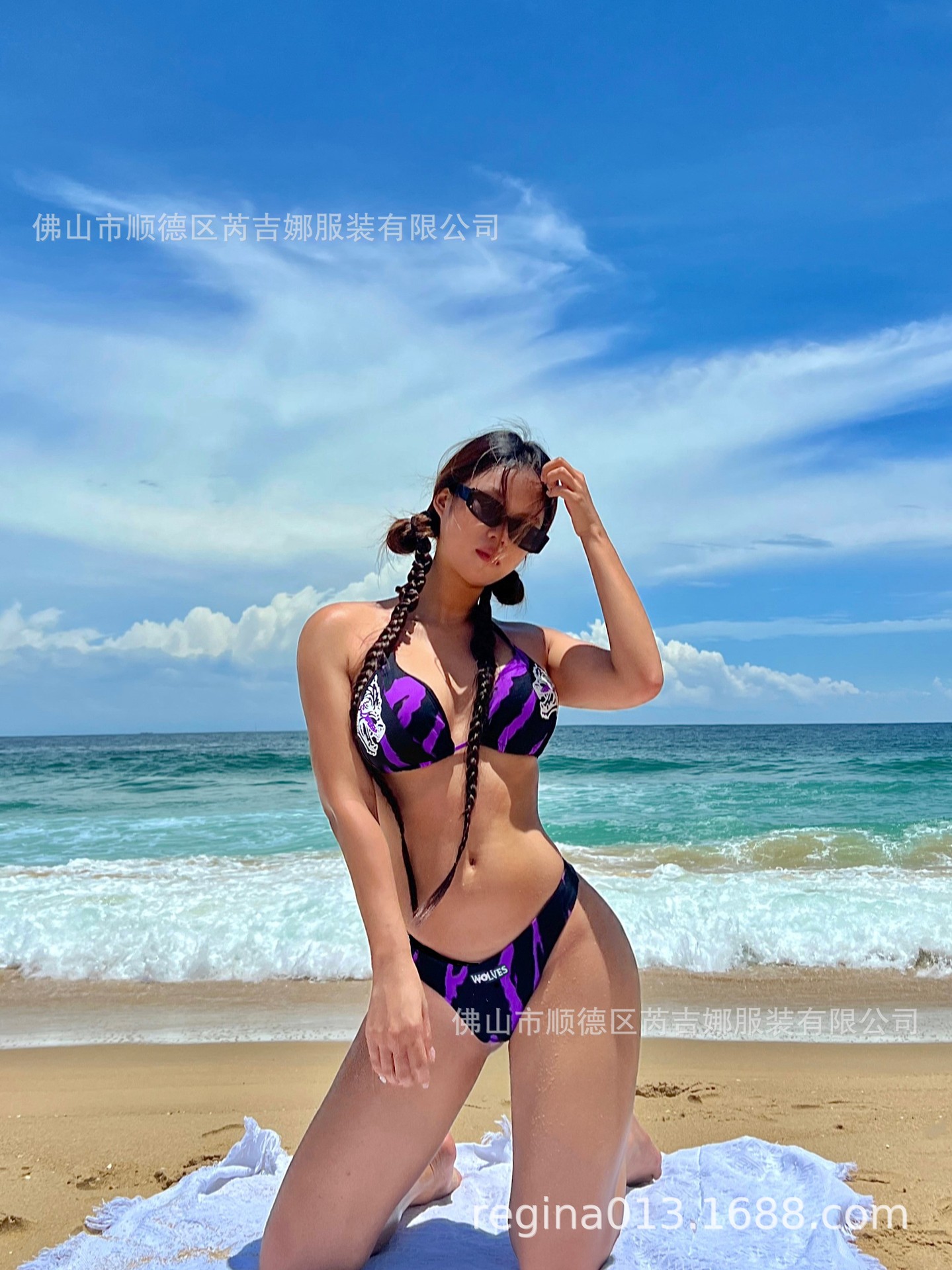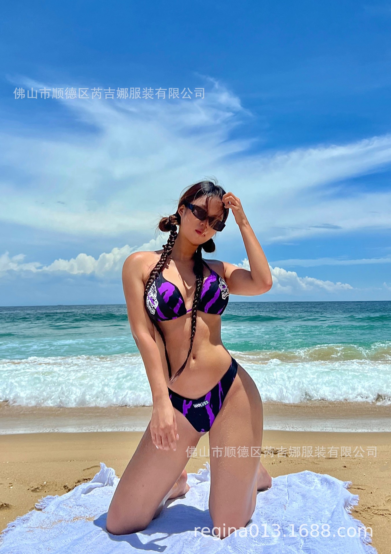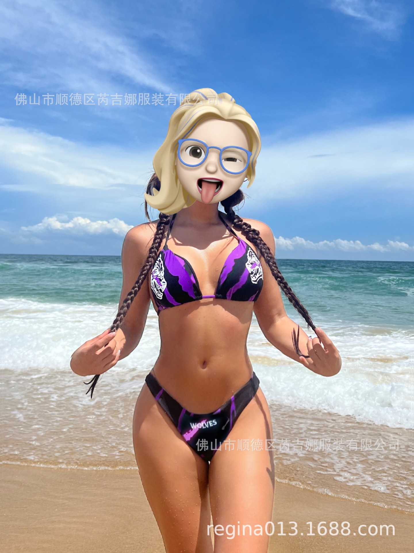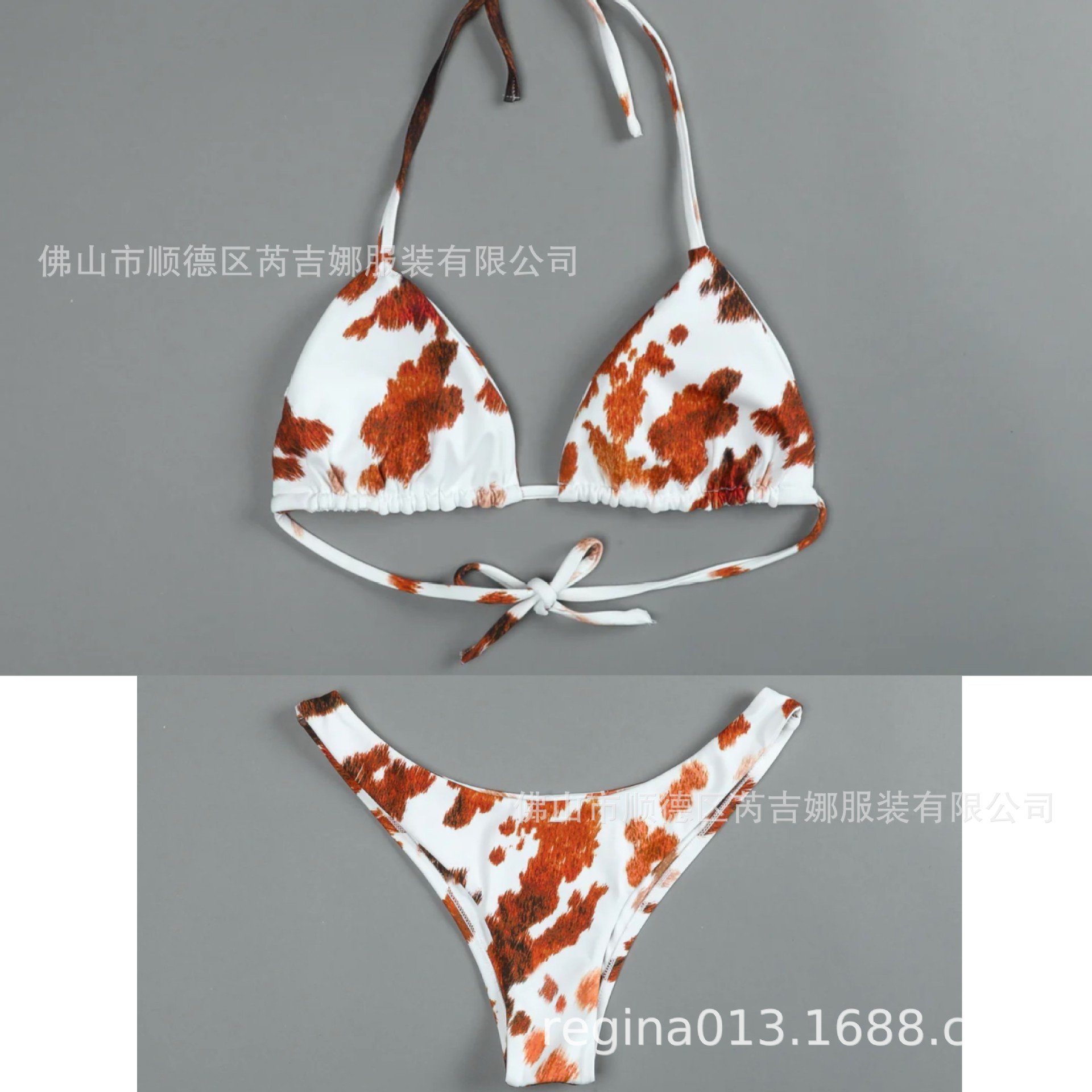 유럽과 미국 크로스 보더 늑대 머리 새로운 수영복 여자의 섹시한 하이 웨이스트 분할 비키니 인쇄 비키니 섹시한 아마존스토어 가기