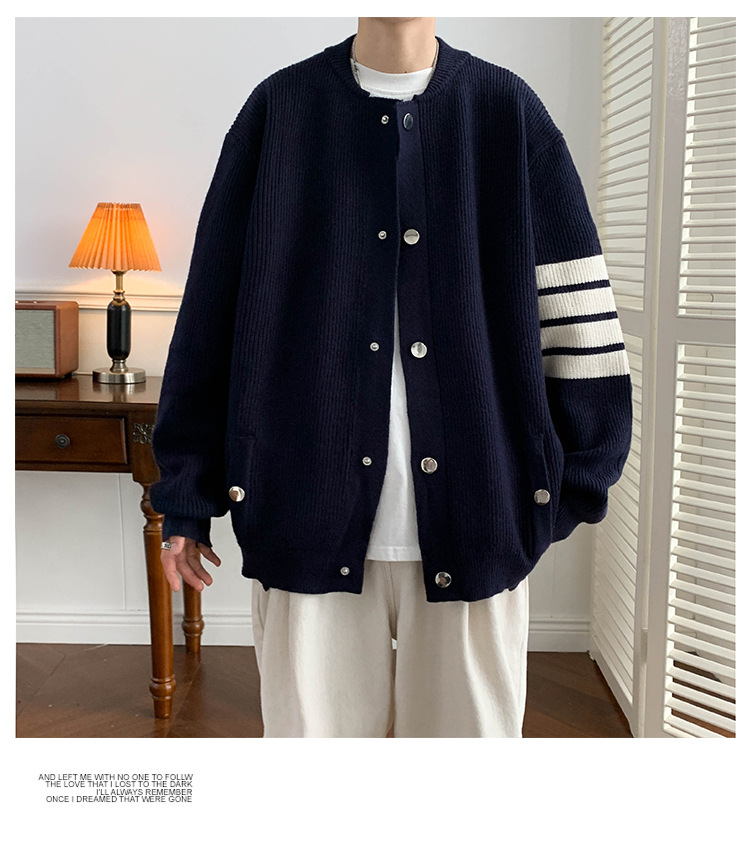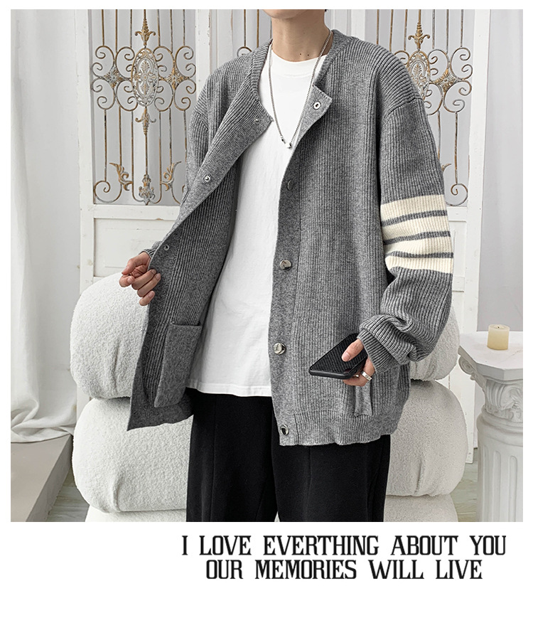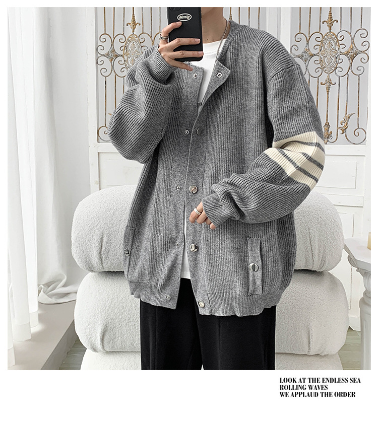 청소년 인기 겨울 긴 소매 캐주얼 남성 카디건 스웨터 코트 라운드 넥 느슨한 트렌드 스웨터 머리카락의 세대스토어 가기