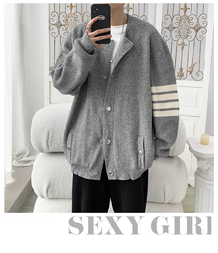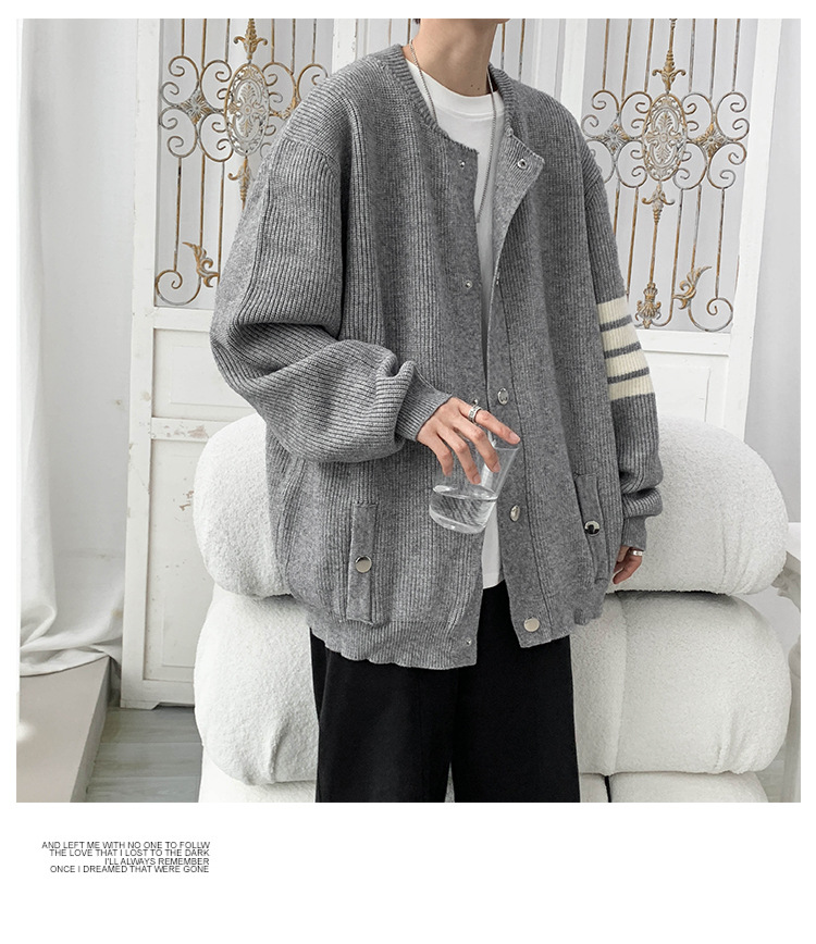 청소년 인기 겨울 긴 소매 캐주얼 남성 카디건 스웨터 코트 라운드 넥 느슨한 트렌드 스웨터 머리카락의 세대