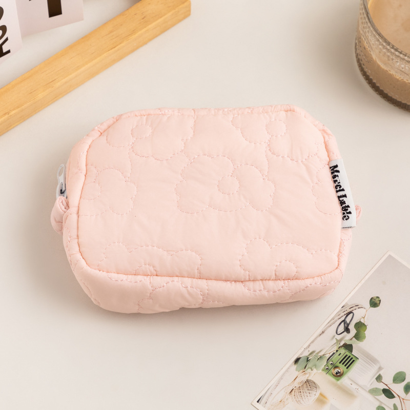 새로운 캔디 컬러 화장품 가방 귀여운 보관 가방 학생 휴대용 미니 면 퀼트 꽃 손 작은 사각 가방스토어 가기