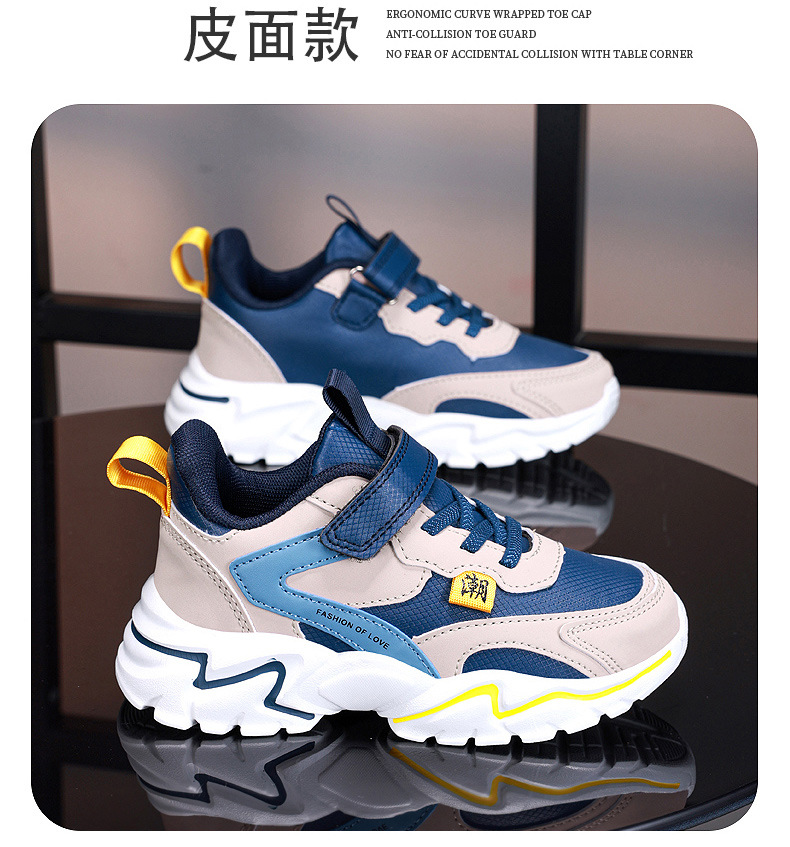 남아 운동화 방수 가죽 러닝화 중대형 아동용 솔리드 바닥 한국 스타일 트렌디 신발 제조업체 도매