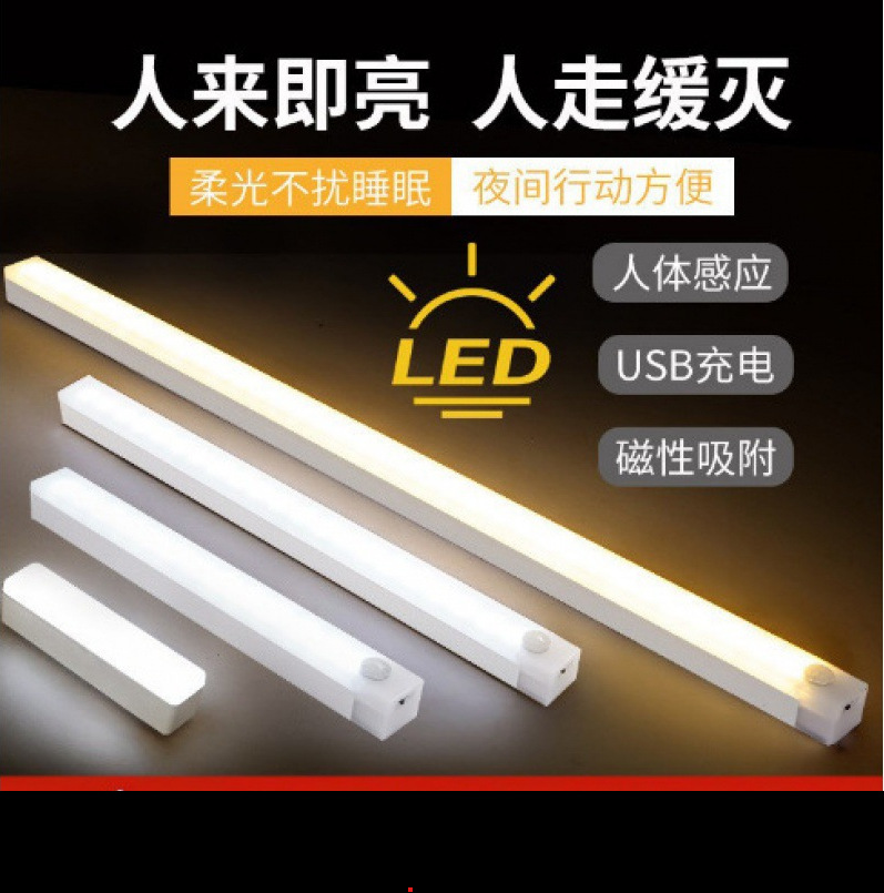 긴 센서등, 배선 없이 설치 가능한 LED 야간등, 주방 옷장 캐비닛 복도등, 친환경 충전식