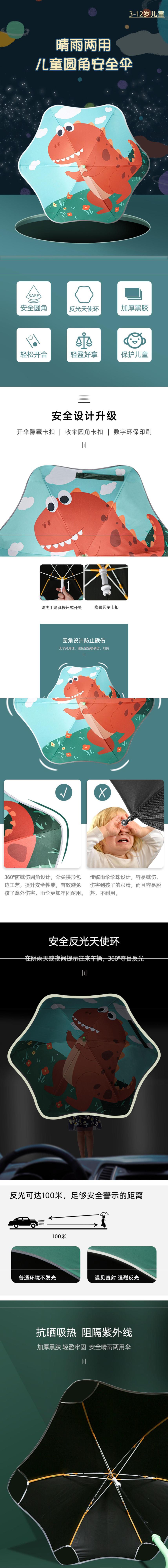 • 둥근 우산-(찌르기 방지 + 안전 반사 스트립 업그레이드)-공룡 휴일