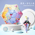 • 둥근 우산-(찌르기 방지 부상 + 안전 반사 스트립 업그레이드)-욕심 많은 코끼리
