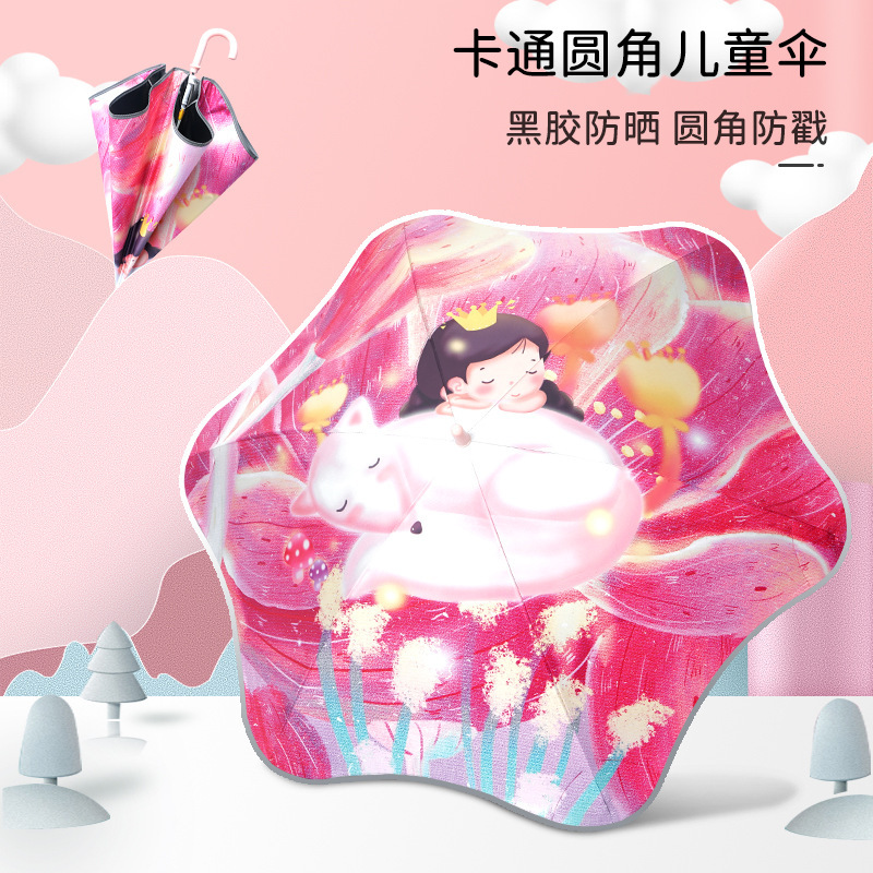 아기의 우산 둥근 어린이 만화 찌르기 방지 반사 스트립 우산 만화 귀여운 검은 고무 자외선 차단제 우산 맑은 비 우산