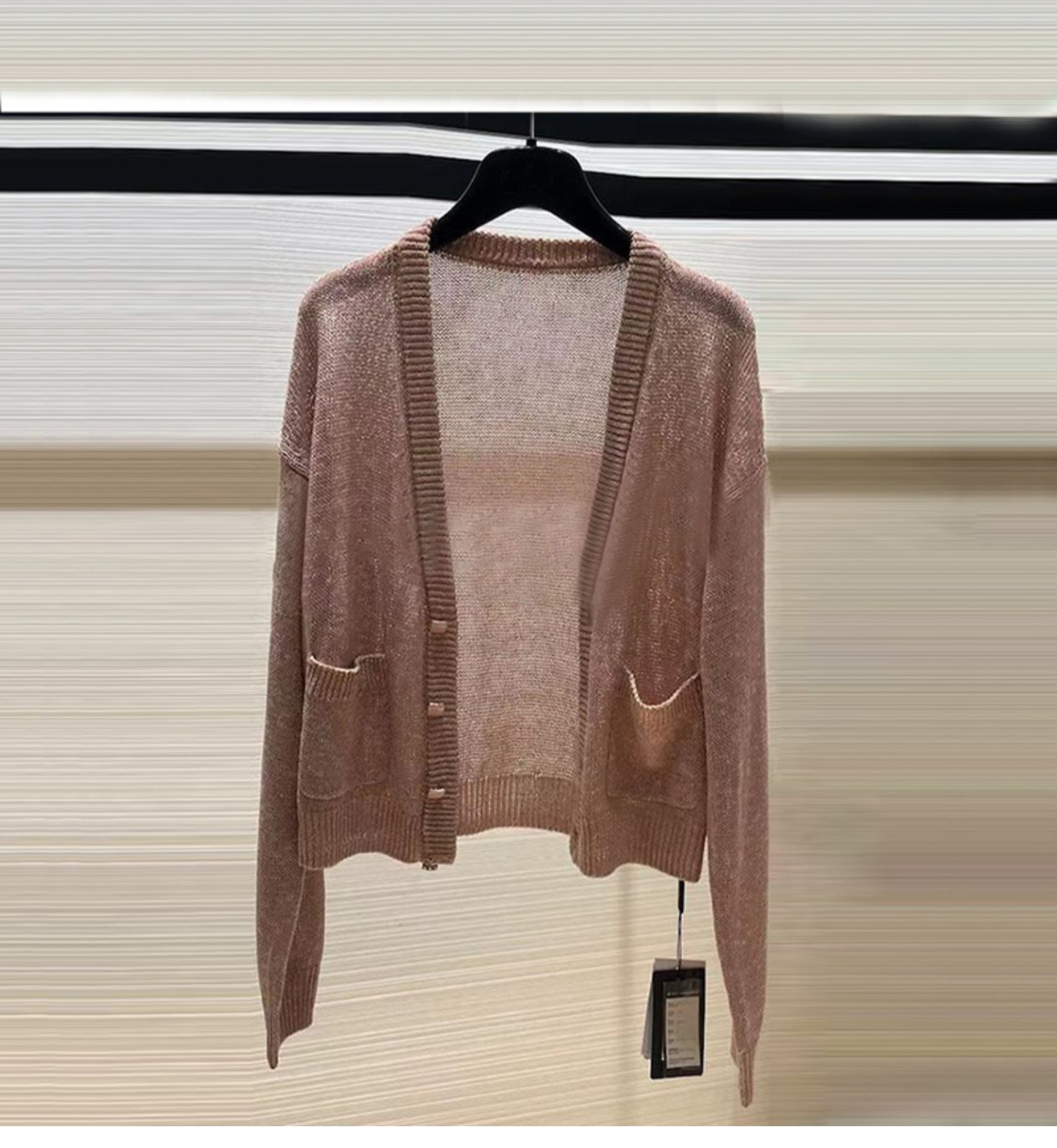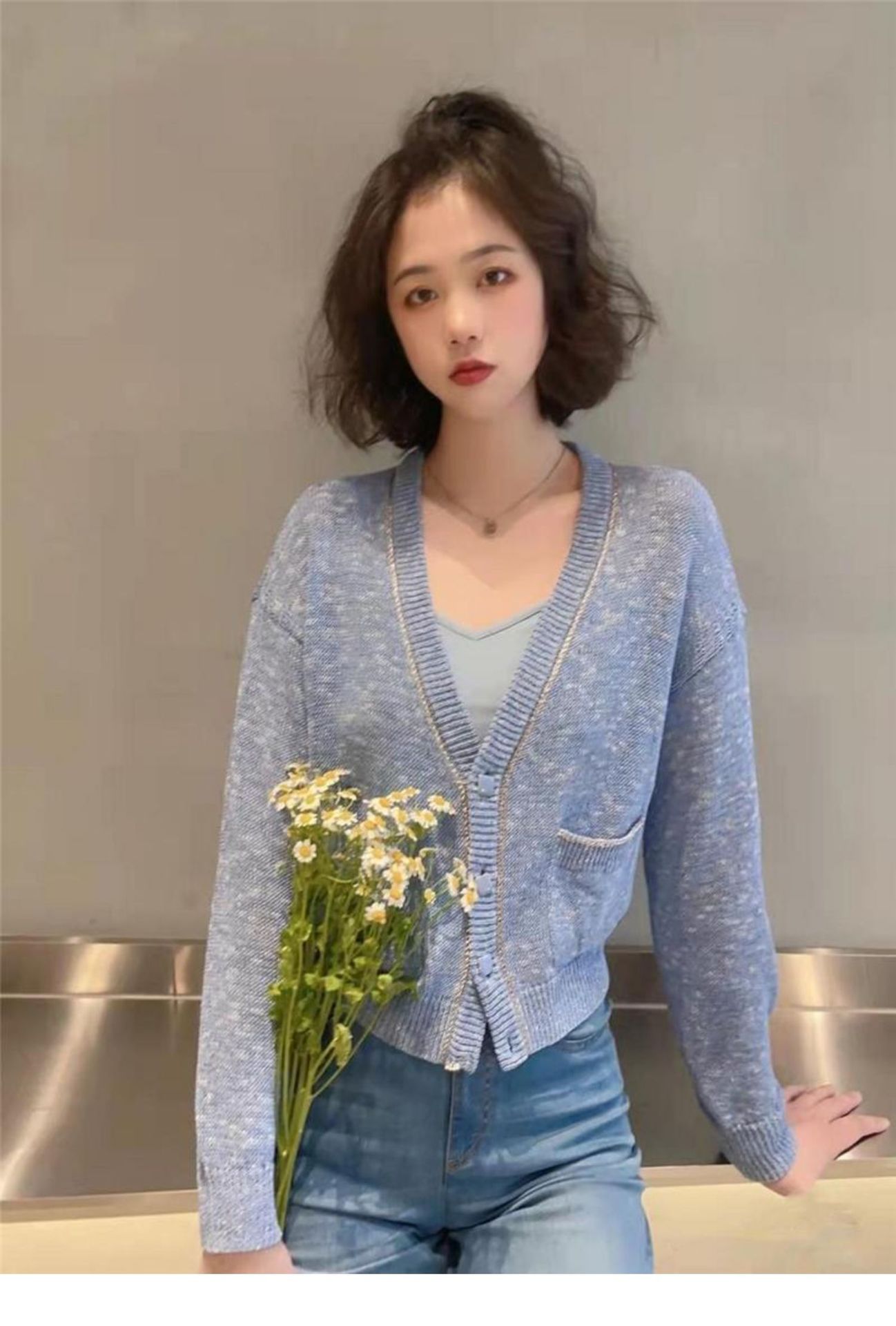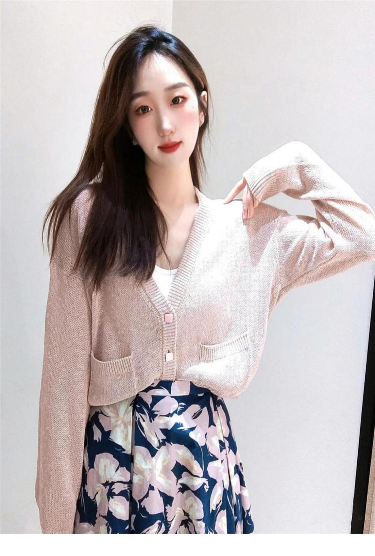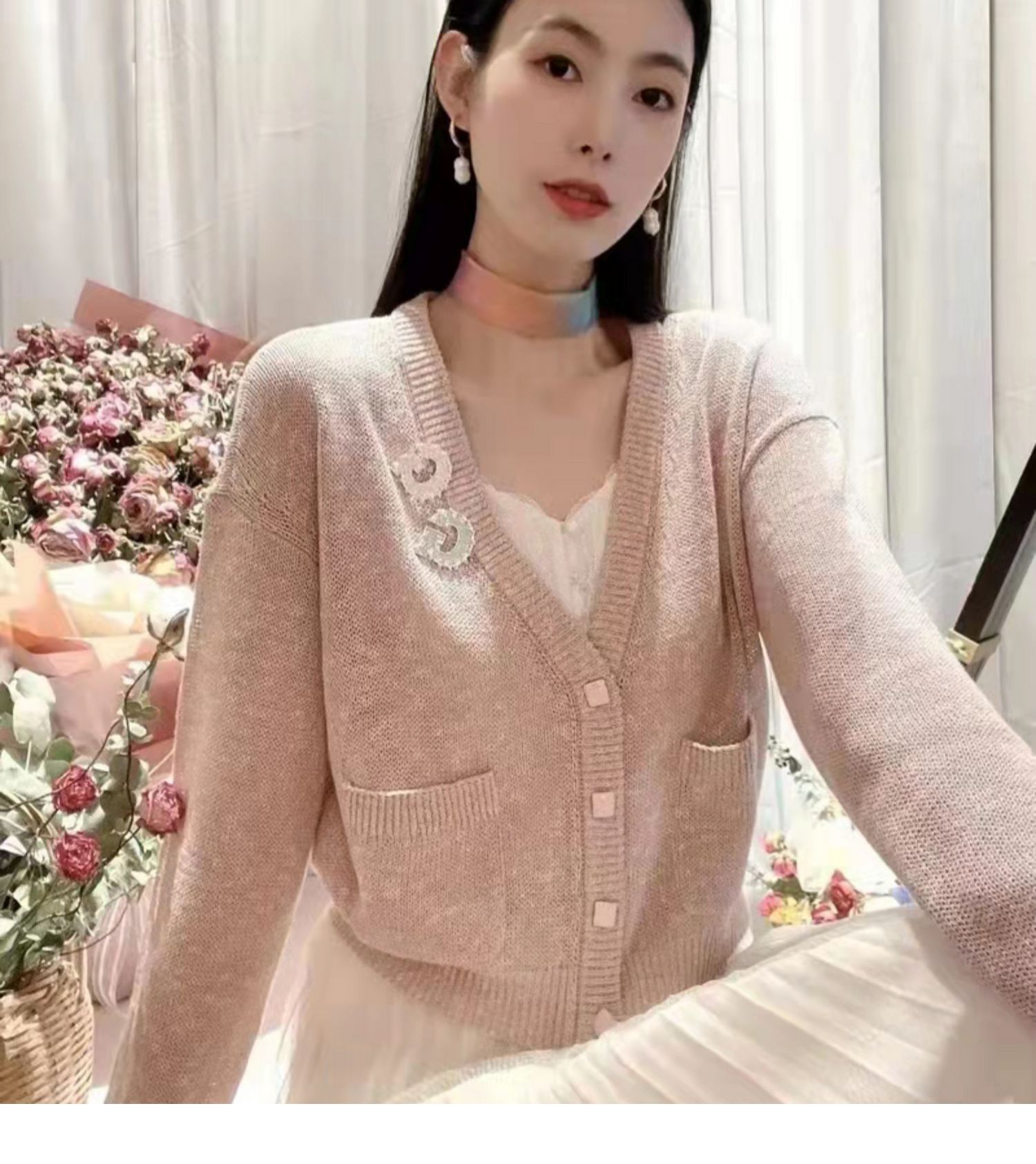 제가 새롭게 출시한 여성복 2024 봄/가을 신상 브이넥 레이스 디테일 샤넬풍 에어컨 긴팔 니트 가디건 1499157