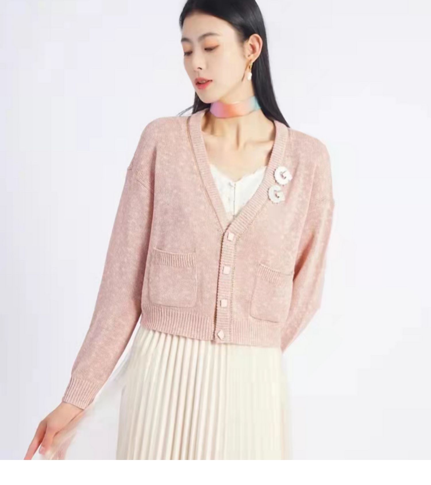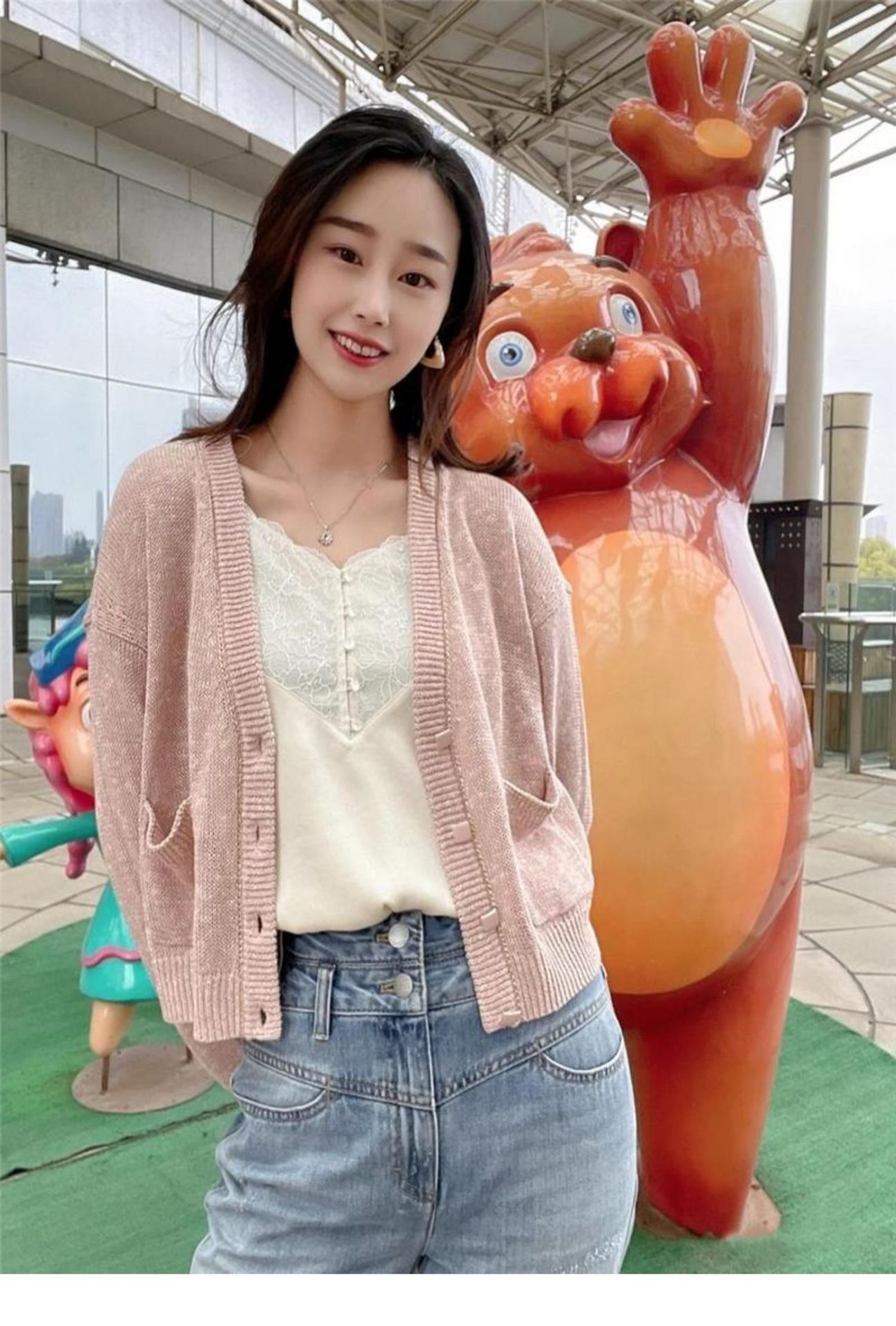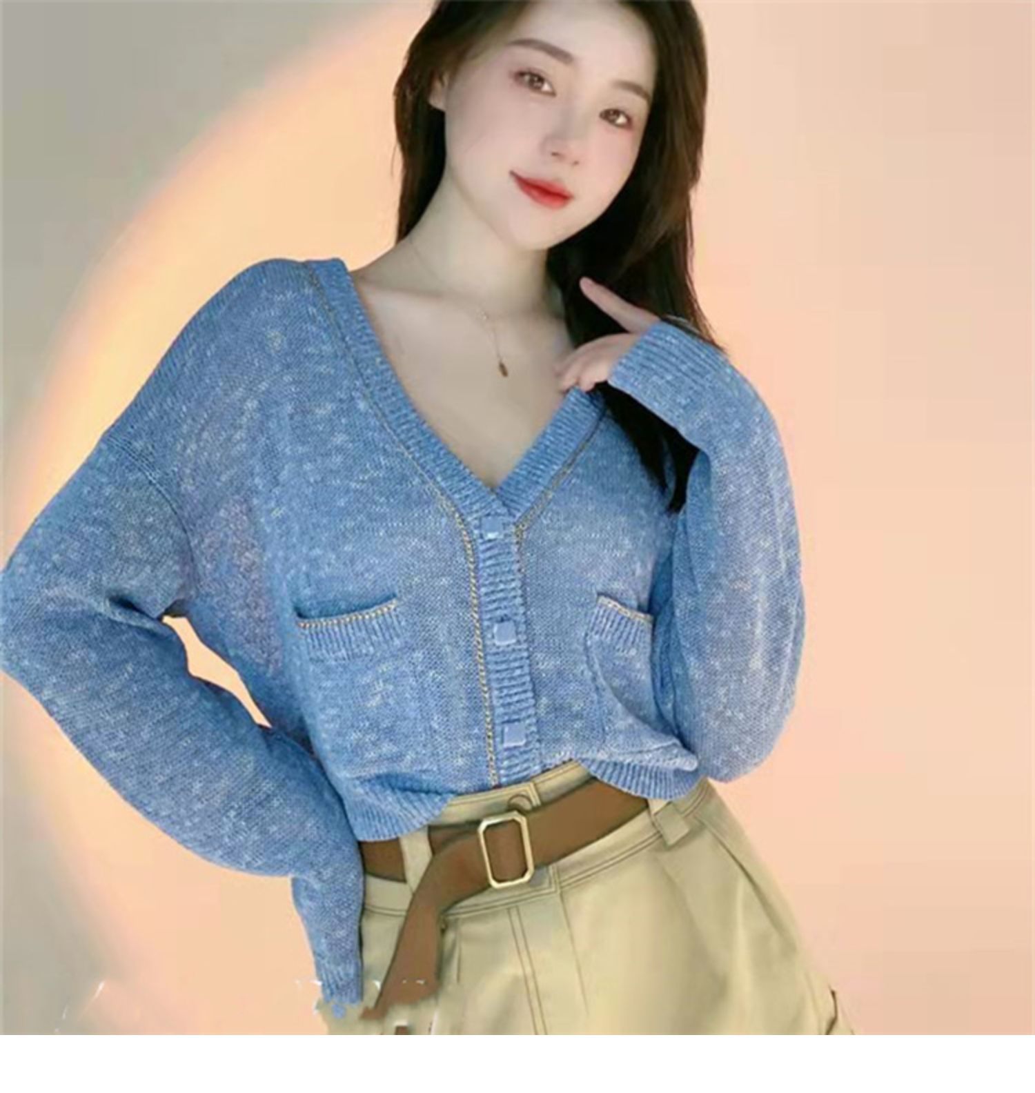 제가 새롭게 출시한 여성복 2024 봄/가을 신상 브이넥 레이스 디테일 샤넬풍 에어컨 긴팔 니트 가디건 1499157
