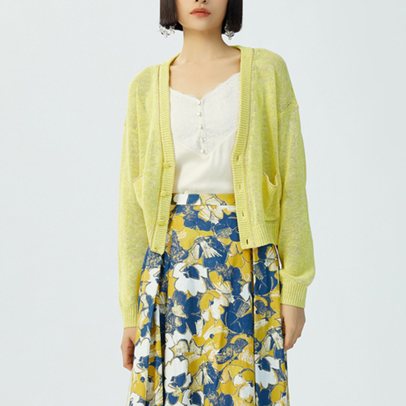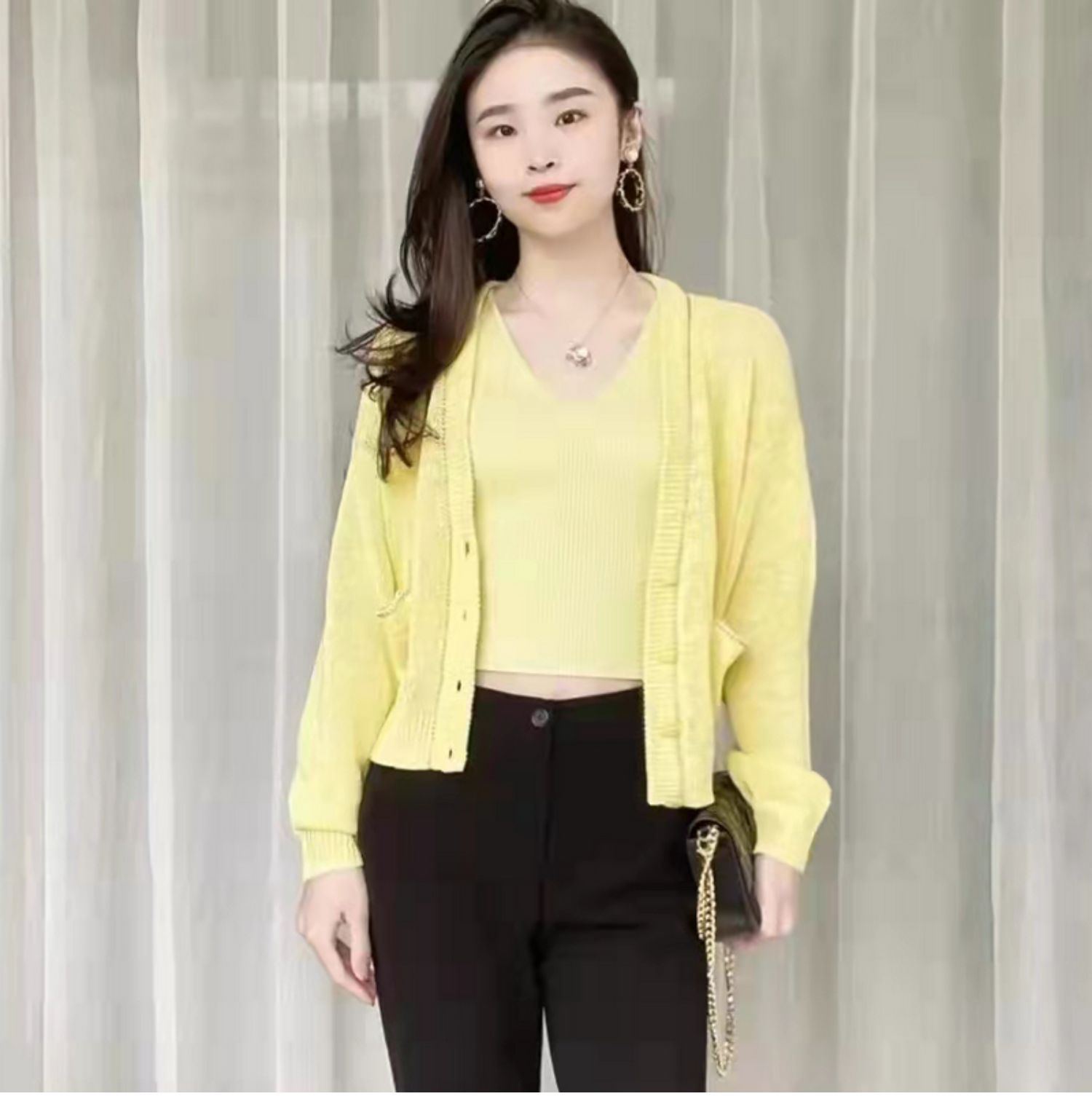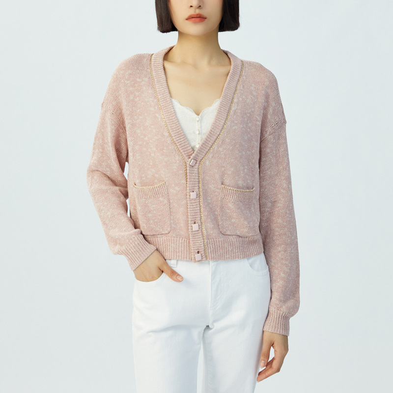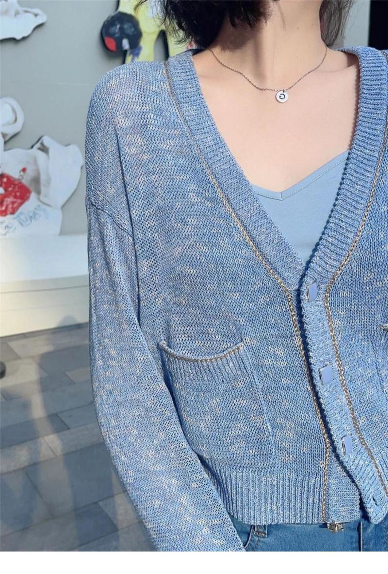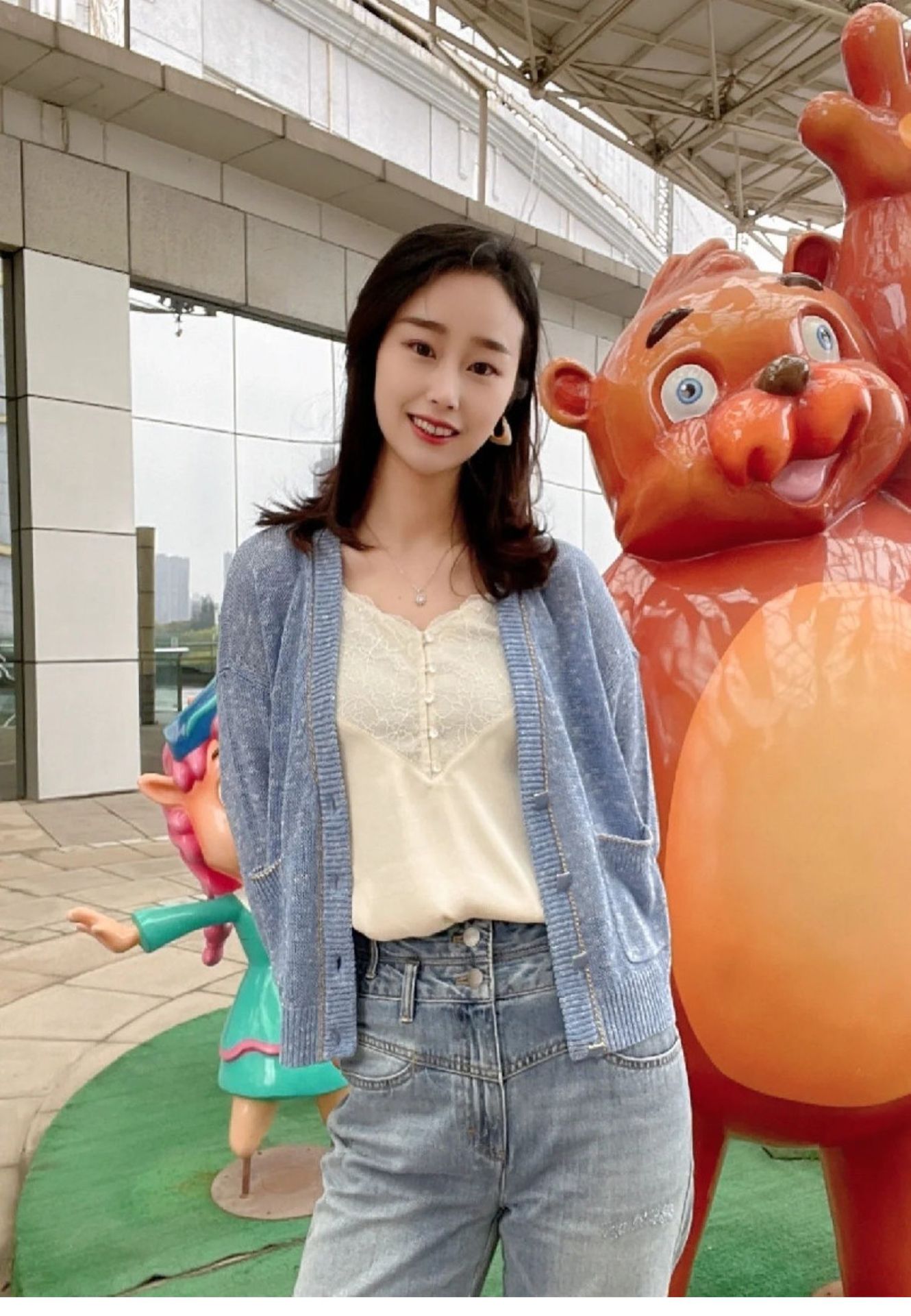 제가 새롭게 출시한 여성복 2024 봄/가을 신상 브이넥 레이스 디테일 샤넬풍 에어컨 긴팔 니트 가디건 1499157