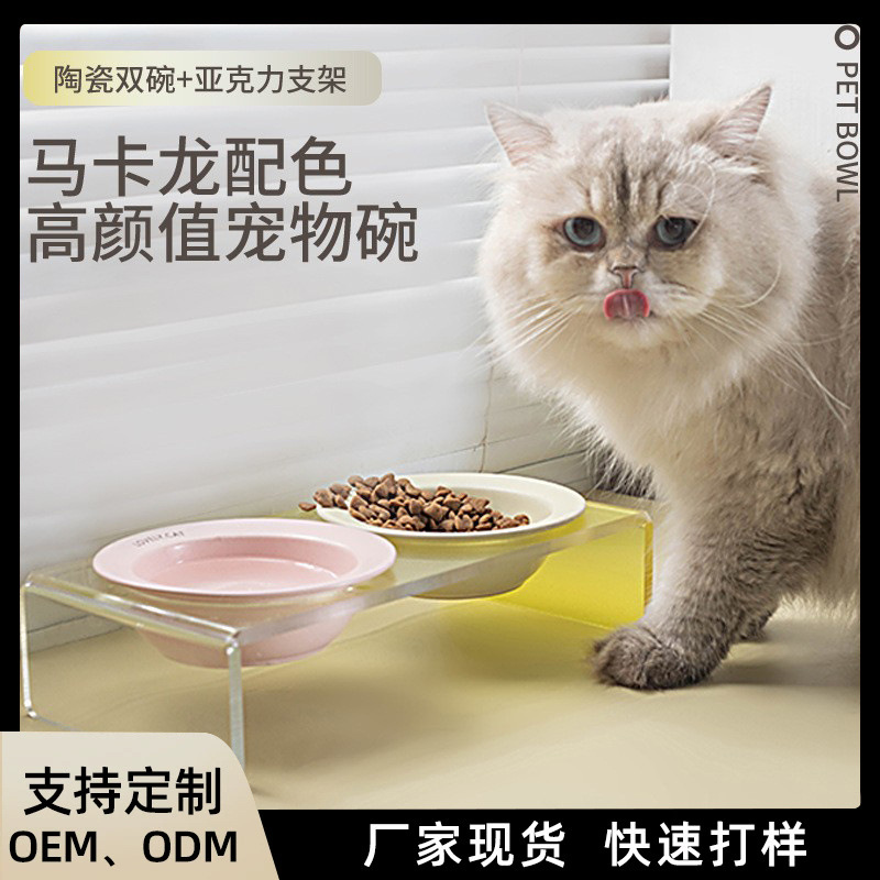 New 애완 동물 사발 목 보호 노크 방지 세라믹 고양이 사발 아크릴 사발 선반 플라잉 접시 사발 개 사료 대야 용품 도매