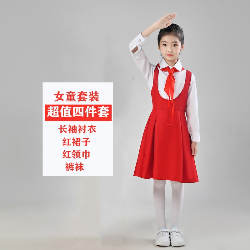 어린이 합창 의류 초등 및 중등 학생 의시 애국시 암송 대회 소년 소녀 빨간 스카프 공연 의류스토어 가기