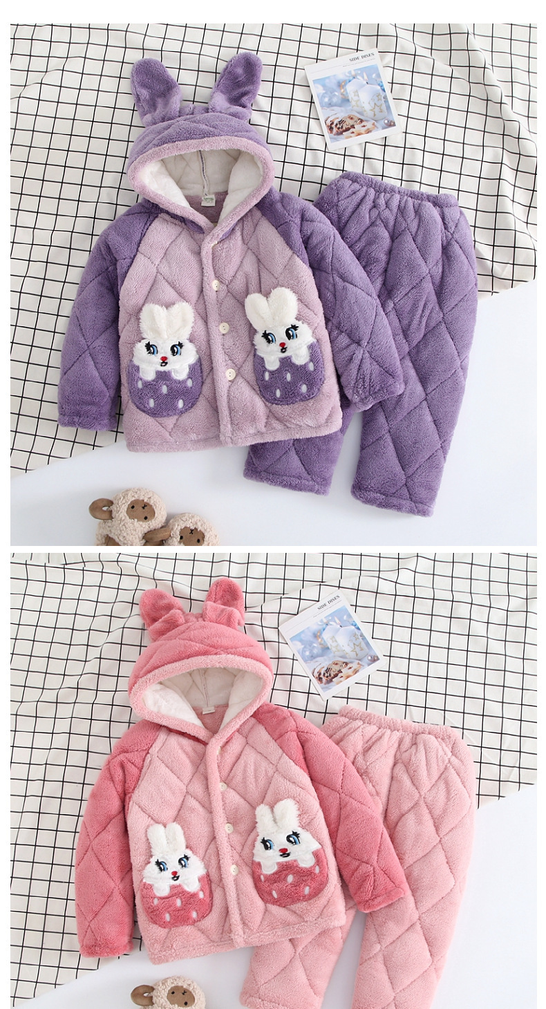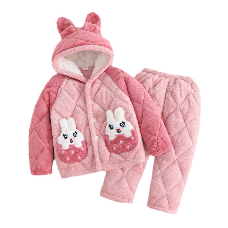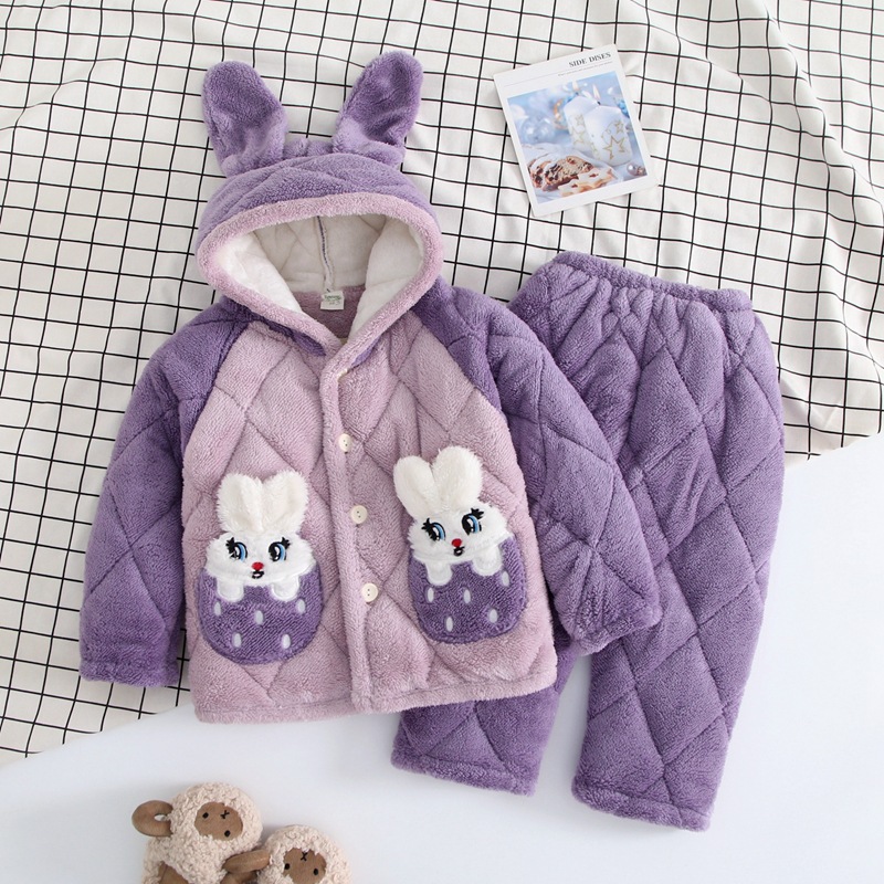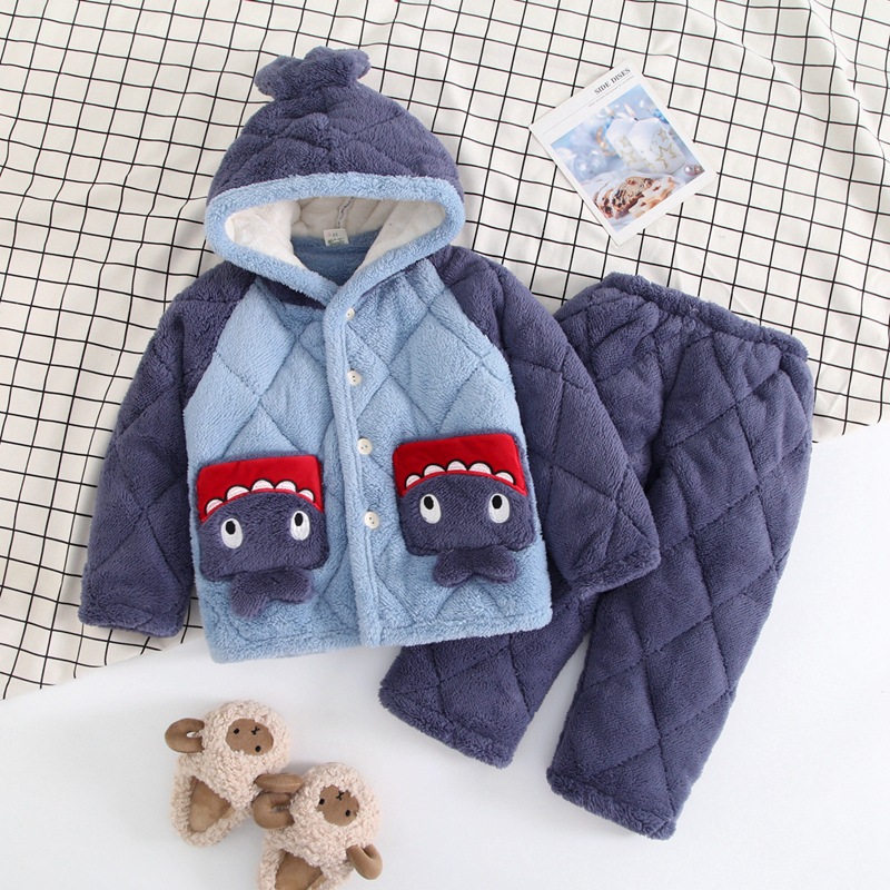 겨울 어린이 플란넬 파자마 소년 소녀 중간 및 큰 아이들이 두꺼운 산호 양털 홈 착용 세트 따뜻한면 패딩 옷