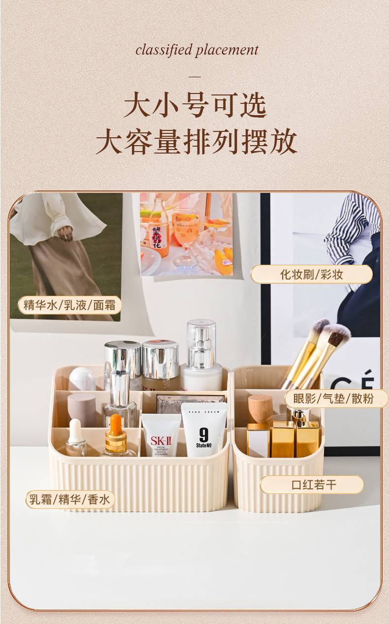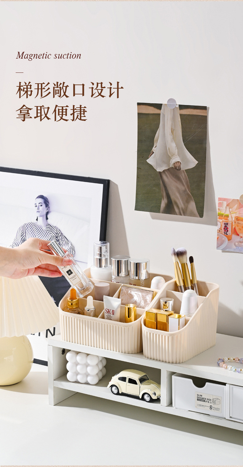 크림 스타일 데스크탑 보관함 파티션 화장대 보관 랙 립스틱 책상 문구 화장품 브러쉬 모자 펜 홀더스토어 가기