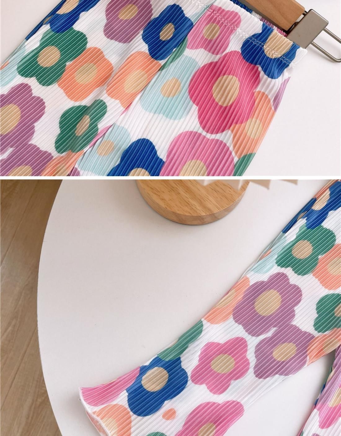 한국 스타일 소녀의 여름 꽃 도트 꽃 플레어 팬츠 얇은 아기 레깅스 아기 바지 여성용 어린이 모기 방지 바지