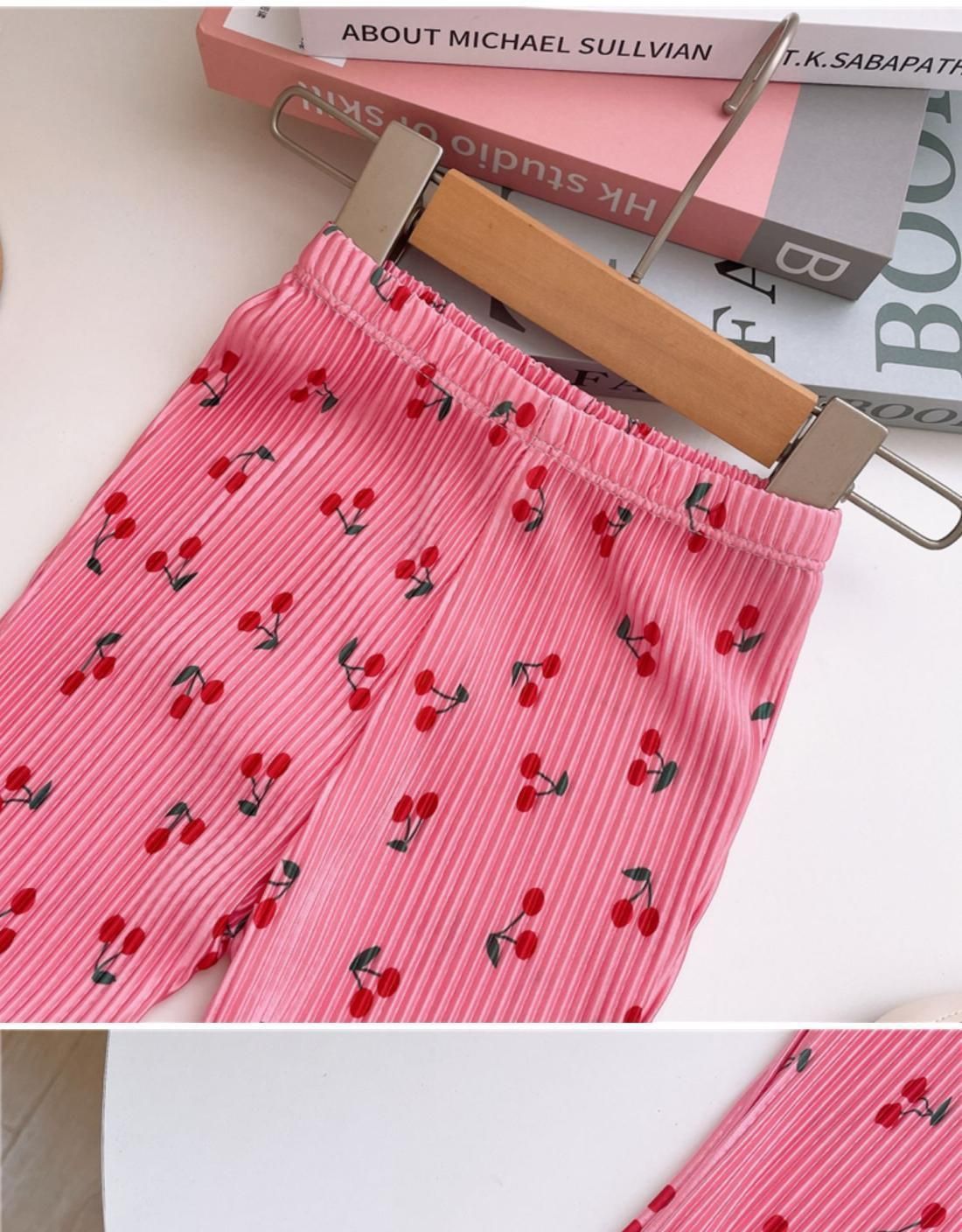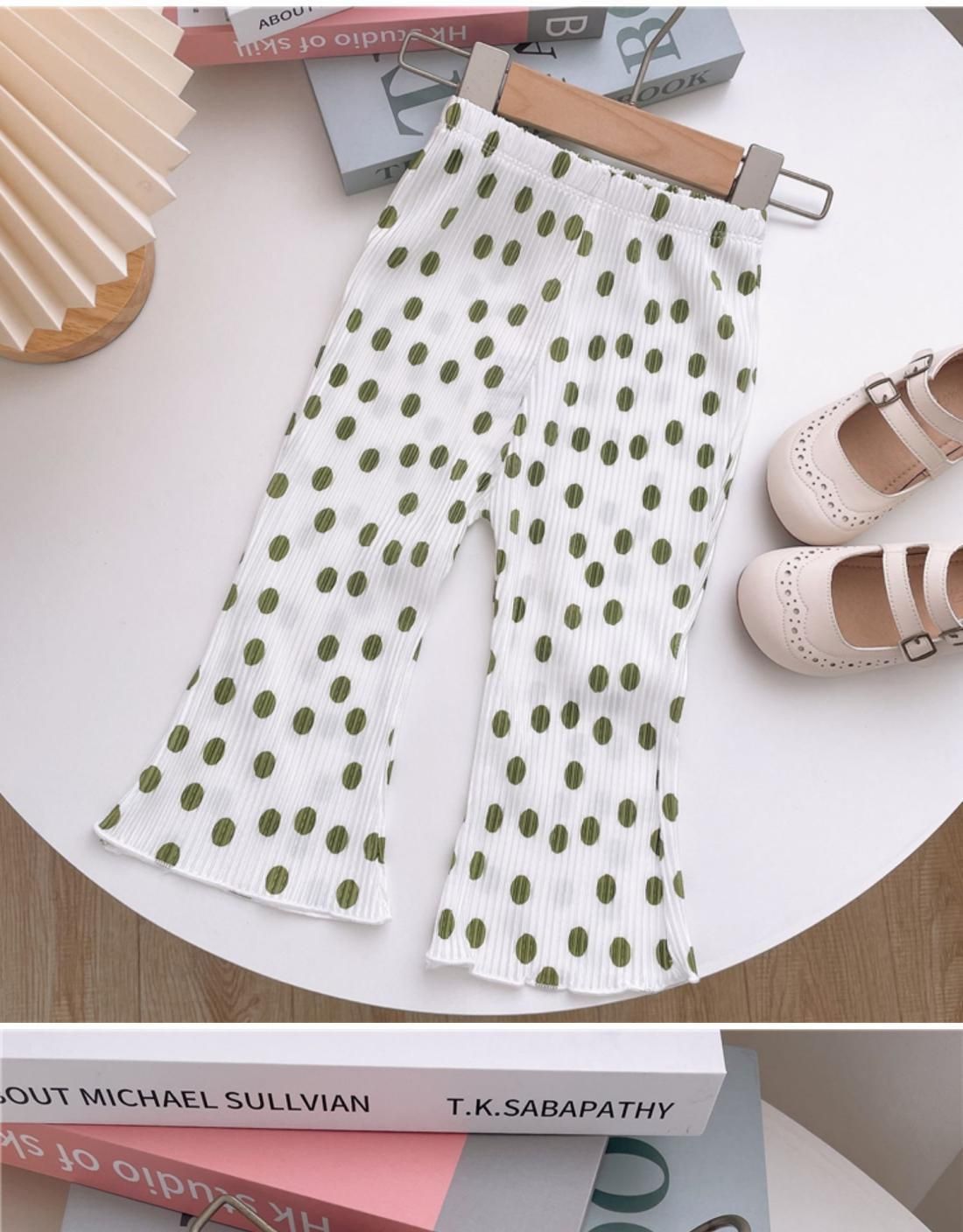 한국 스타일 소녀의 여름 꽃 도트 꽃 플레어 팬츠 얇은 아기 레깅스 아기 바지 여성용 어린이 모기 방지 바지스토어 가기
