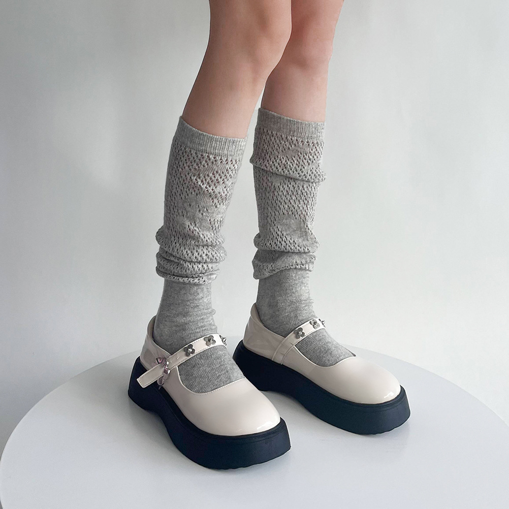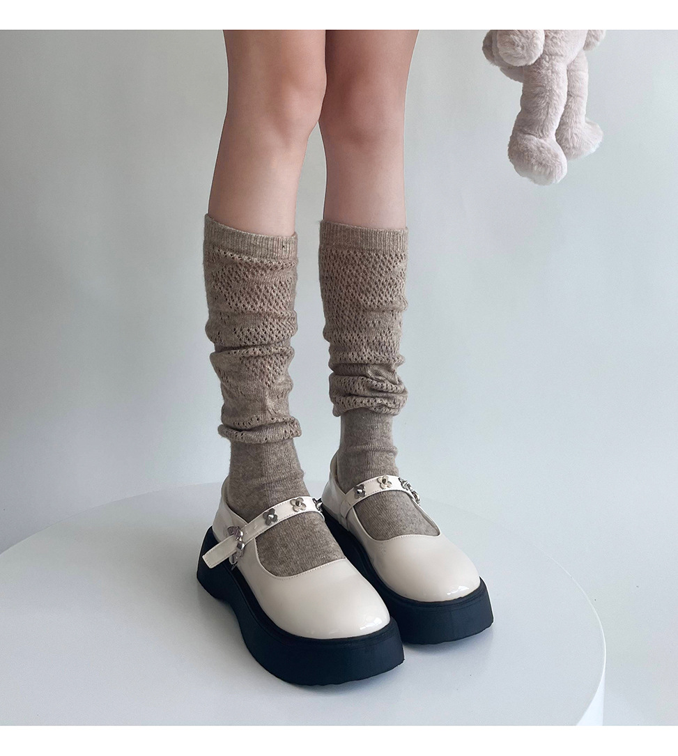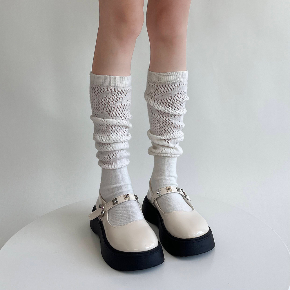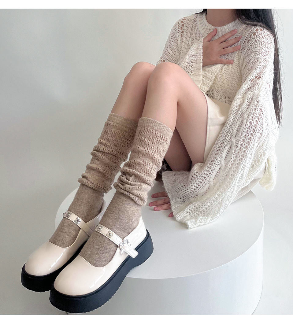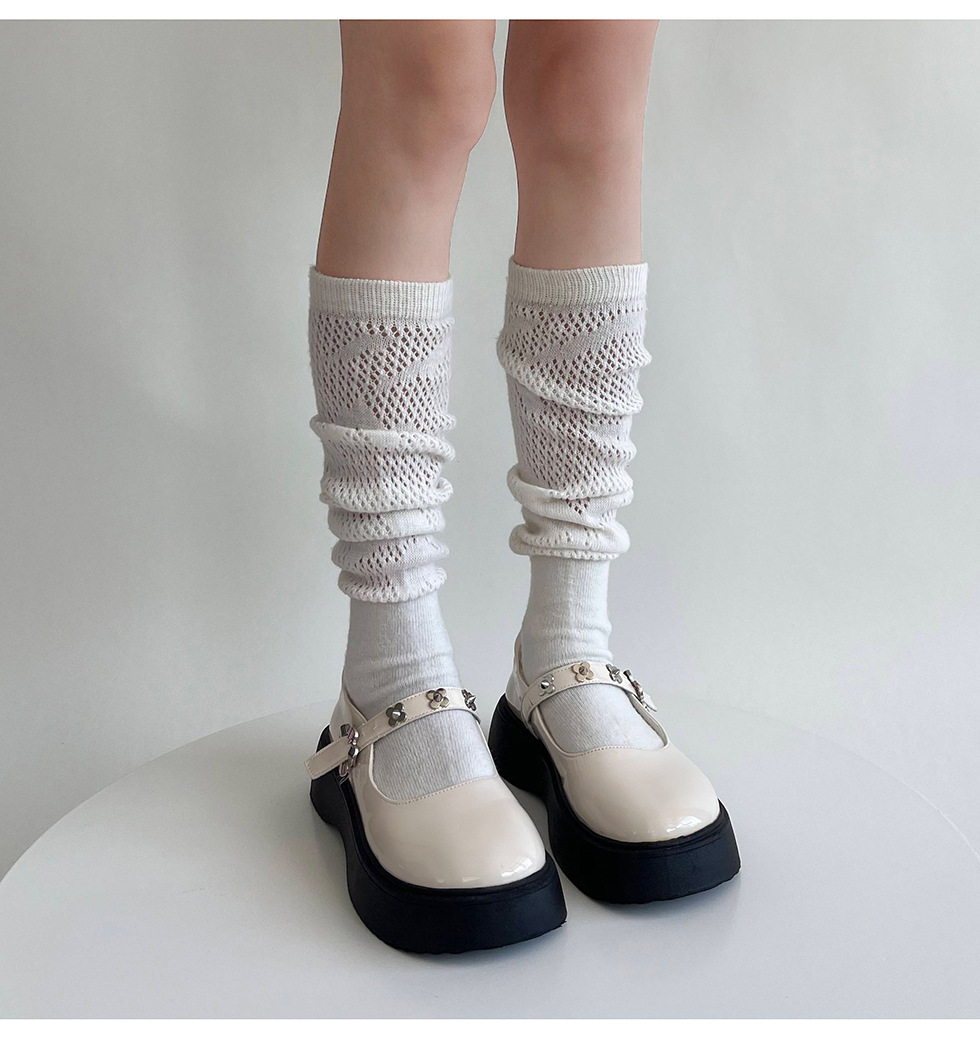 가을과 겨울 새로운 빈티지 프랑스 스타일 부드러운 스타일 중공 꽃 자카드 스타킹 쌓여 중간 길이 스타킹 간단한 다리 양말스토어 가기