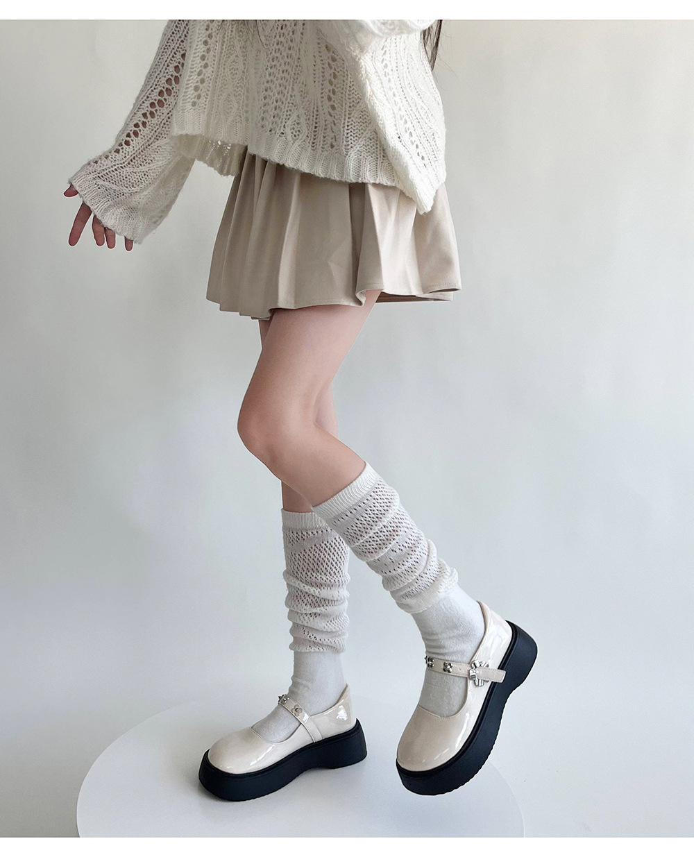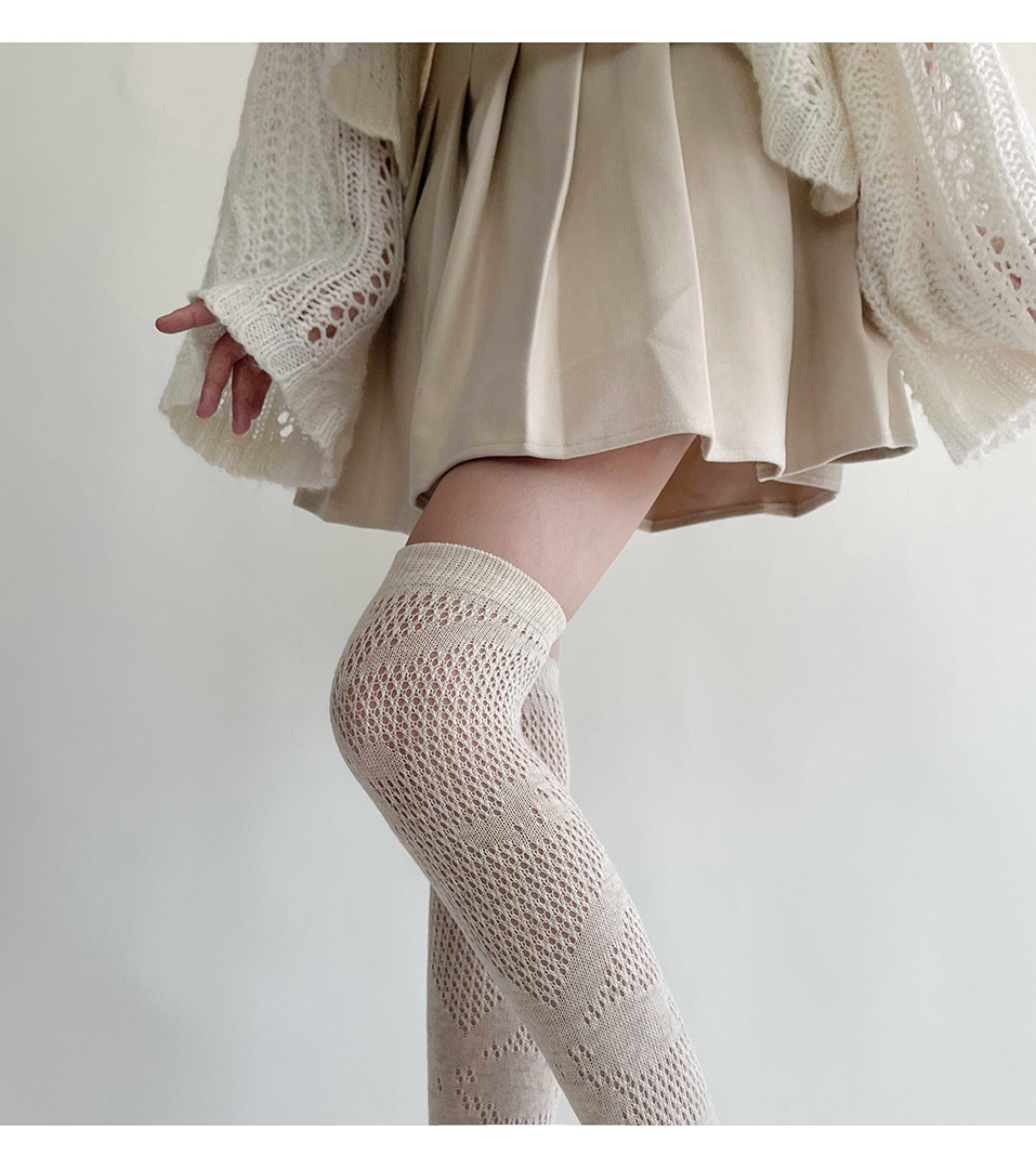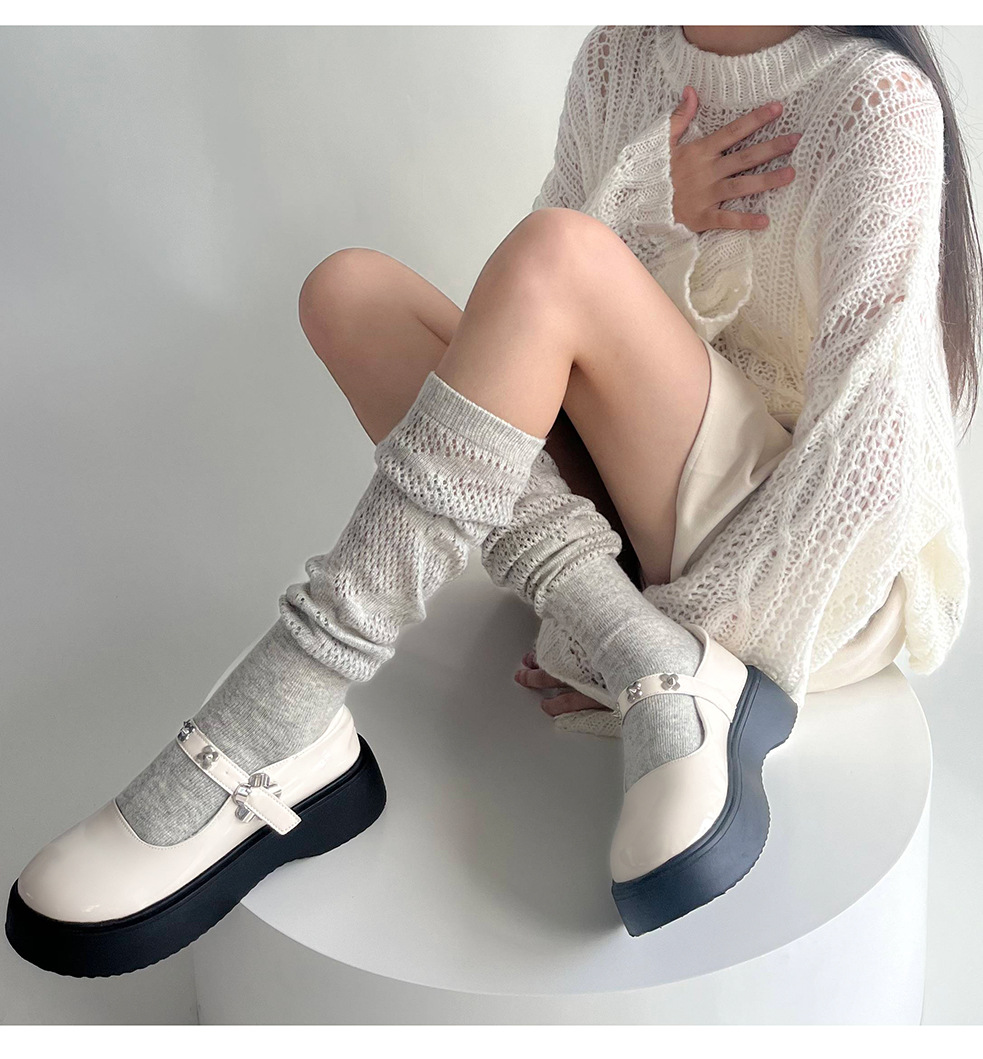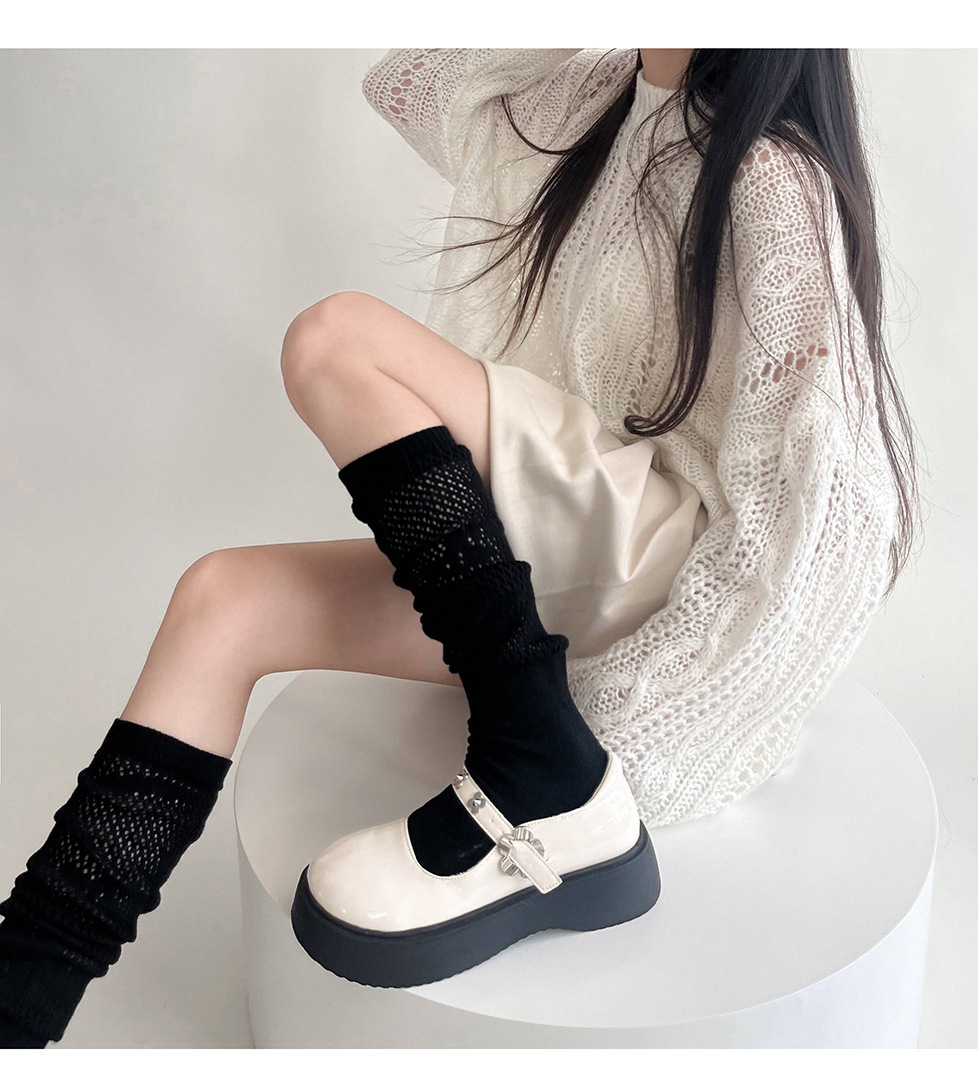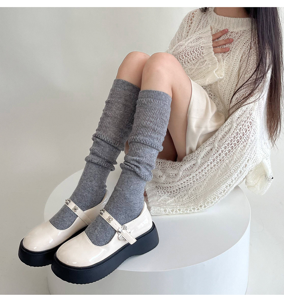 가을과 겨울 새로운 빈티지 프랑스 스타일 부드러운 스타일 중공 꽃 자카드 스타킹 쌓여 중간 길이 스타킹 간단한 다리 양말